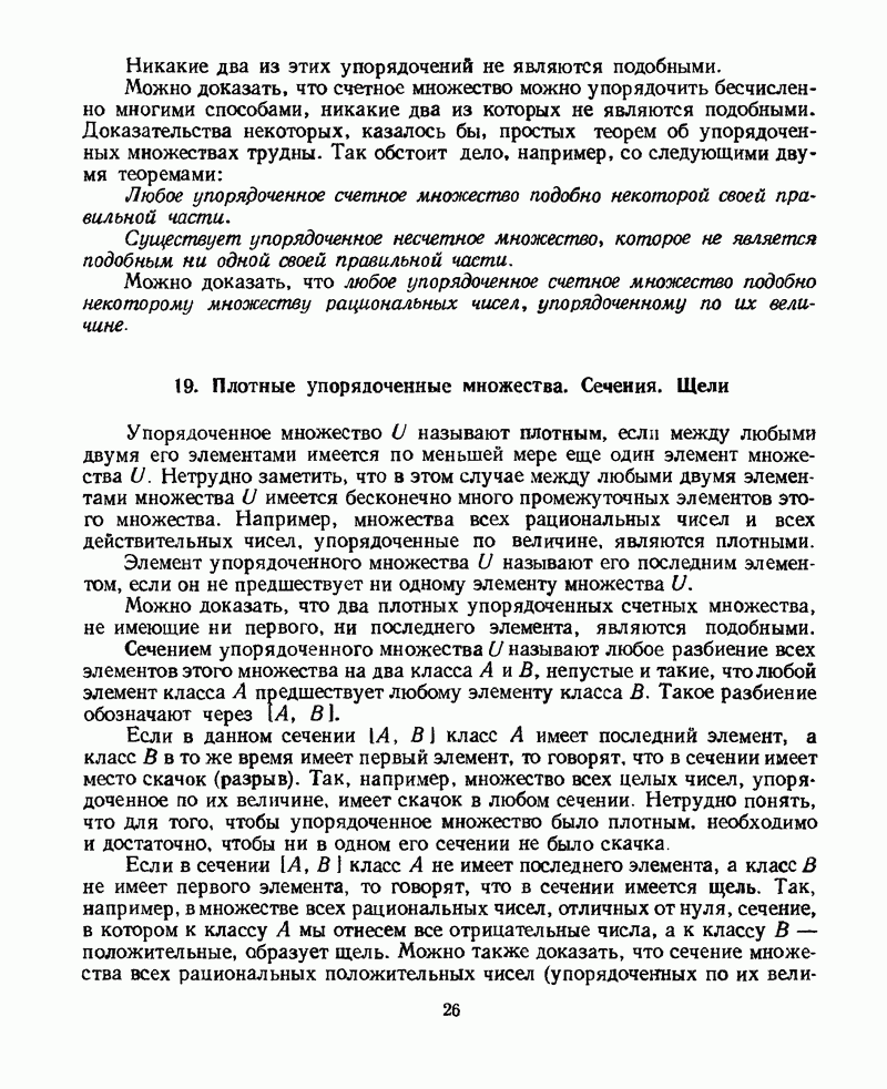Совершенно очевидно, что не существует множества точек на прямой, содержащего более одной точки и не имеющего ни одной