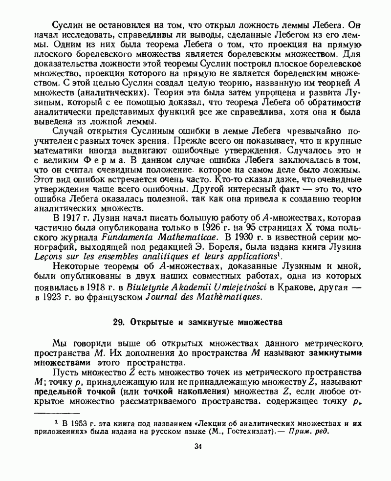 состояло бы из конечного числа множеств? Докажем, что ответ на этот вопрос является отрицательным. С этой целью доказывается сначала следующая