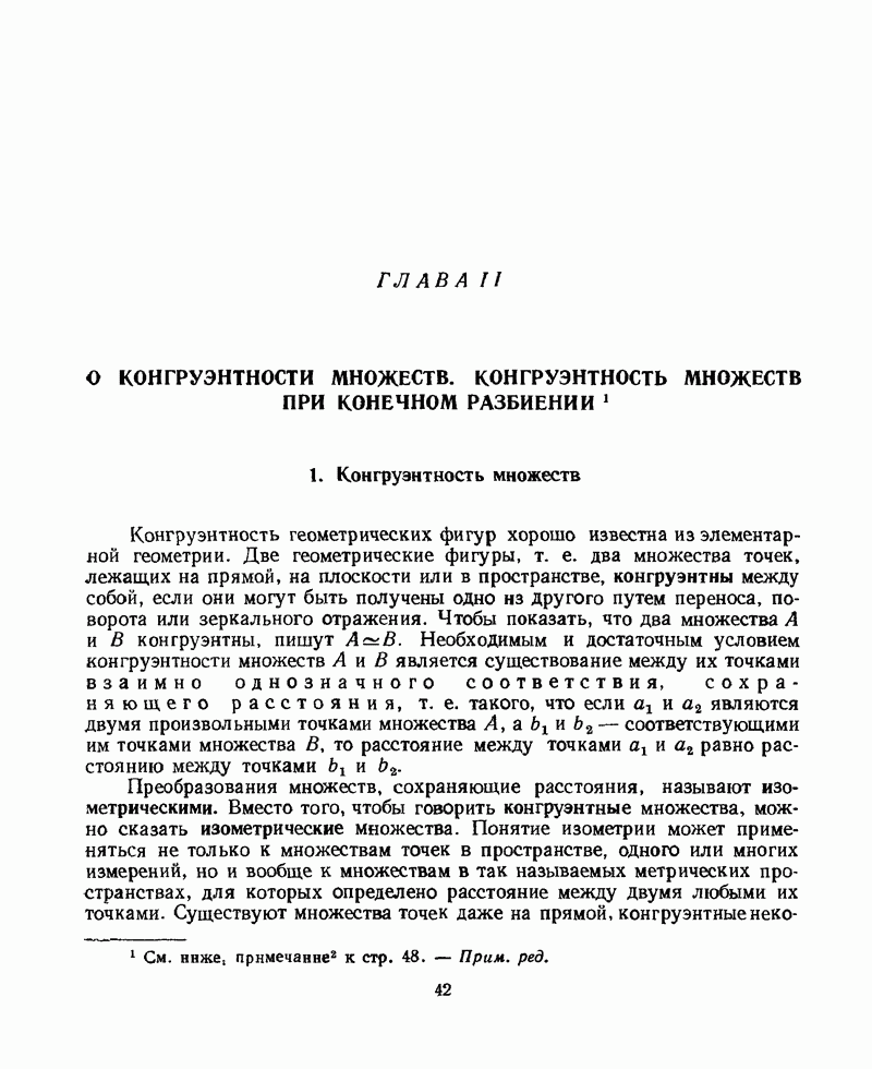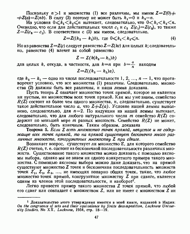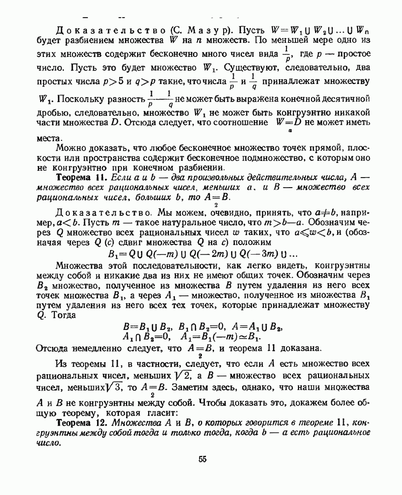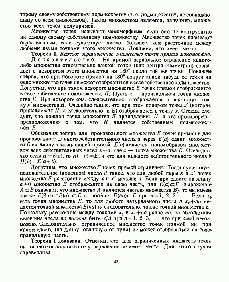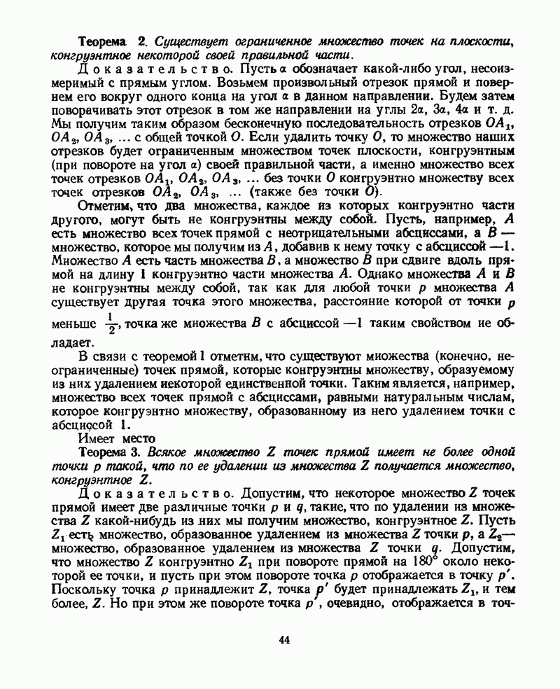 есть, множество точек прямой, непустое и не содержащее всех точек прямой, то на прямой существует бесконечно много различных множеств, конгруэнтных множеству