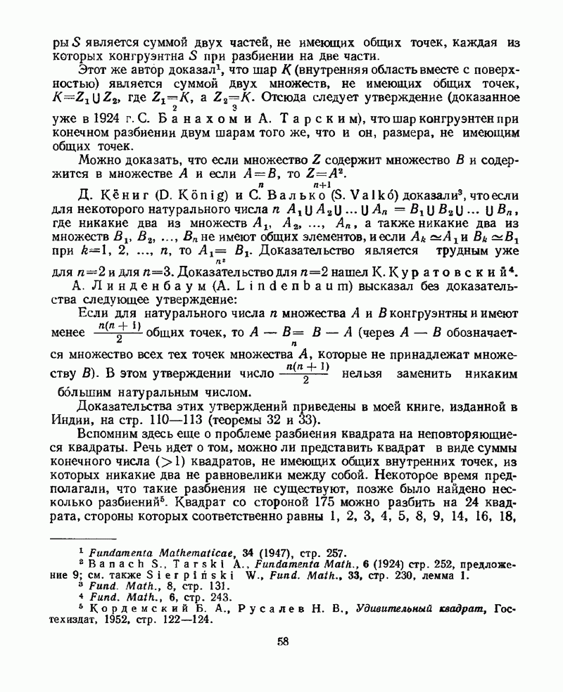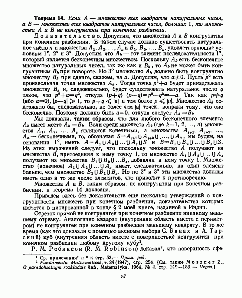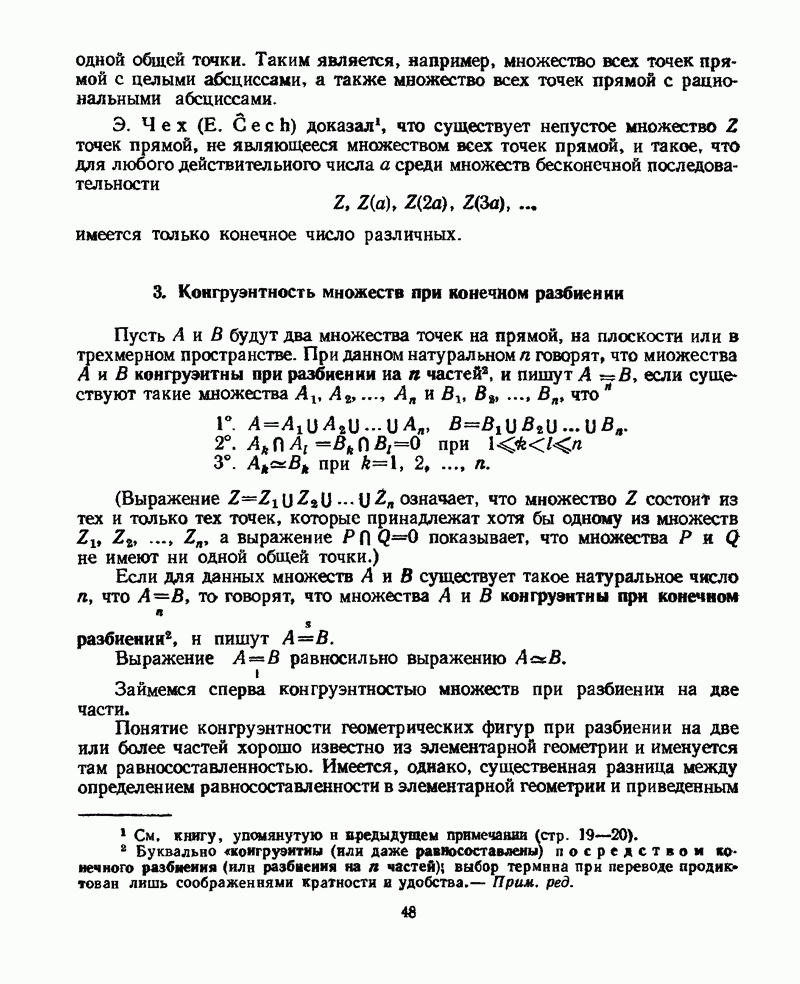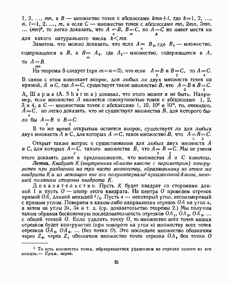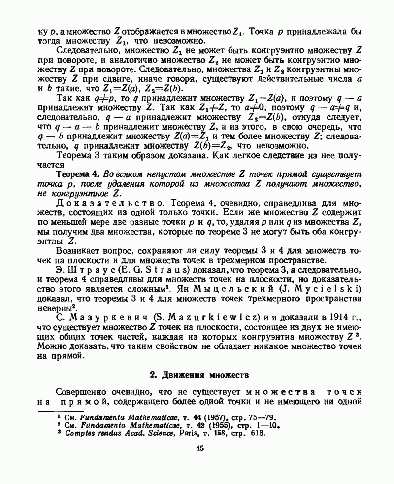 есть, множество точек прямой, непустое и не содержащее всех точек прямой, то на прямой существует бесконечно много различных множеств, конгруэнтных множеству