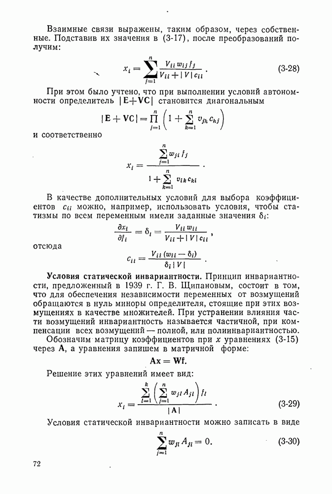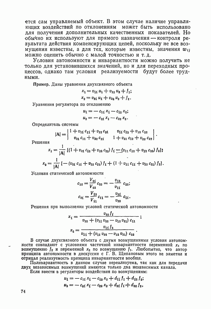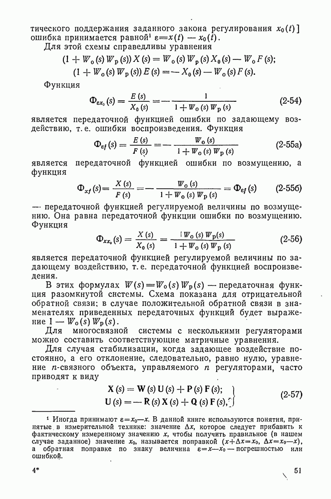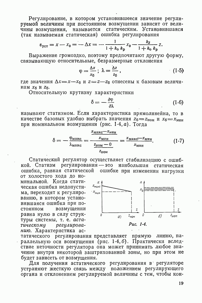 Статическая характеристика регулятора по отклонению (при отсутствии канала воздействия по возмущению) показана линией в семействе кривых II. Это — падающая кривая, так как при уменьшении х значение и должно возрастать. Точки пересечения этой кривой с характеристиками объекта дают значения х при различных возмущениях, устанавливающиеся в системе регулирования только по отклонению. По этим данным легко построить и характеристику регулирования