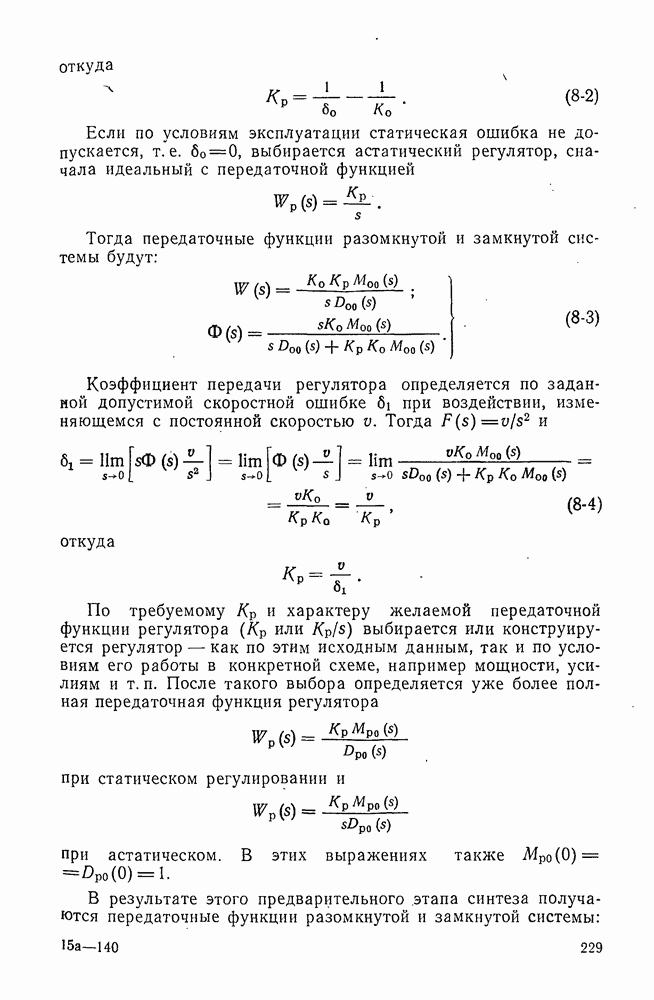 С помощью таких характеристик можно решать и обратные задачи подбора характеристик регуляторов.