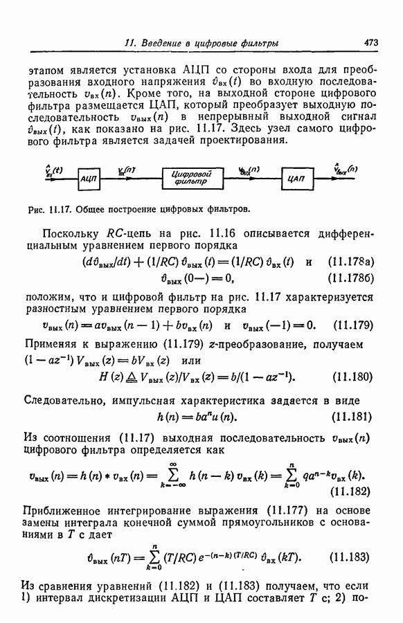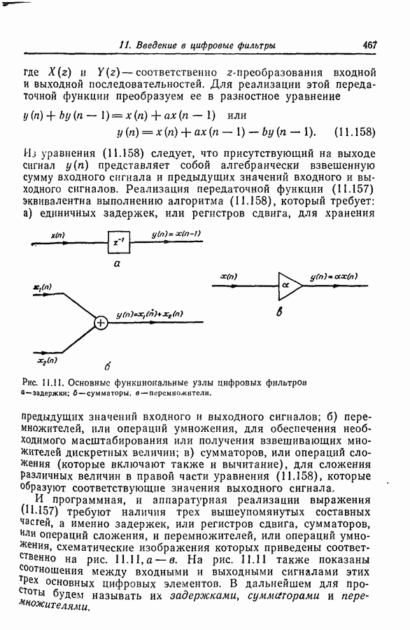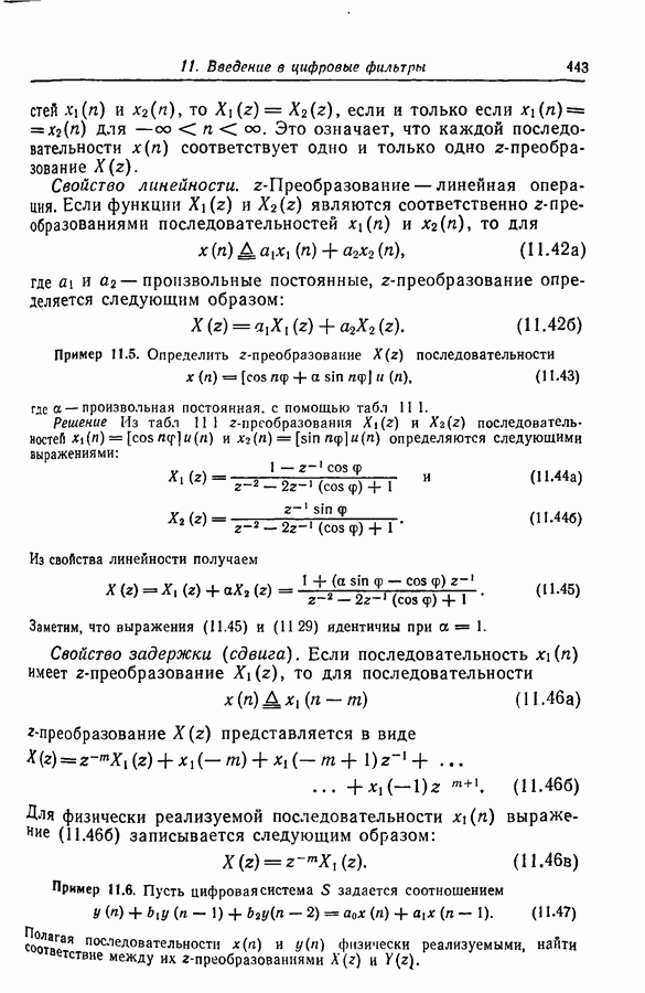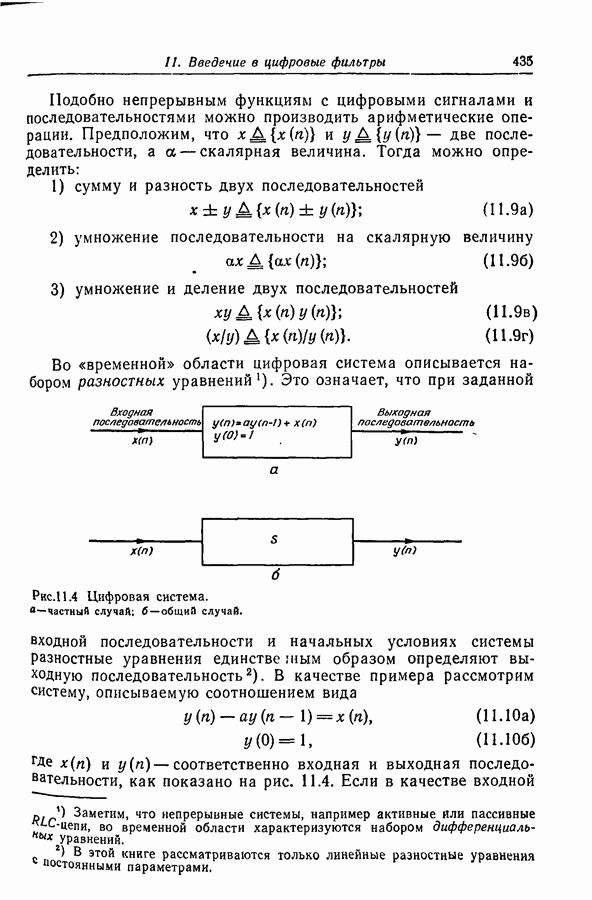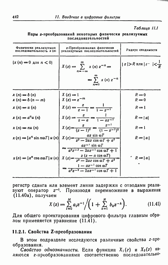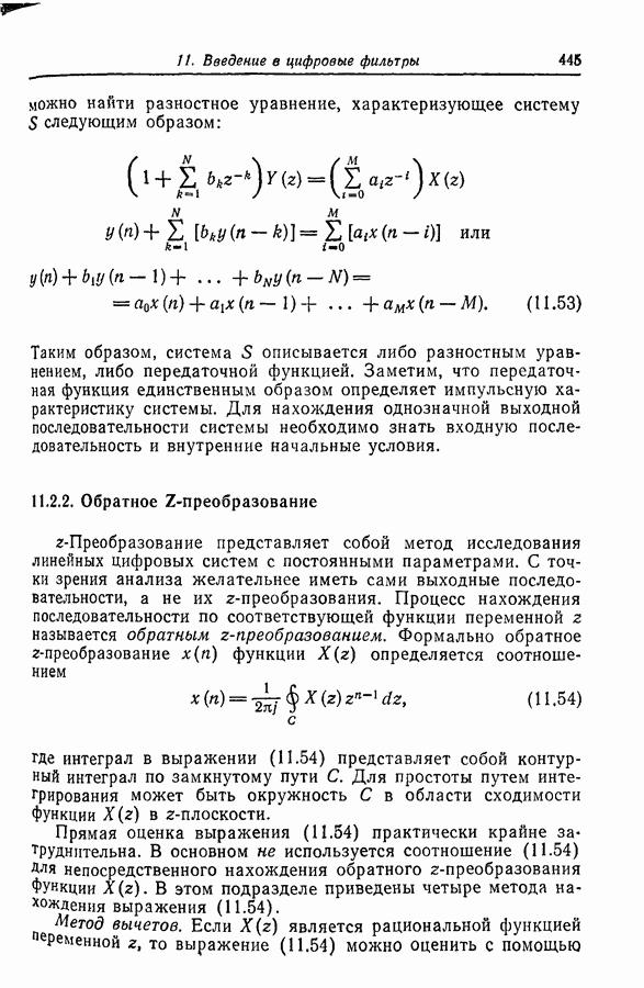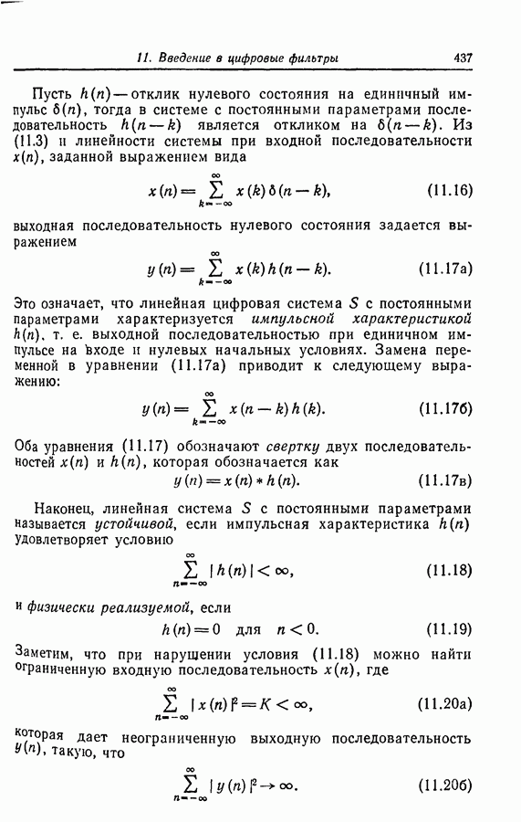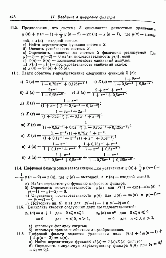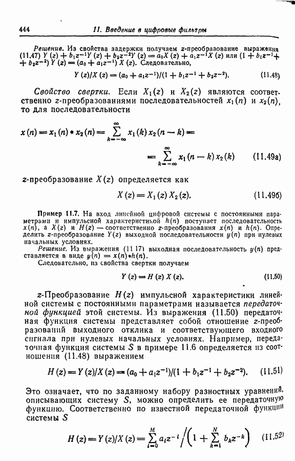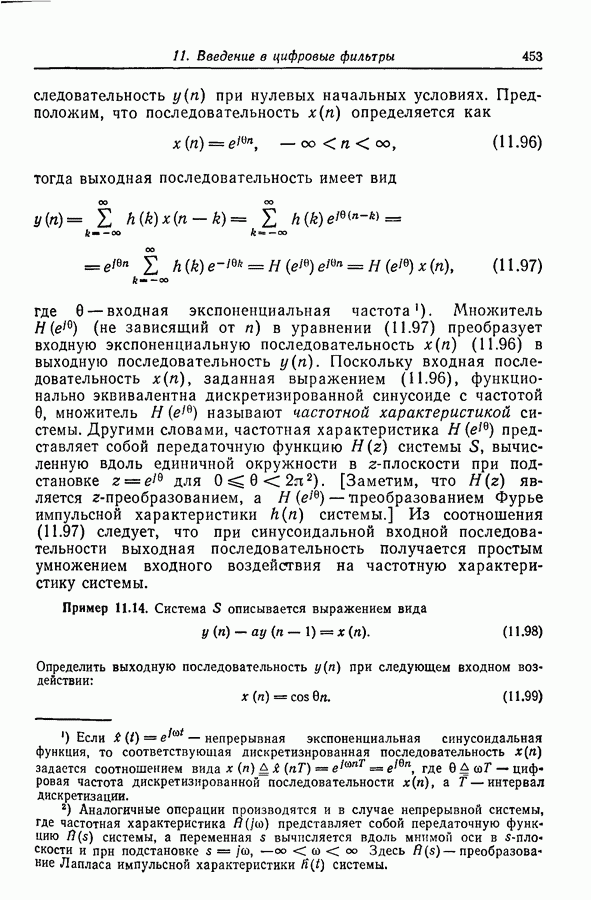 описывается либо разностным уравнением, либо передаточной функцией. Заметим, что передаточная функция единственным образом определяет импульсную характеристику системы. Для нахождения однозначной выходной последовательности системы необходимо знать входную последовательность и внутренние начальные условия.