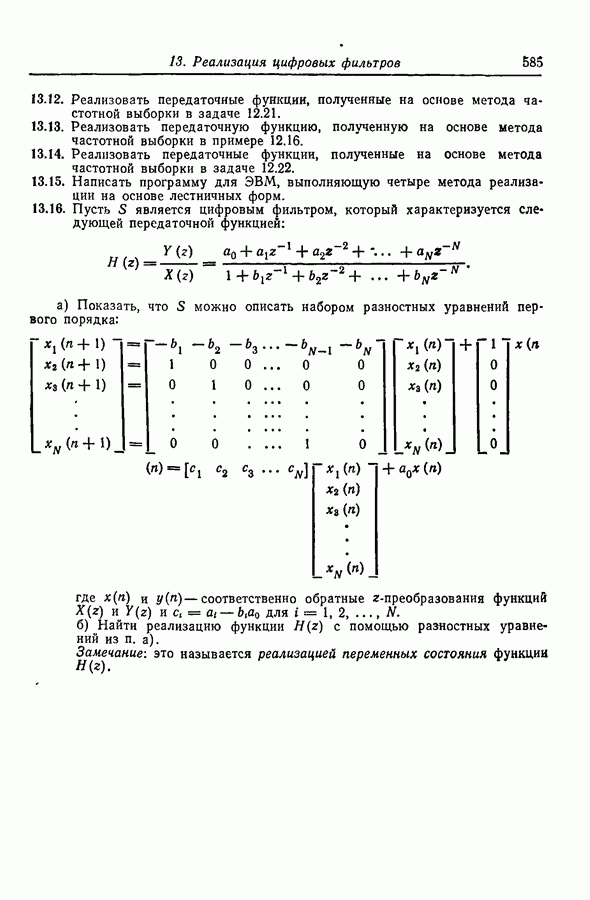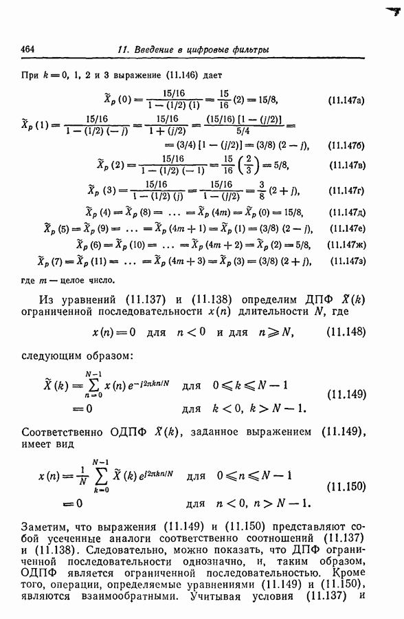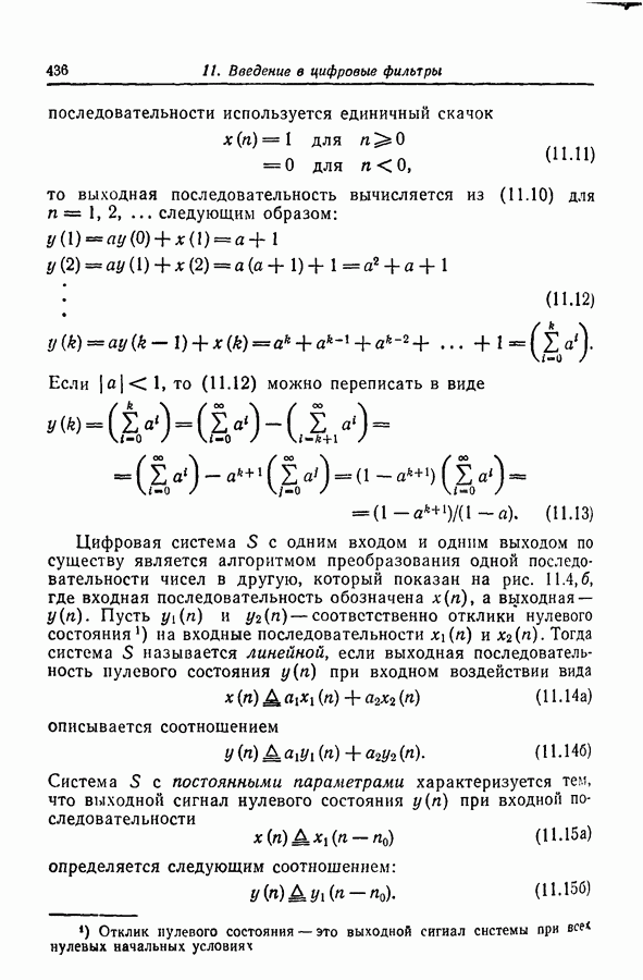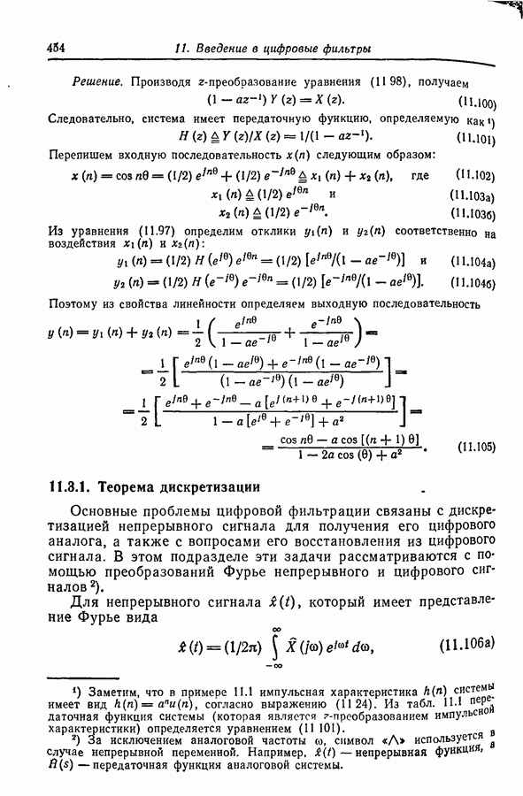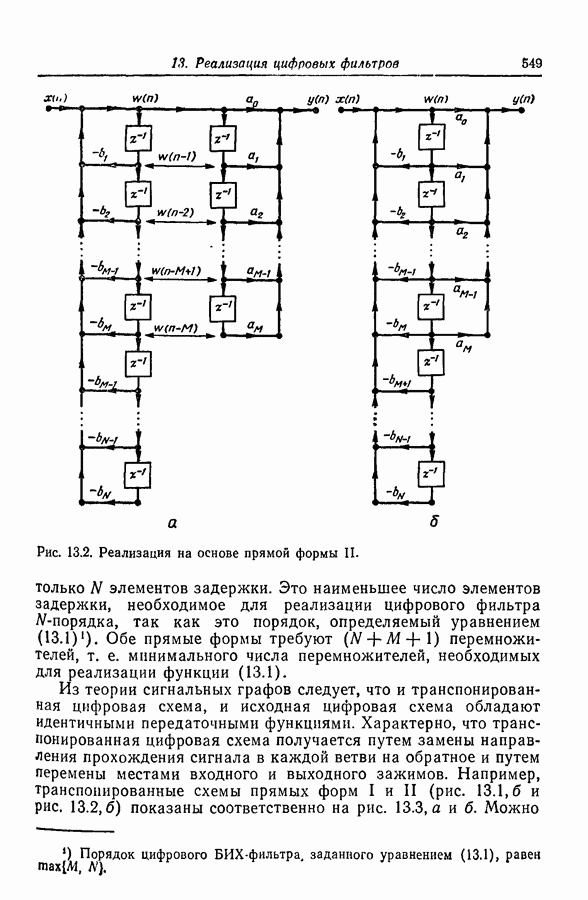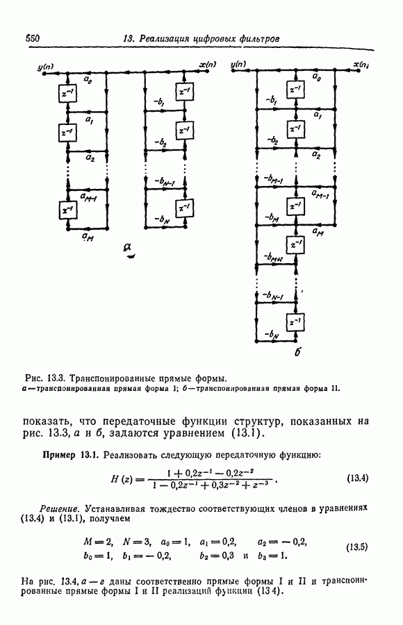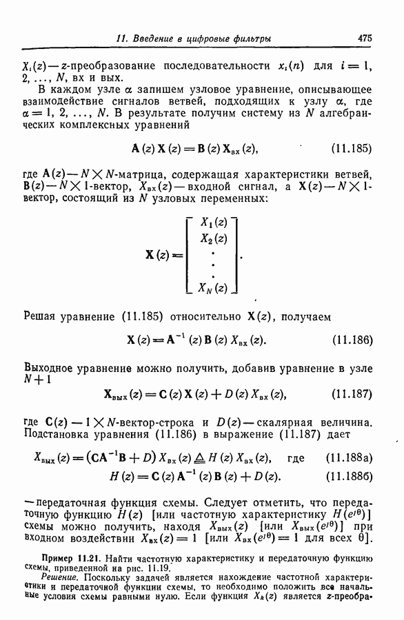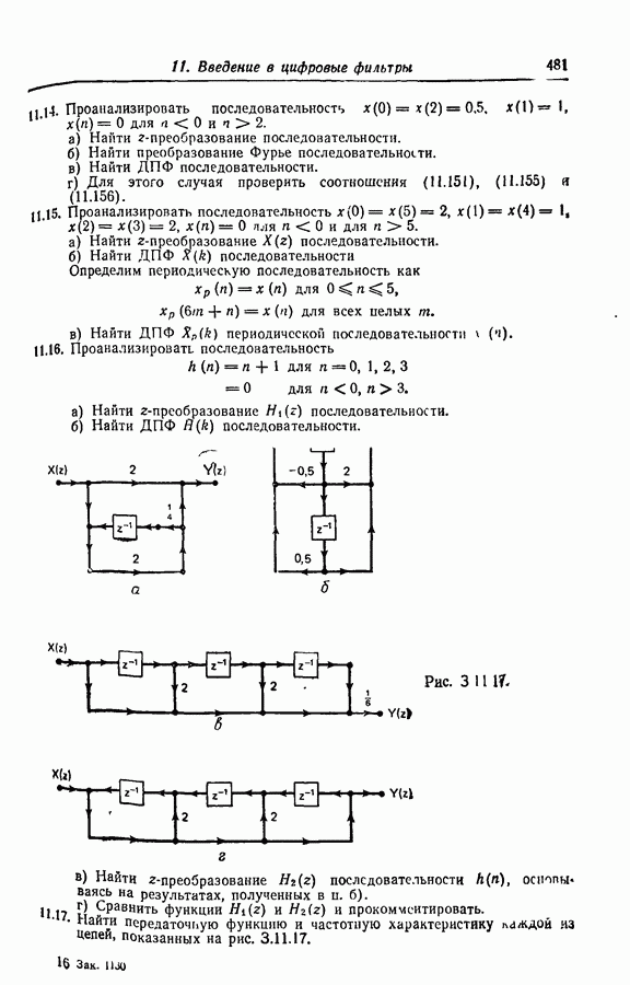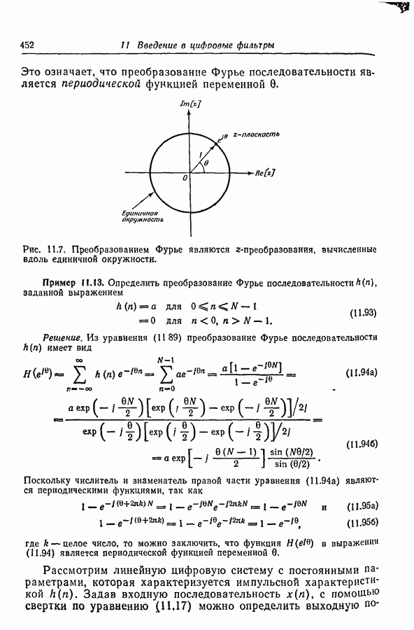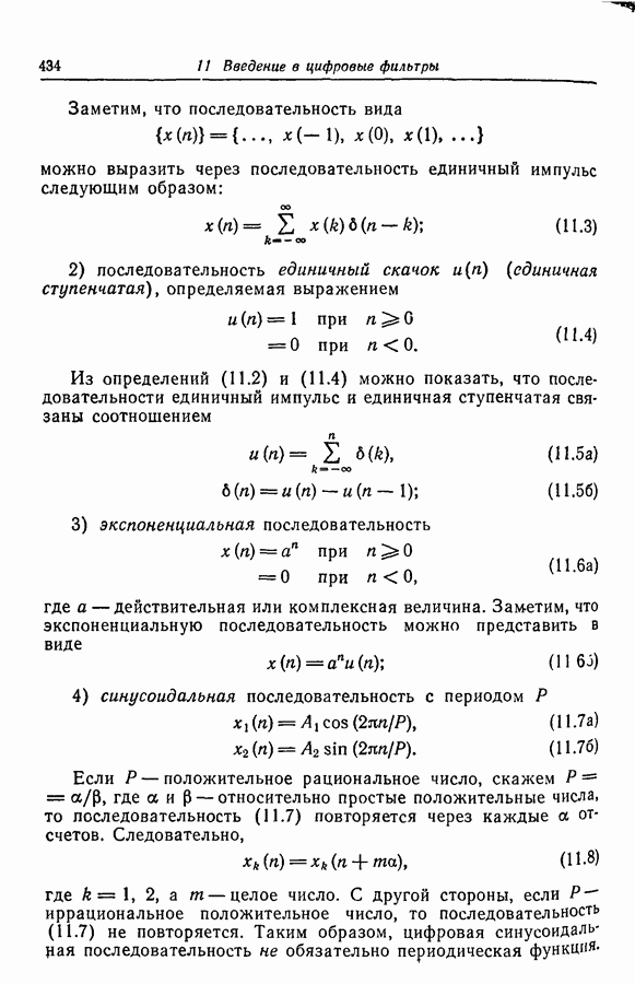 описывается либо разностным уравнением, либо передаточной функцией. Заметим, что передаточная функция единственным образом определяет импульсную характеристику системы. Для нахождения однозначной выходной последовательности системы необходимо знать входную последовательность и внутренние начальные условия.