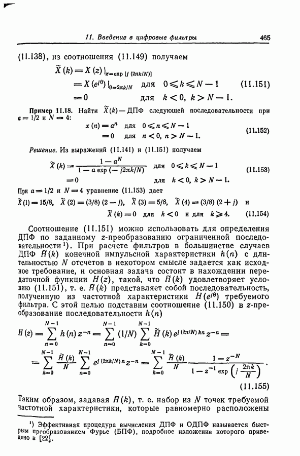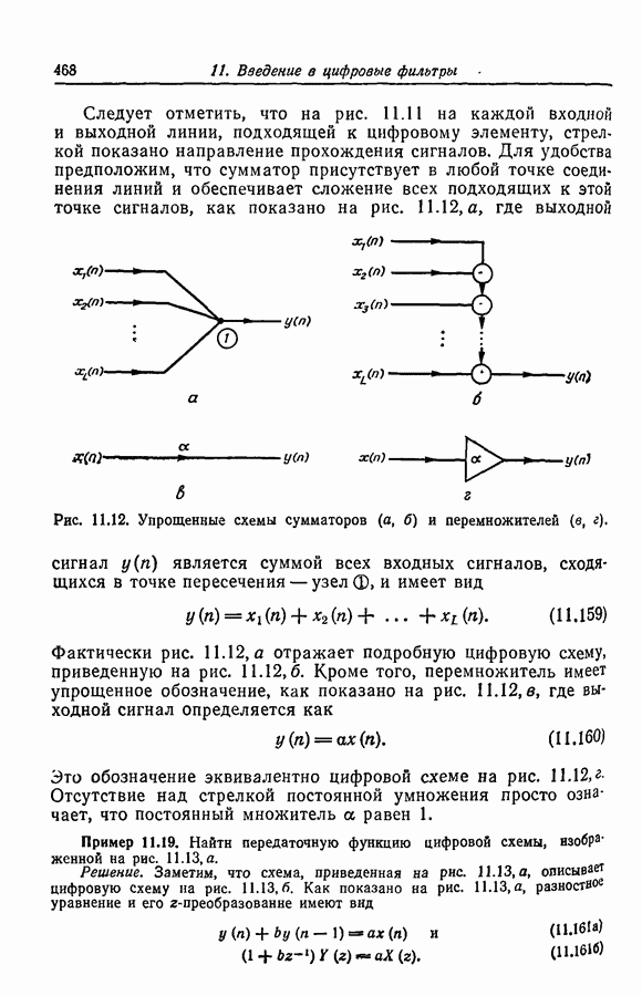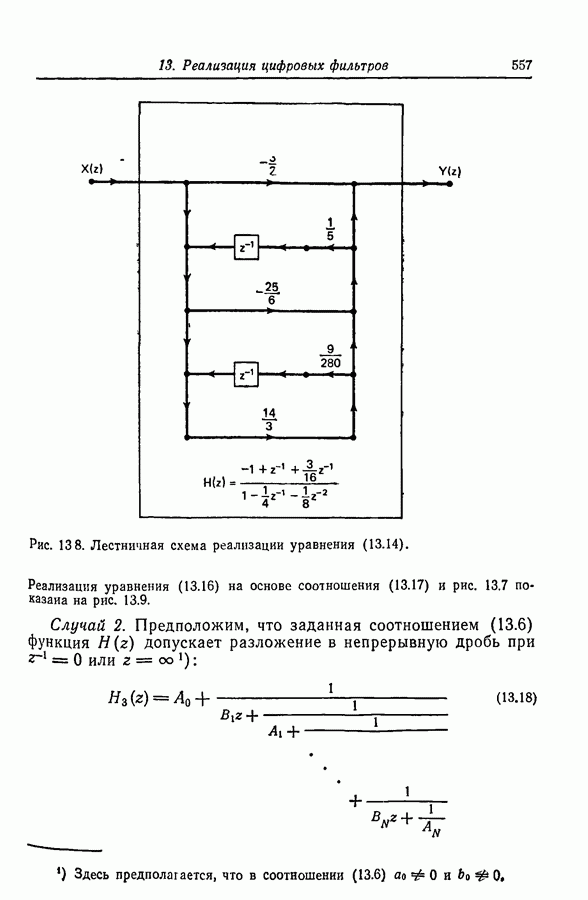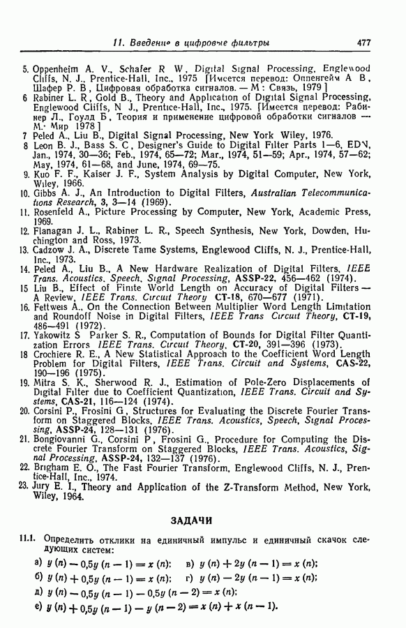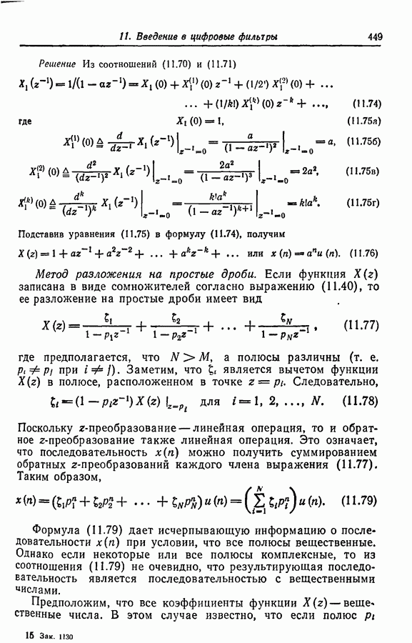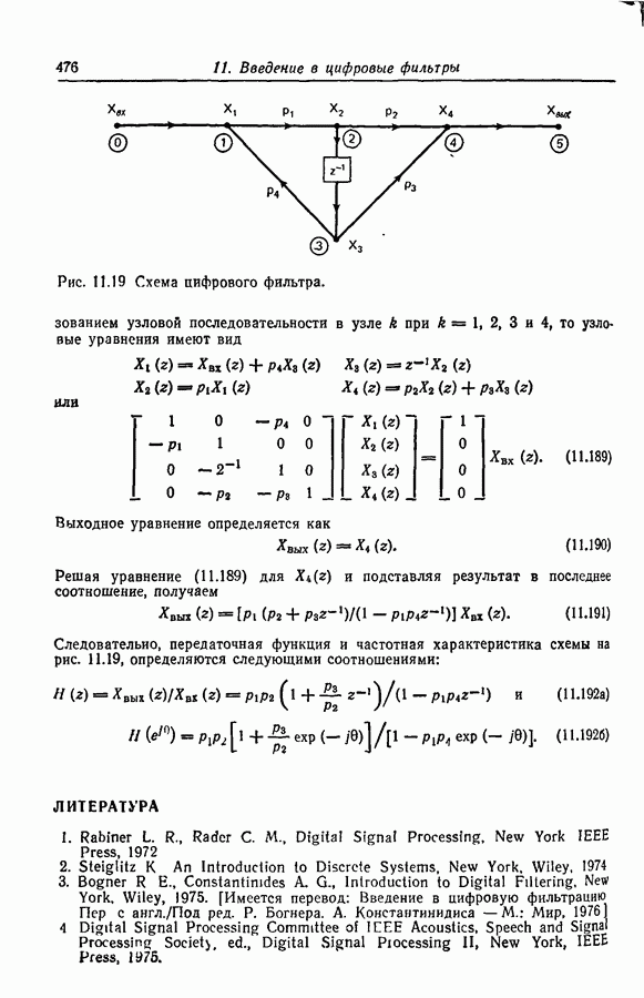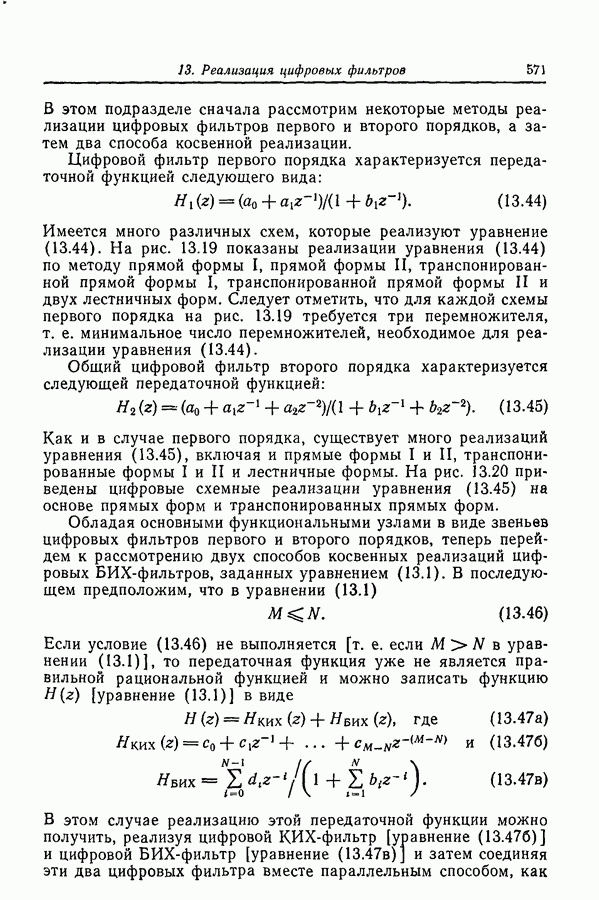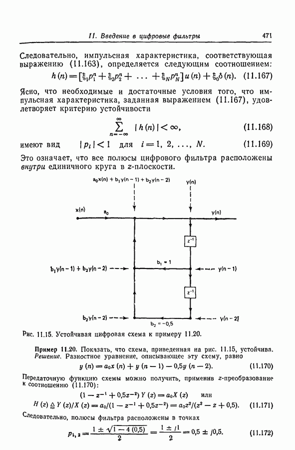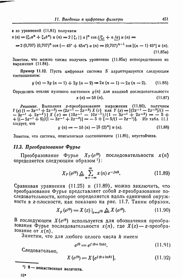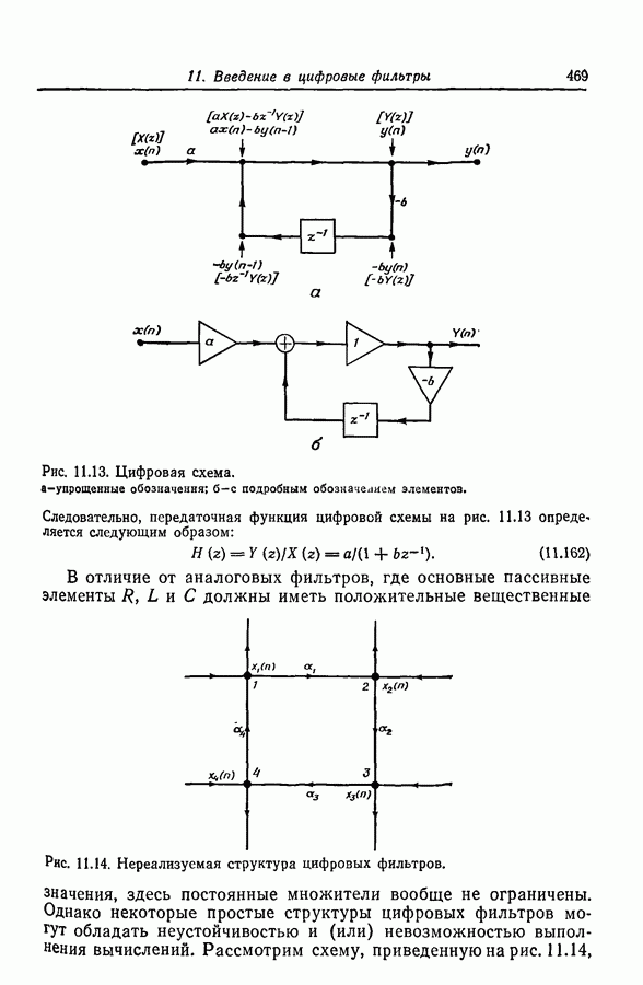 описывается либо разностным уравнением, либо передаточной функцией. Заметим, что передаточная функция единственным образом определяет импульсную характеристику системы. Для нахождения однозначной выходной последовательности системы необходимо знать входную последовательность и внутренние начальные условия.