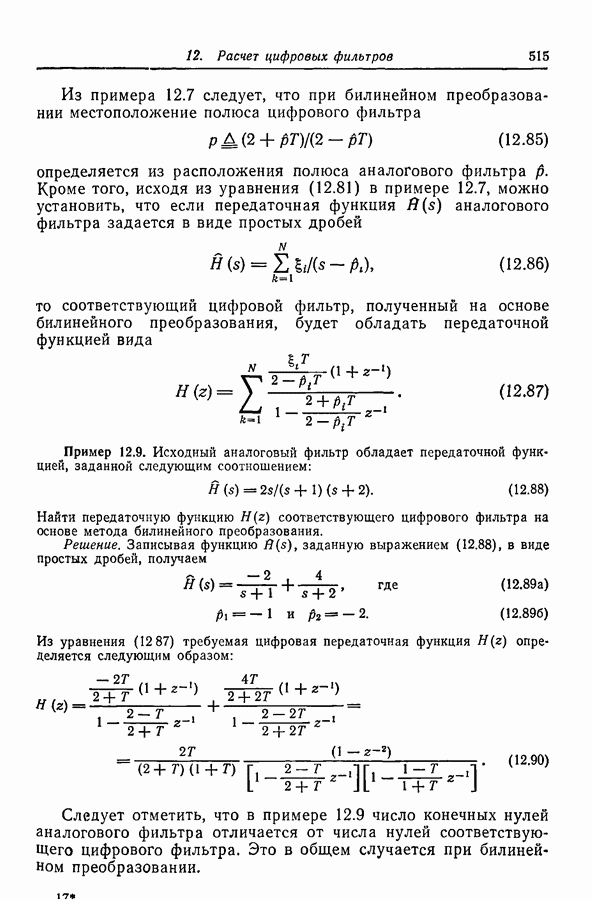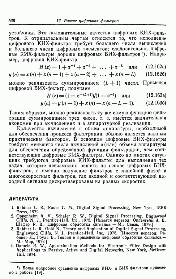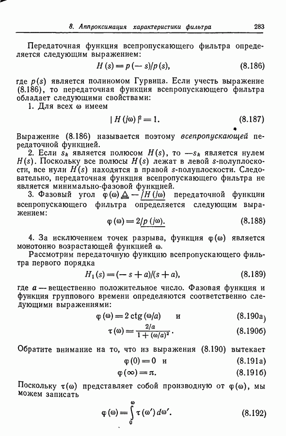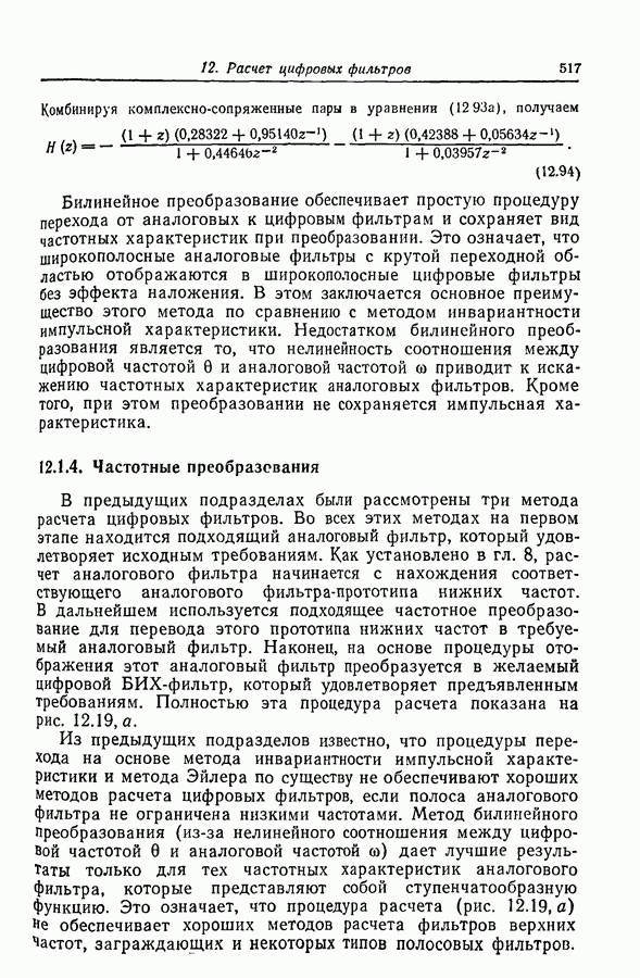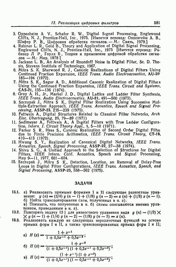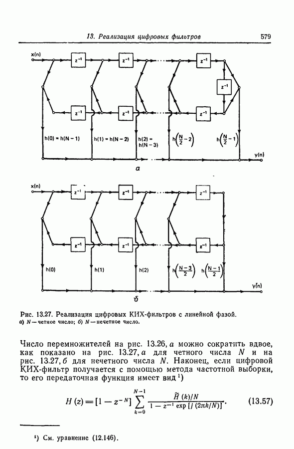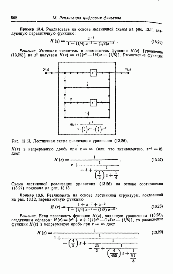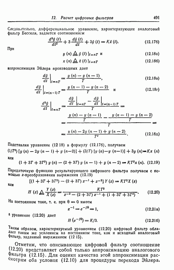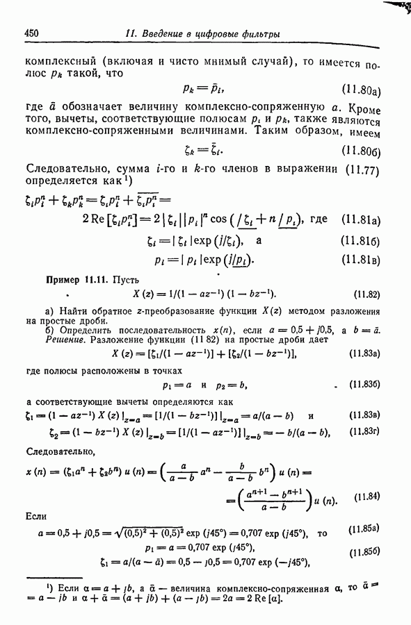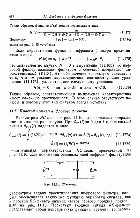 описывается либо разностным уравнением, либо передаточной функцией. Заметим, что передаточная функция единственным образом определяет импульсную характеристику системы. Для нахождения однозначной выходной последовательности системы необходимо знать входную последовательность и внутренние начальные условия.