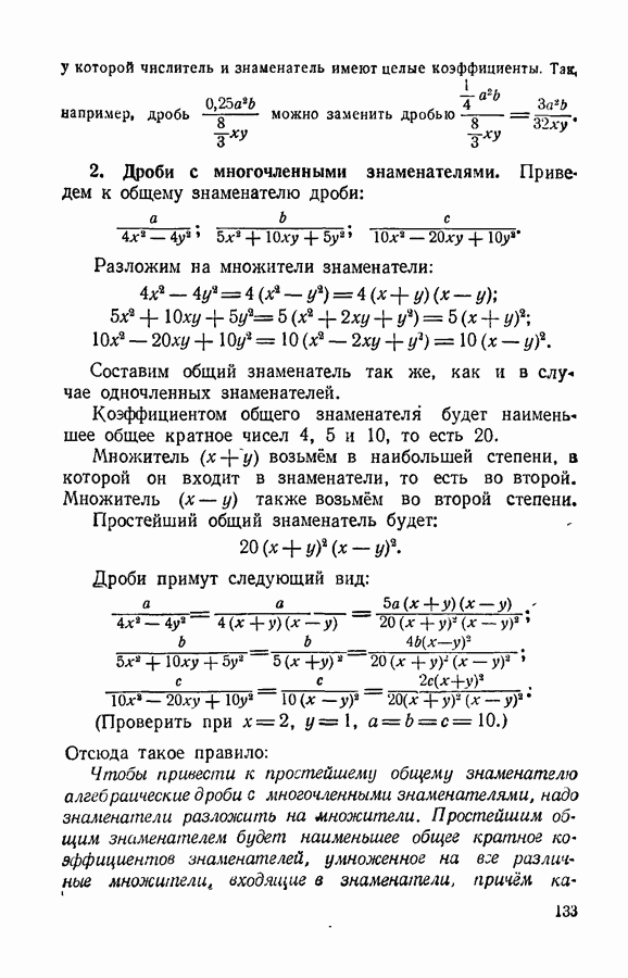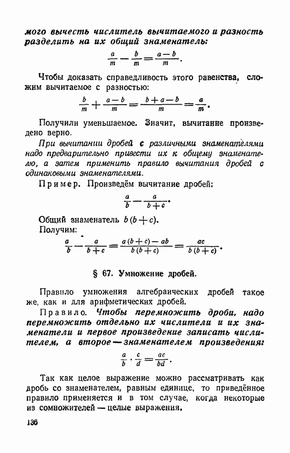 При вычитании дробей с различными знаменателями надо предварительно привести их к общему знаменателю, а затем применить правило вычитания дробей с одинаковыми знаменателями.