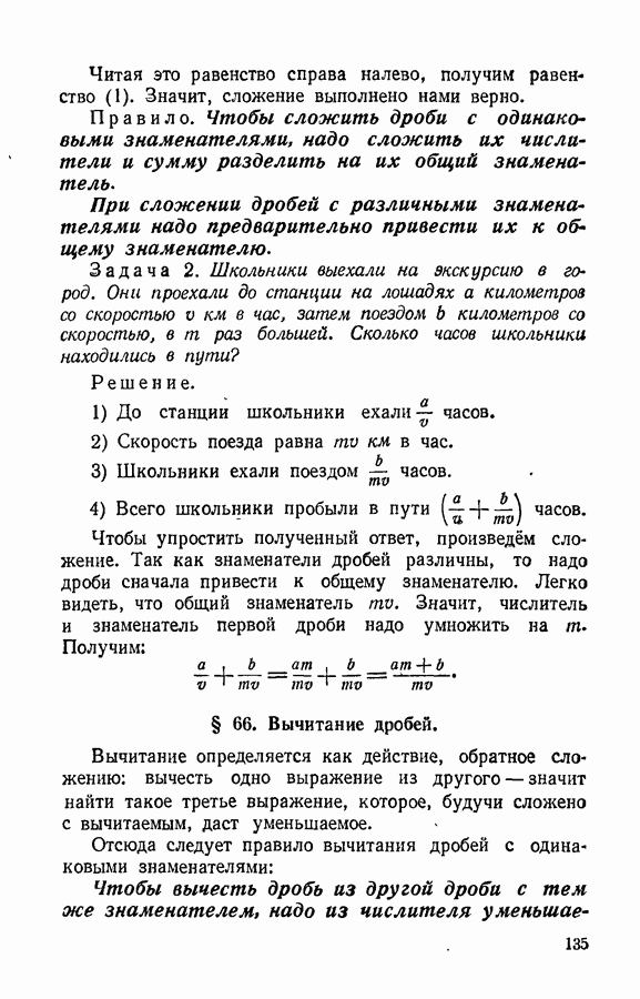 Отсюда следует правило вычитания дробей с одинаковыми знаменателями: