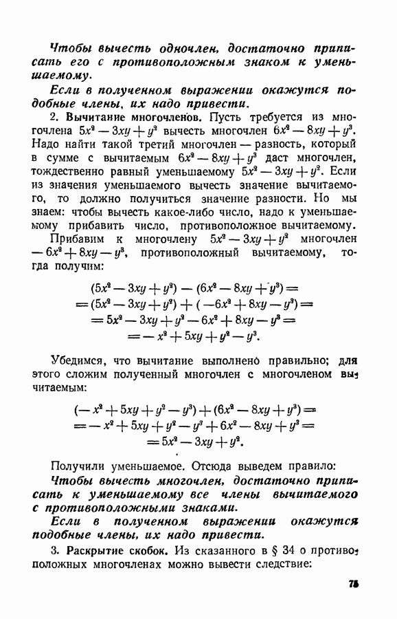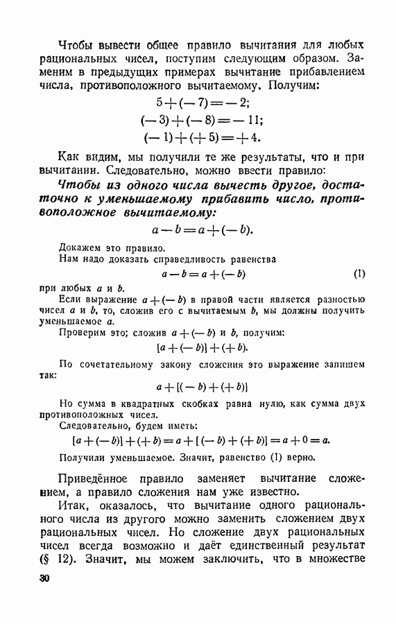 Вычитание определяется как действие, обратное сложению: вычесть одно выражение из другого — значит найти такое третье выражение, которое, будучи сложено с вычитаемым, даст уменьшаемое.
