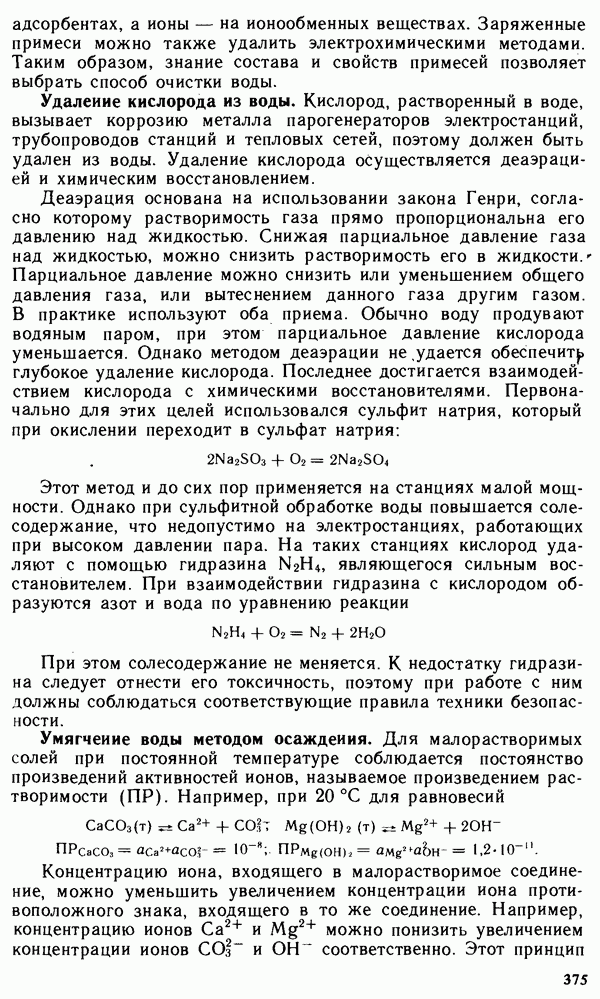 При этом солесодержание не меняется. К недостатку гидразина следует отнести его токсичность, поэтому при работе с ним должны соблюдаться соответствующие правила техники безопасности. Умягчение воды методом осаждения.Для малорастворимых солей при постоянной температуре соблюдается постоянство произведений активностей ионов, называемое произведением растворимости