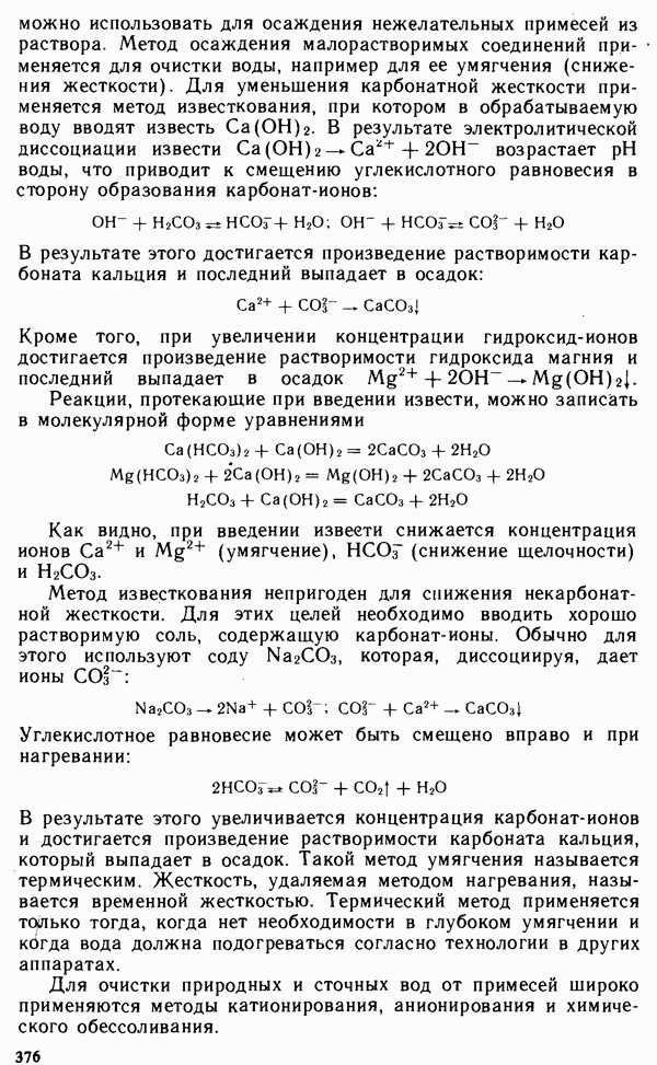 Как видно, при введении извести снижается концентрация ионов Метод известкования непригоден для снижения некарбонатной жесткости. Для этих целей необходимо вводить хорошо растворимую соль, содержащую карбонат-ионы. Обычно для этого используют соду