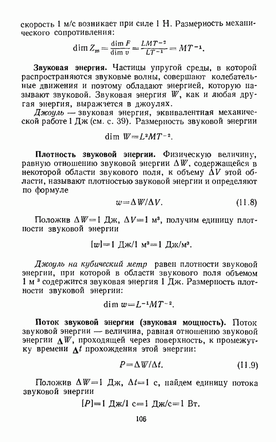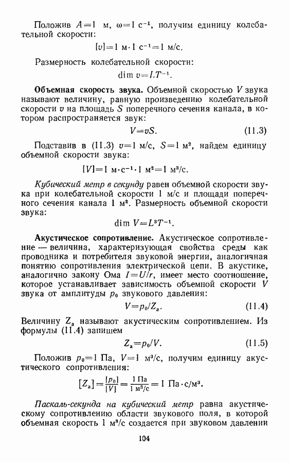 Объемная скорость звука. Единицу объемной скорости звука найдем по формуле (11.3):