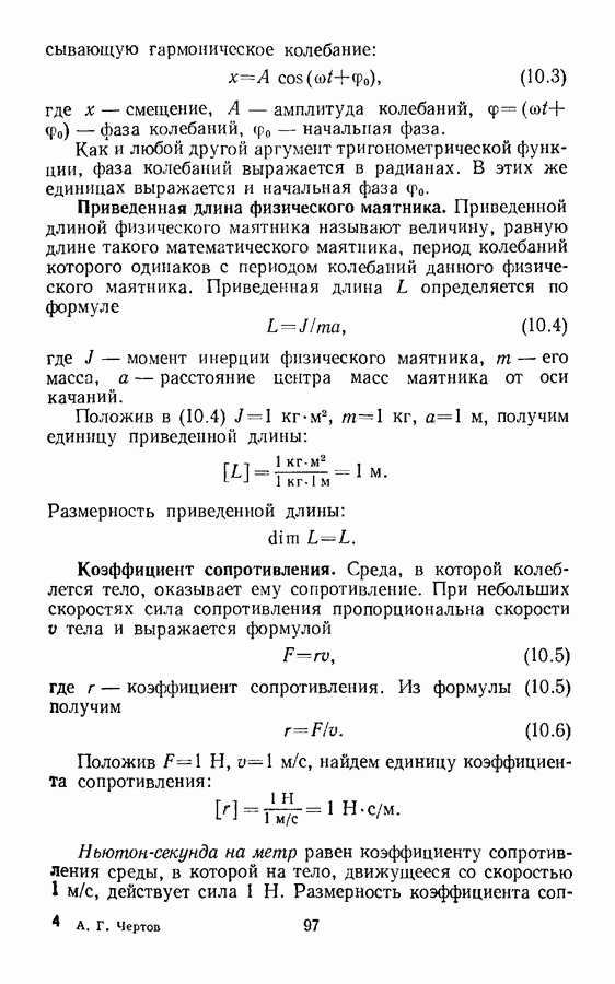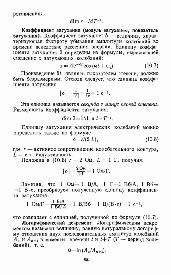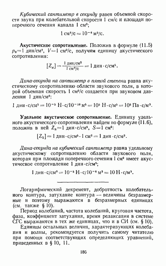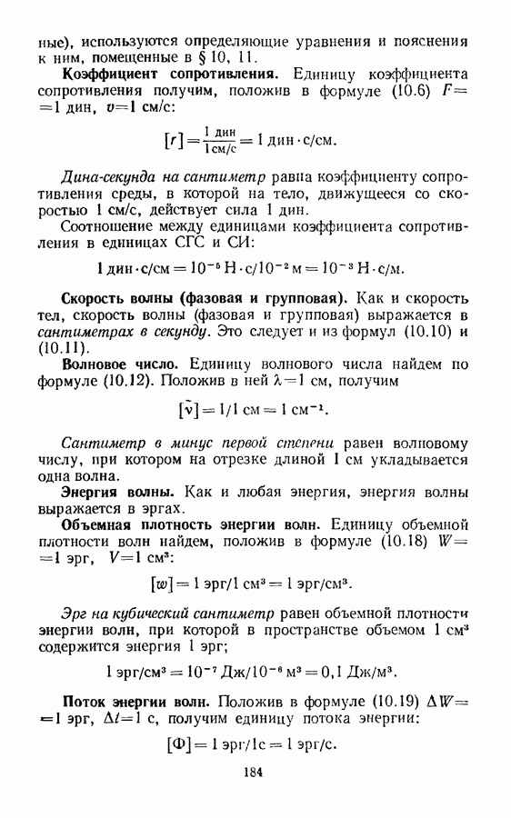 § 20. ПРОИЗВОДНЫЕ ЕДИНИЦЫ ВЕЛИЧИН, ХАРАКТЕРИЗУЮЩИХ КОЛЕБАНИЯ И ВОЛНЫ В СИСТЕМЕ СГСПри получении в системе СГС производных единиц величин, характеризующих колебания и волны (имеются в виду все виды волн, в том числе акустические и электромагнитные), используются определяющие уравнения и пояснения к ним, помещенные в § 10, 11. Коэффициент сопротивления. Единицу коэффициента сопротивления получим, положив в формуле