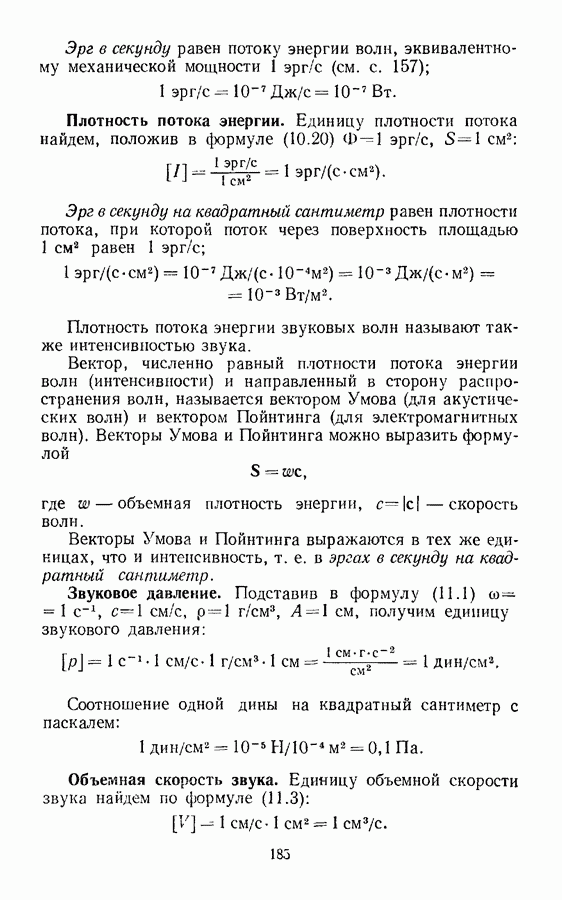 где Векторы Умова и Пойнтинга выражаются в тех же единицах, что и интенсивность, т. е. в эргах в секунду на квадратный сантиметр. Звуковое давление. Подставив в формулу