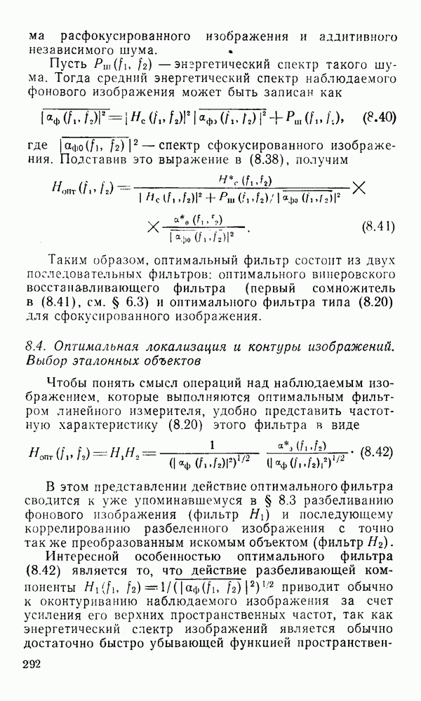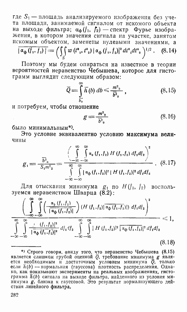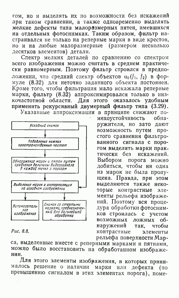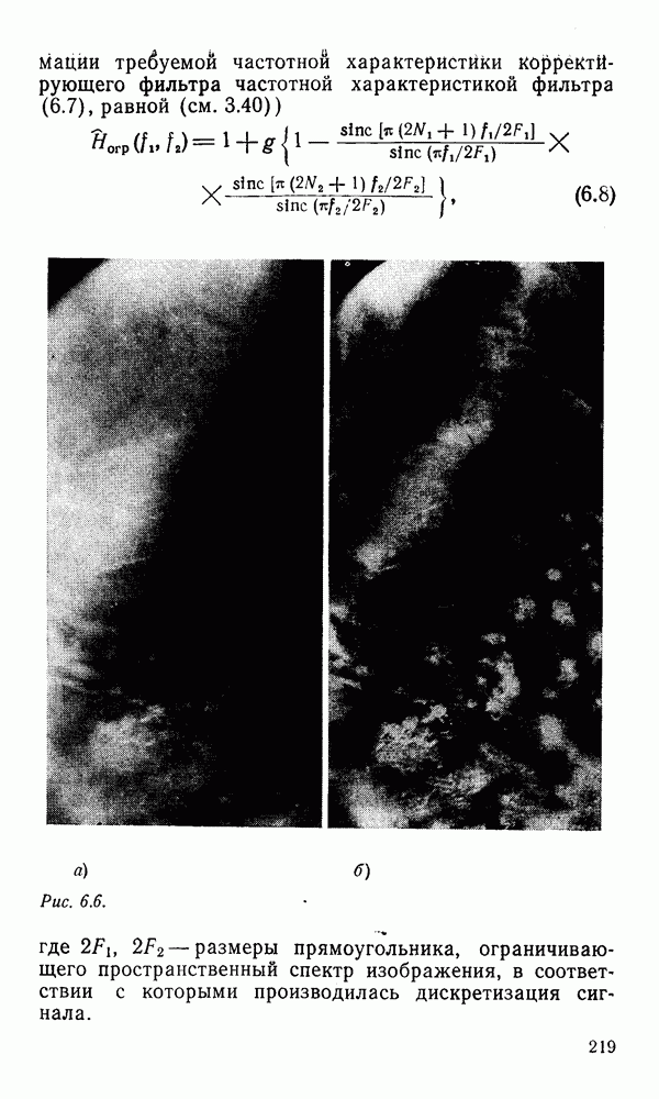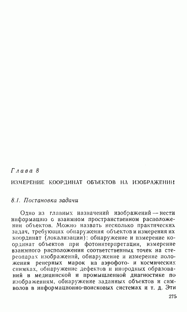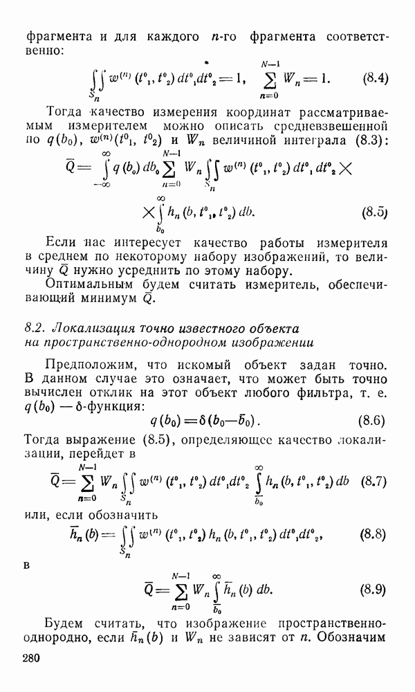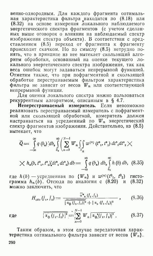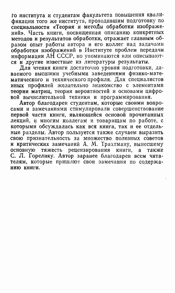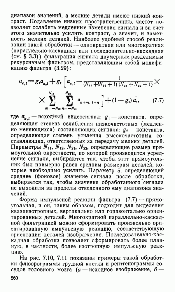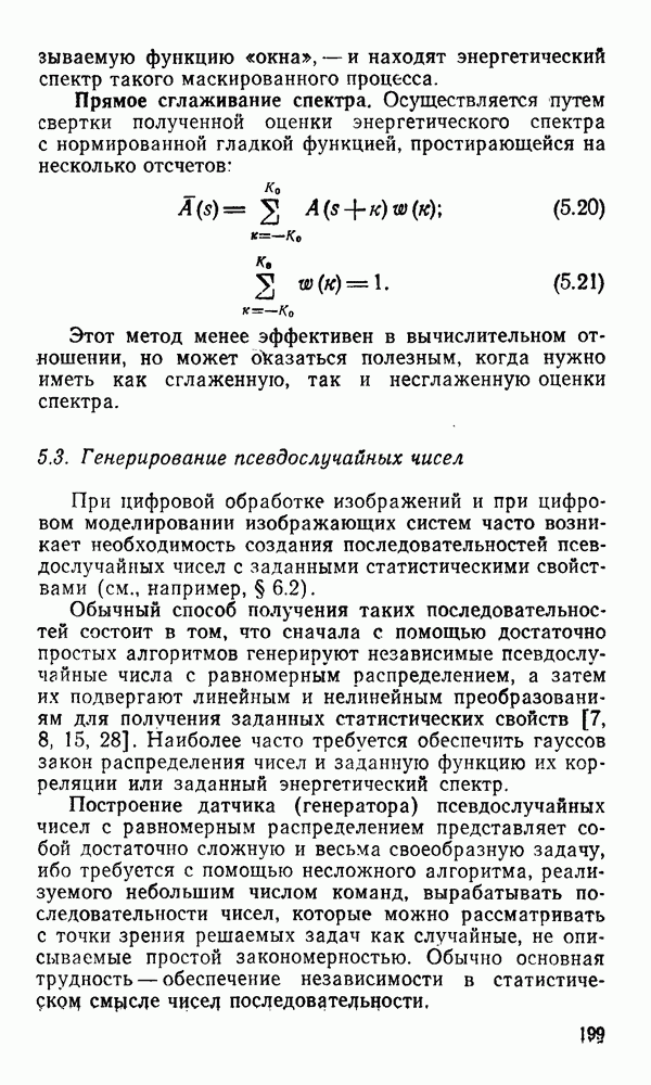 2.6. Другие подходы к дискретизацииТеорема отсчетов дает правило дискретизации сигналов с ограниченным спектром. Чтобы ее использовать для дискретизации изображений, необходимо знать форму и размеры фигуры, ограничивающей спектр изображений. Эти данные иногда непосредственно связаны с известными конструктивными характеристиками изображающих систем (скажем, с характеристиками объективов и фотопленки для фотографических систем). Но во многих случаях они неизвестны, либо неестественны для описания класса изображений, для которых необходимо выбрать параметры дискретизации. Кроме того, не всегда удобно описывать искажения изображений вследствие дискретизации искажением их спектров, как это удобно при использовании теоремы отсчетов. В этих случаях параметры дискретизации — форму растра, шаг дискретизации — выбирают, исходя из более простых критериев оценки ошибки дискретизации и задаваясь конкретным способом интерполяции отсчетов при восстановлении непрерывного изображения. Одним из таких критериев оценки ошибки является критерий максимального значения отличия сигнала от результата его восстановления по дискретному представлению. Учитывая реальные характеристики устройств воспроизведения изображений, считают, например, что при восстановлении происходит ступенчатая интерполяция его отсчетов (при квадратной апертуре). Поэтому задаются квадратным растром дискретизации, а расстояние между отсчетами выбирают так, чтобы на этом расстоянии сигнал не мог измениться больше, чем на заданную величину ошибки. Для этого нужно, конечно, задаться ограничениями на возможную скорость изменения сигнала изображения по координатам, скажем, на максимальное значение его производных. Если эта величина неизвестна, то можно построить устройство дискретизации, которое автоматически измеряет отличие текущего значения сигнала от его значения в ближайшем отсчете и выбирает следующий отсчет там, где это отличие достигает заданного порога ошибки. Такой способ дискретизации называется адаптивной дискретизацией. Очевидно, что при адаптивной дискретизации расстояние между отсчетами непостоянно. Поэтому этот способ, используемый иногда для экономного кодирования изображений для дискретных каналов связи, при представлении изображений в цифровых процессорах для цифровой обработки неудобен и не применяется. Он может, однако, использоваться при архивном хранении изображений в запоминающих устройствах цифровых процессоров. Наконец, в некоторых случаях не удается найти и сформулировать какой-либо определенный критерий точности дискретизации изображений. Тогда решение о выборе параметров дискретизации приходится принимать, основываясь на полученных эмпирическим путем данных о требуемом количестве отсчетов на объект минимальной площади или других подобных показателях. В описанных способах дискретизации изображений дискретным представлением служат отсчеты сигнала, что, как уже отмечалось, соответствует представлению сигнала по отсчетным функциям и в устройствах измерения и дискретизации слабых излучений (радиоактивного, рентгеновского, инфракрасного и т. п.) для увеличения чувствительности датчиков. Краткий обзор этих методов можно найти в [125, 126].