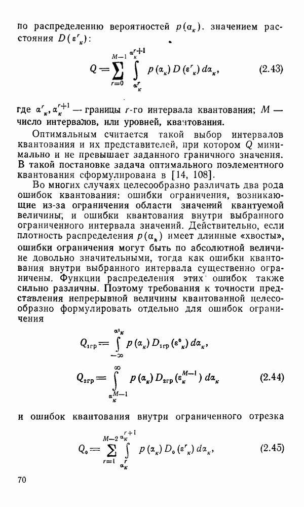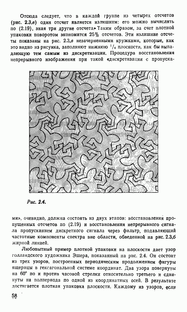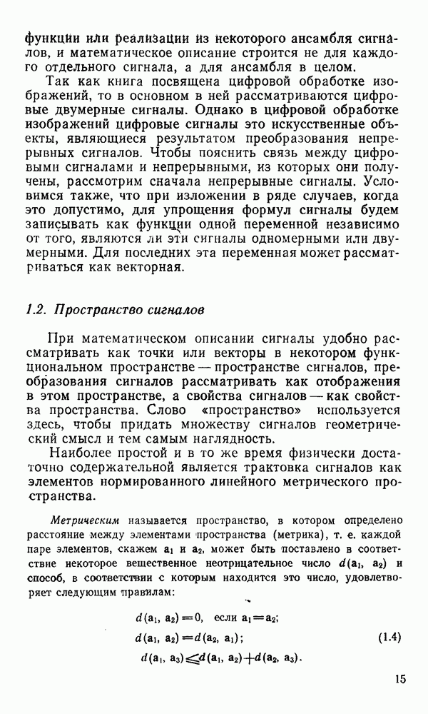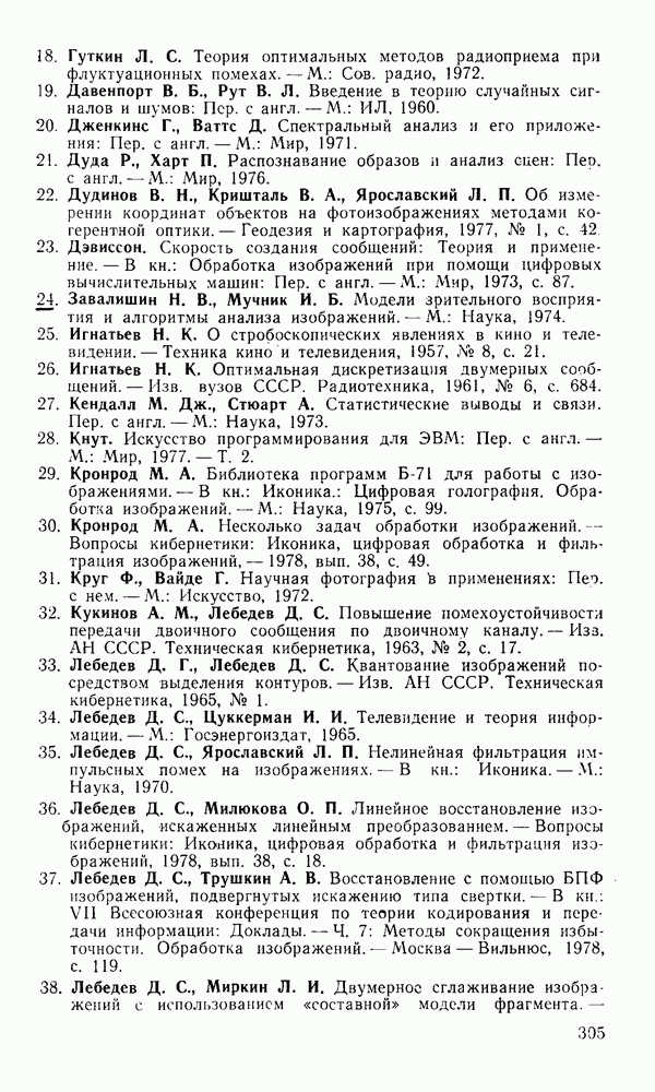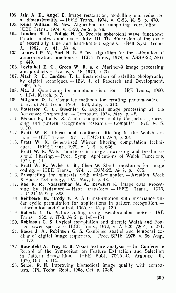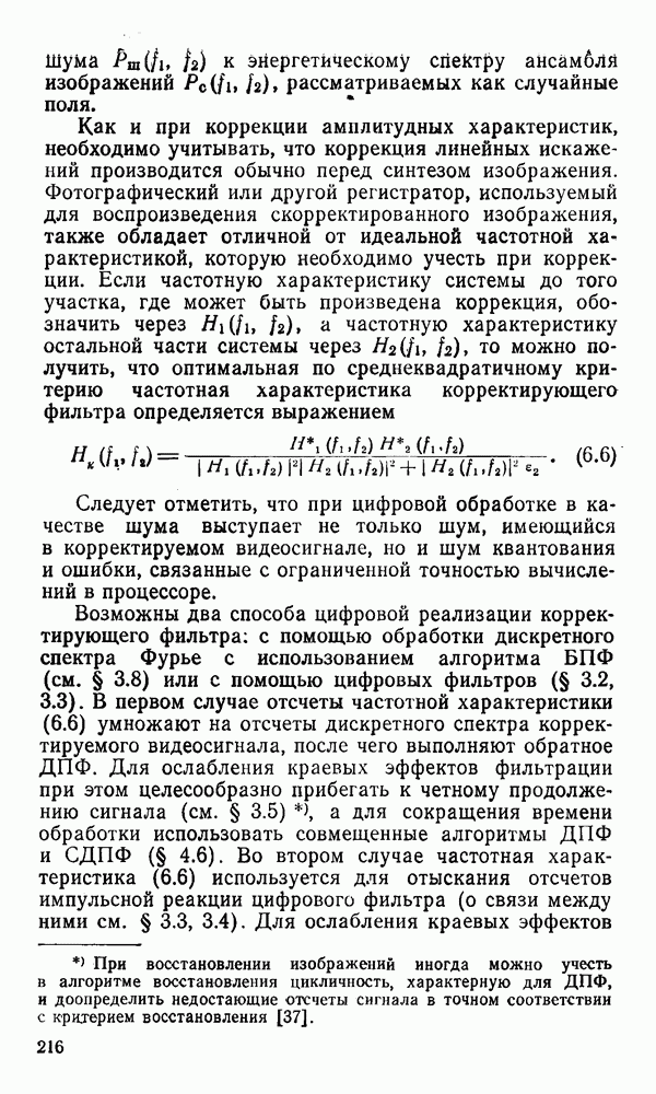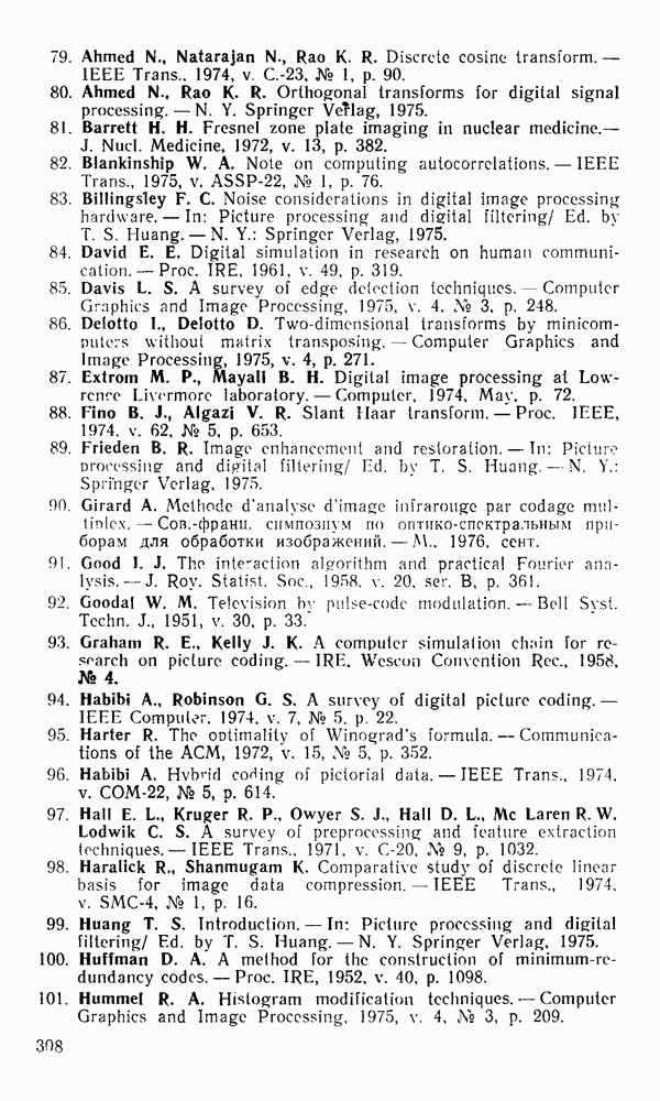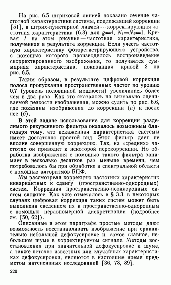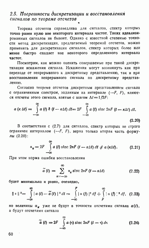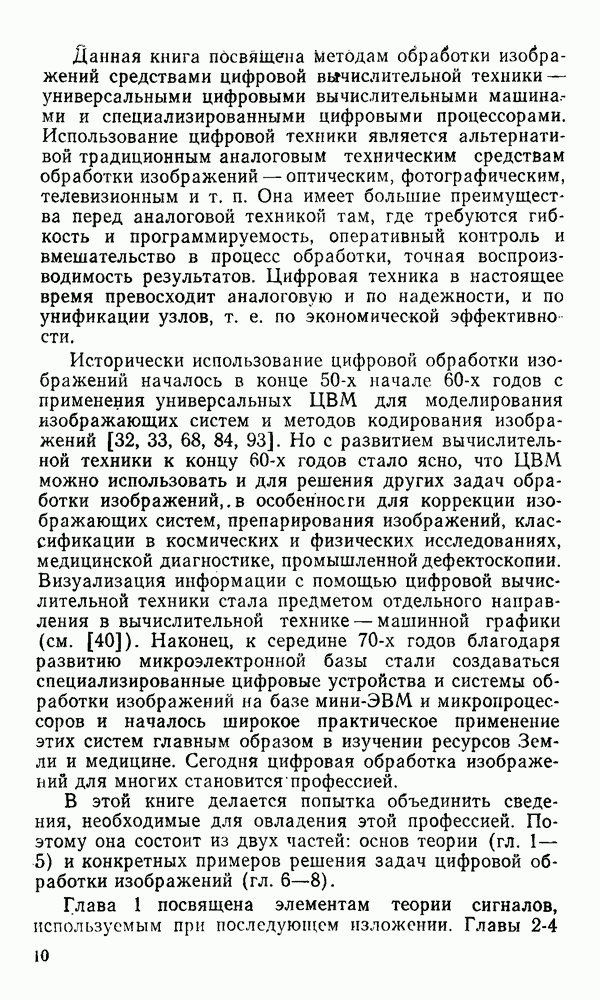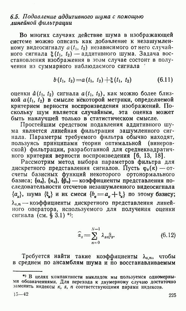 2.6. Другие подходы к дискретизацииТеорема отсчетов дает правило дискретизации сигналов с ограниченным спектром. Чтобы ее использовать для дискретизации изображений, необходимо знать форму и размеры фигуры, ограничивающей спектр изображений. Эти данные иногда непосредственно связаны с известными конструктивными характеристиками изображающих систем (скажем, с характеристиками объективов и фотопленки для фотографических систем). Но во многих случаях они неизвестны, либо неестественны для описания класса изображений, для которых необходимо выбрать параметры дискретизации. Кроме того, не всегда удобно описывать искажения изображений вследствие дискретизации искажением их спектров, как это удобно при использовании теоремы отсчетов. В этих случаях параметры дискретизации — форму растра, шаг дискретизации — выбирают, исходя из более простых критериев оценки ошибки дискретизации и задаваясь конкретным способом интерполяции отсчетов при восстановлении непрерывного изображения. Одним из таких критериев оценки ошибки является критерий максимального значения отличия сигнала от результата его восстановления по дискретному представлению. Учитывая реальные характеристики устройств воспроизведения изображений, считают, например, что при восстановлении происходит ступенчатая интерполяция его отсчетов (при квадратной апертуре). Поэтому задаются квадратным растром дискретизации, а расстояние между отсчетами выбирают так, чтобы на этом расстоянии сигнал не мог измениться больше, чем на заданную величину ошибки. Для этого нужно, конечно, задаться ограничениями на возможную скорость изменения сигнала изображения по координатам, скажем, на максимальное значение его производных. Если эта величина неизвестна, то можно построить устройство дискретизации, которое автоматически измеряет отличие текущего значения сигнала от его значения в ближайшем отсчете и выбирает следующий отсчет там, где это отличие достигает заданного порога ошибки. Такой способ дискретизации называется адаптивной дискретизацией. Очевидно, что при адаптивной дискретизации расстояние между отсчетами непостоянно. Поэтому этот способ, используемый иногда для экономного кодирования изображений для дискретных каналов связи, при представлении изображений в цифровых процессорах для цифровой обработки неудобен и не применяется. Он может, однако, использоваться при архивном хранении изображений в запоминающих устройствах цифровых процессоров. Наконец, в некоторых случаях не удается найти и сформулировать какой-либо определенный критерий точности дискретизации изображений. Тогда решение о выборе параметров дискретизации приходится принимать, основываясь на полученных эмпирическим путем данных о требуемом количестве отсчетов на объект минимальной площади или других подобных показателях. В описанных способах дискретизации изображений дискретным представлением служат отсчеты сигнала, что, как уже отмечалось, соответствует представлению сигнала по отсчетным функциям и в устройствах измерения и дискретизации слабых излучений (радиоактивного, рентгеновского, инфракрасного и т. п.) для увеличения чувствительности датчиков. Краткий обзор этих методов можно найти в [125, 126].
