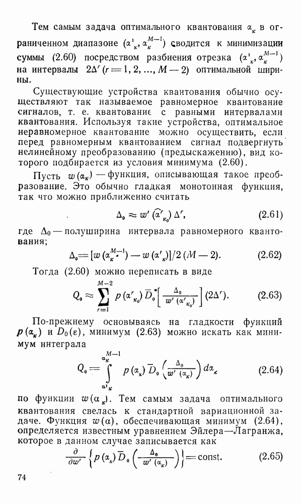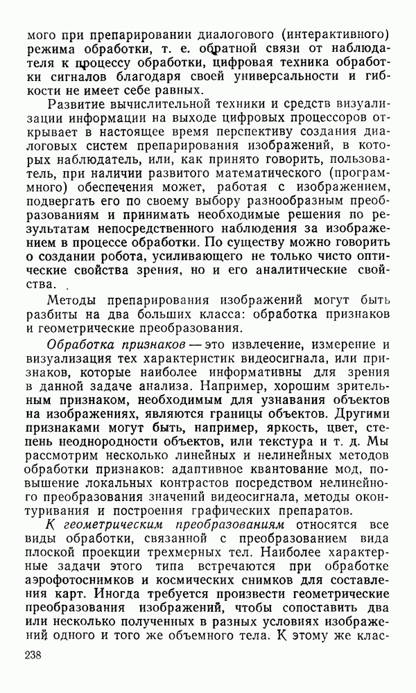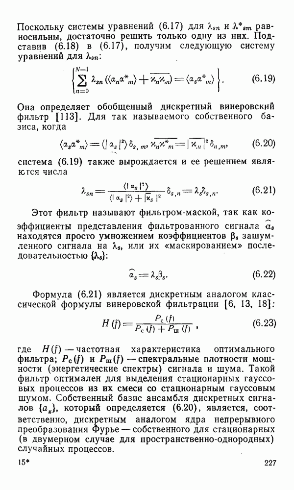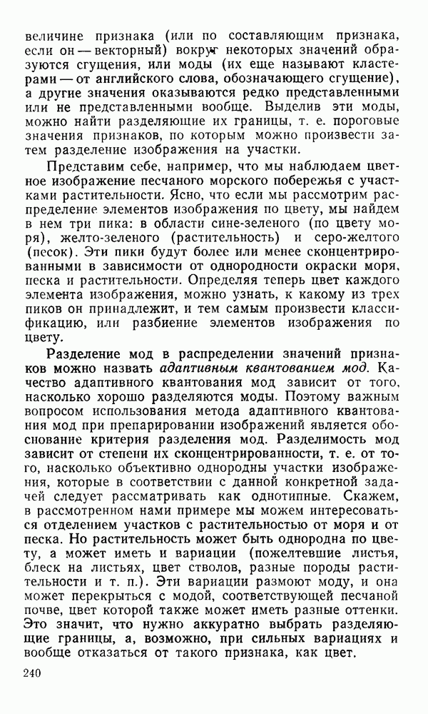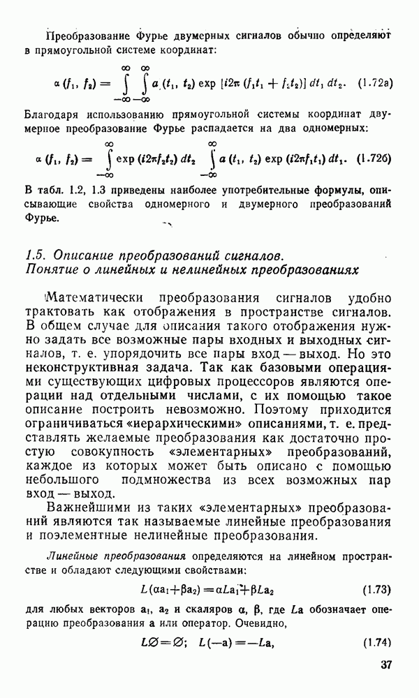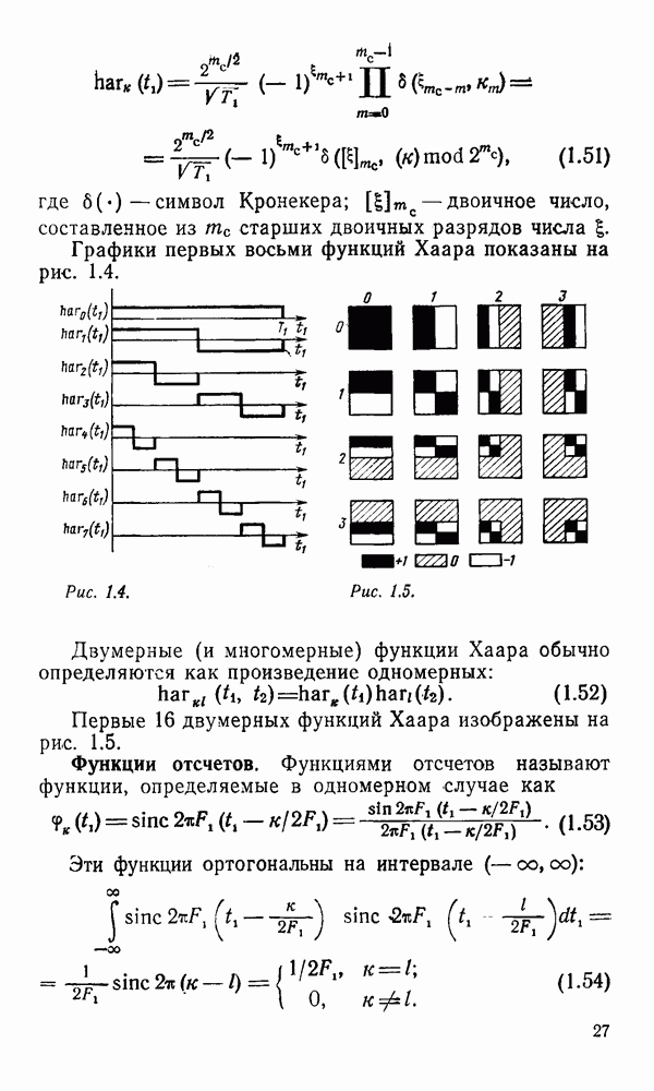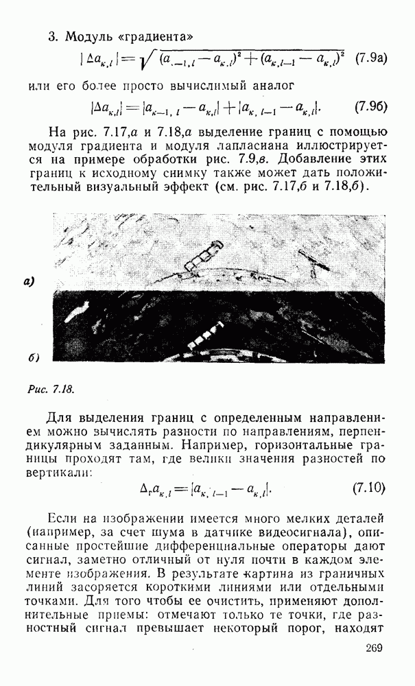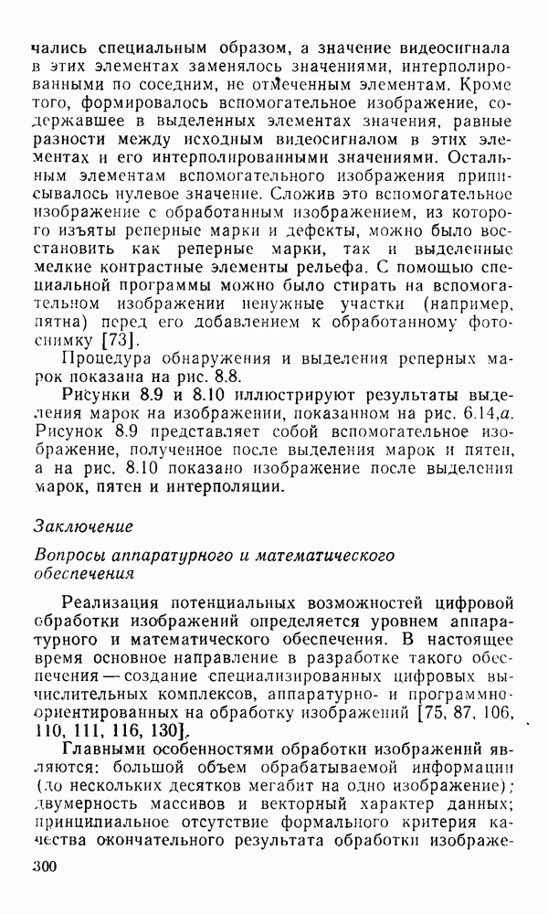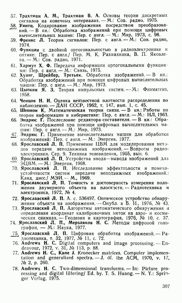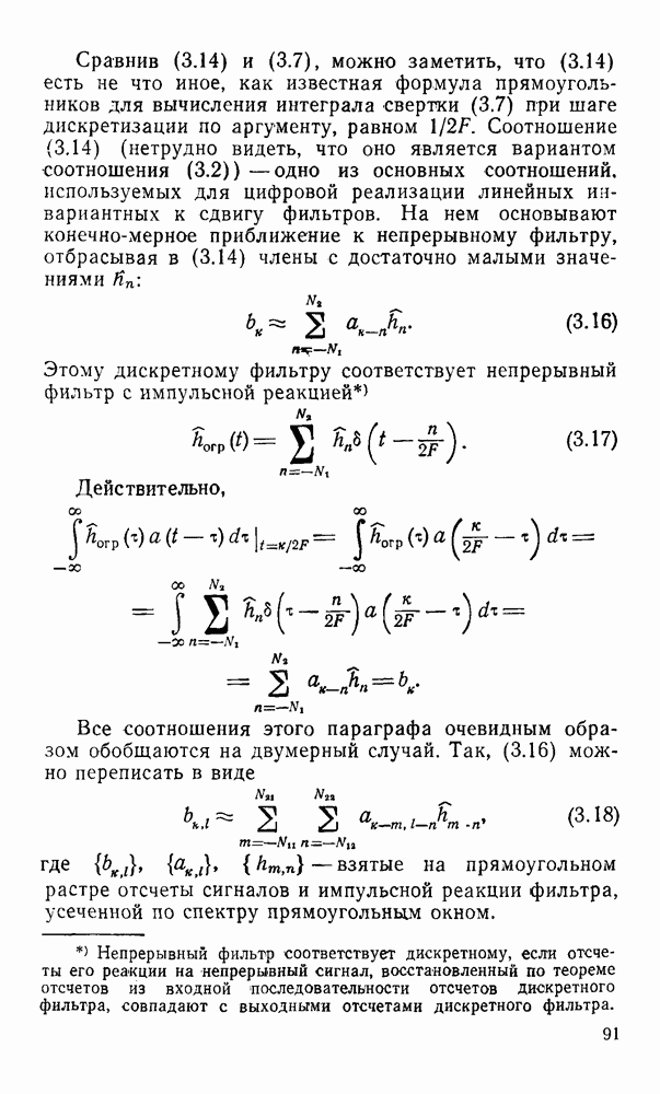 2.6. Другие подходы к дискретизацииТеорема отсчетов дает правило дискретизации сигналов с ограниченным спектром. Чтобы ее использовать для дискретизации изображений, необходимо знать форму и размеры фигуры, ограничивающей спектр изображений. Эти данные иногда непосредственно связаны с известными конструктивными характеристиками изображающих систем (скажем, с характеристиками объективов и фотопленки для фотографических систем). Но во многих случаях они неизвестны, либо неестественны для описания класса изображений, для которых необходимо выбрать параметры дискретизации. Кроме того, не всегда удобно описывать искажения изображений вследствие дискретизации искажением их спектров, как это удобно при использовании теоремы отсчетов. В этих случаях параметры дискретизации — форму растра, шаг дискретизации — выбирают, исходя из более простых критериев оценки ошибки дискретизации и задаваясь конкретным способом интерполяции отсчетов при восстановлении непрерывного изображения. Одним из таких критериев оценки ошибки является критерий максимального значения отличия сигнала от результата его восстановления по дискретному представлению. Учитывая реальные характеристики устройств воспроизведения изображений, считают, например, что при восстановлении происходит ступенчатая интерполяция его отсчетов (при квадратной апертуре). Поэтому задаются квадратным растром дискретизации, а расстояние между отсчетами выбирают так, чтобы на этом расстоянии сигнал не мог измениться больше, чем на заданную величину ошибки. Для этого нужно, конечно, задаться ограничениями на возможную скорость изменения сигнала изображения по координатам, скажем, на максимальное значение его производных. Если эта величина неизвестна, то можно построить устройство дискретизации, которое автоматически измеряет отличие текущего значения сигнала от его значения в ближайшем отсчете и выбирает следующий отсчет там, где это отличие достигает заданного порога ошибки. Такой способ дискретизации называется адаптивной дискретизацией. Очевидно, что при адаптивной дискретизации расстояние между отсчетами непостоянно. Поэтому этот способ, используемый иногда для экономного кодирования изображений для дискретных каналов связи, при представлении изображений в цифровых процессорах для цифровой обработки неудобен и не применяется. Он может, однако, использоваться при архивном хранении изображений в запоминающих устройствах цифровых процессоров. Наконец, в некоторых случаях не удается найти и сформулировать какой-либо определенный критерий точности дискретизации изображений. Тогда решение о выборе параметров дискретизации приходится принимать, основываясь на полученных эмпирическим путем данных о требуемом количестве отсчетов на объект минимальной площади или других подобных показателях. В описанных способах дискретизации изображений дискретным представлением служат отсчеты сигнала, что, как уже отмечалось, соответствует представлению сигнала по отсчетным функциям и в устройствах измерения и дискретизации слабых излучений (радиоактивного, рентгеновского, инфракрасного и т. п.) для увеличения чувствительности датчиков. Краткий обзор этих методов можно найти в [125, 126].
