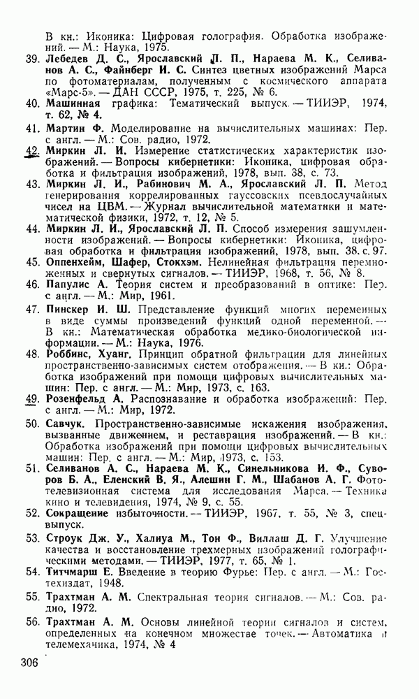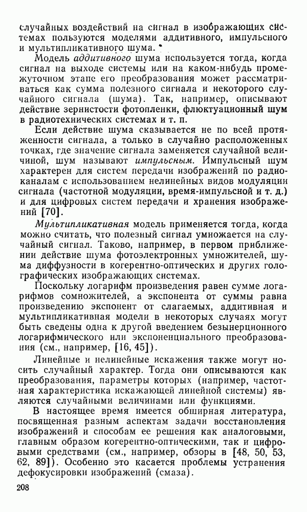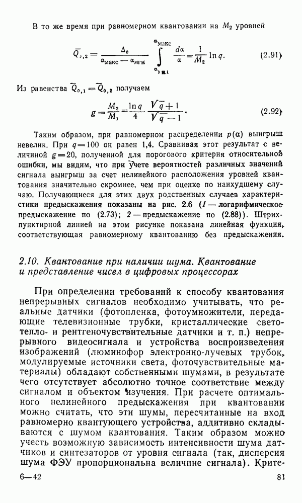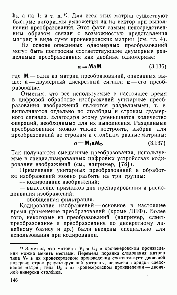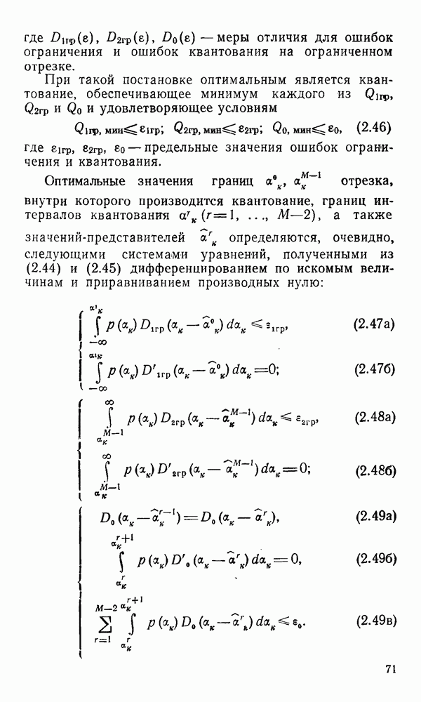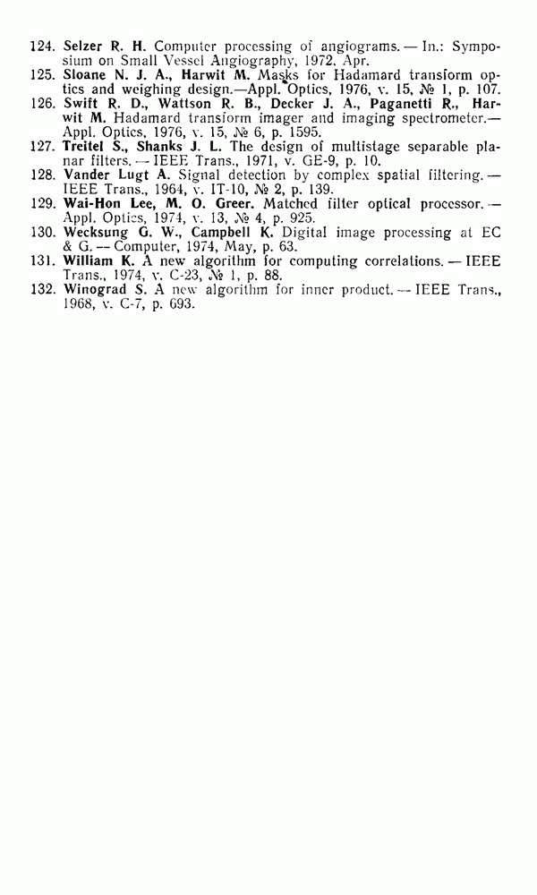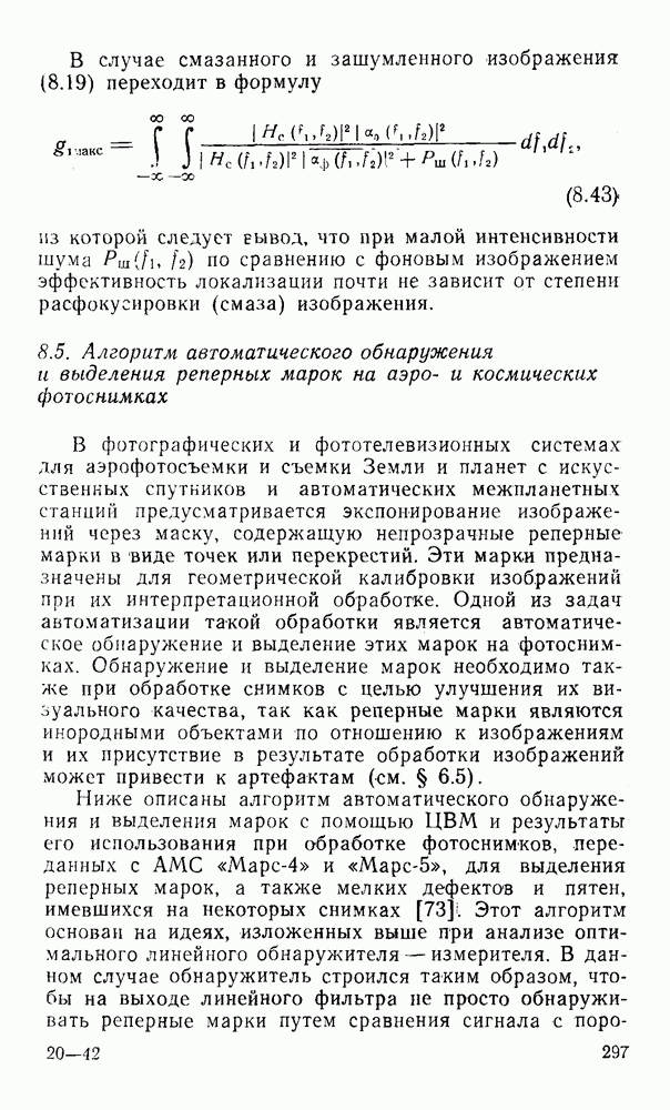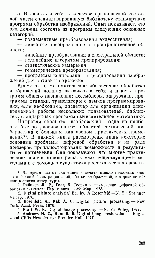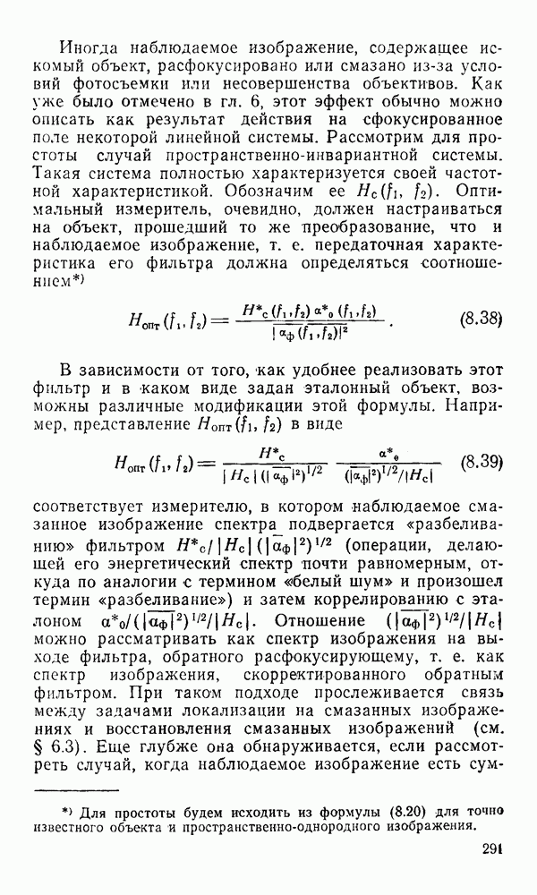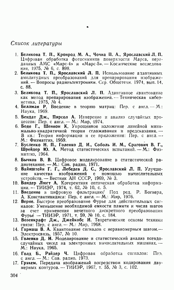 2.6. Другие подходы к дискретизацииТеорема отсчетов дает правило дискретизации сигналов с ограниченным спектром. Чтобы ее использовать для дискретизации изображений, необходимо знать форму и размеры фигуры, ограничивающей спектр изображений. Эти данные иногда непосредственно связаны с известными конструктивными характеристиками изображающих систем (скажем, с характеристиками объективов и фотопленки для фотографических систем). Но во многих случаях они неизвестны, либо неестественны для описания класса изображений, для которых необходимо выбрать параметры дискретизации. Кроме того, не всегда удобно описывать искажения изображений вследствие дискретизации искажением их спектров, как это удобно при использовании теоремы отсчетов. В этих случаях параметры дискретизации — форму растра, шаг дискретизации — выбирают, исходя из более простых критериев оценки ошибки дискретизации и задаваясь конкретным способом интерполяции отсчетов при восстановлении непрерывного изображения. Одним из таких критериев оценки ошибки является критерий максимального значения отличия сигнала от результата его восстановления по дискретному представлению. Учитывая реальные характеристики устройств воспроизведения изображений, считают, например, что при восстановлении происходит ступенчатая интерполяция его отсчетов (при квадратной апертуре). Поэтому задаются квадратным растром дискретизации, а расстояние между отсчетами выбирают так, чтобы на этом расстоянии сигнал не мог измениться больше, чем на заданную величину ошибки. Для этого нужно, конечно, задаться ограничениями на возможную скорость изменения сигнала изображения по координатам, скажем, на максимальное значение его производных. Если эта величина неизвестна, то можно построить устройство дискретизации, которое автоматически измеряет отличие текущего значения сигнала от его значения в ближайшем отсчете и выбирает следующий отсчет там, где это отличие достигает заданного порога ошибки. Такой способ дискретизации называется адаптивной дискретизацией. Очевидно, что при адаптивной дискретизации расстояние между отсчетами непостоянно. Поэтому этот способ, используемый иногда для экономного кодирования изображений для дискретных каналов связи, при представлении изображений в цифровых процессорах для цифровой обработки неудобен и не применяется. Он может, однако, использоваться при архивном хранении изображений в запоминающих устройствах цифровых процессоров. Наконец, в некоторых случаях не удается найти и сформулировать какой-либо определенный критерий точности дискретизации изображений. Тогда решение о выборе параметров дискретизации приходится принимать, основываясь на полученных эмпирическим путем данных о требуемом количестве отсчетов на объект минимальной площади или других подобных показателях. В описанных способах дискретизации изображений дискретным представлением служат отсчеты сигнала, что, как уже отмечалось, соответствует представлению сигнала по отсчетным функциям и в устройствах измерения и дискретизации слабых излучений (радиоактивного, рентгеновского, инфракрасного и т. п.) для увеличения чувствительности датчиков. Краткий обзор этих методов можно найти в [125, 126].