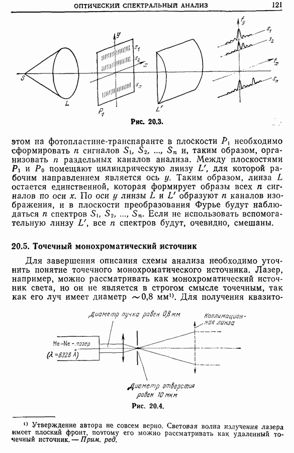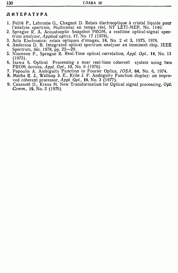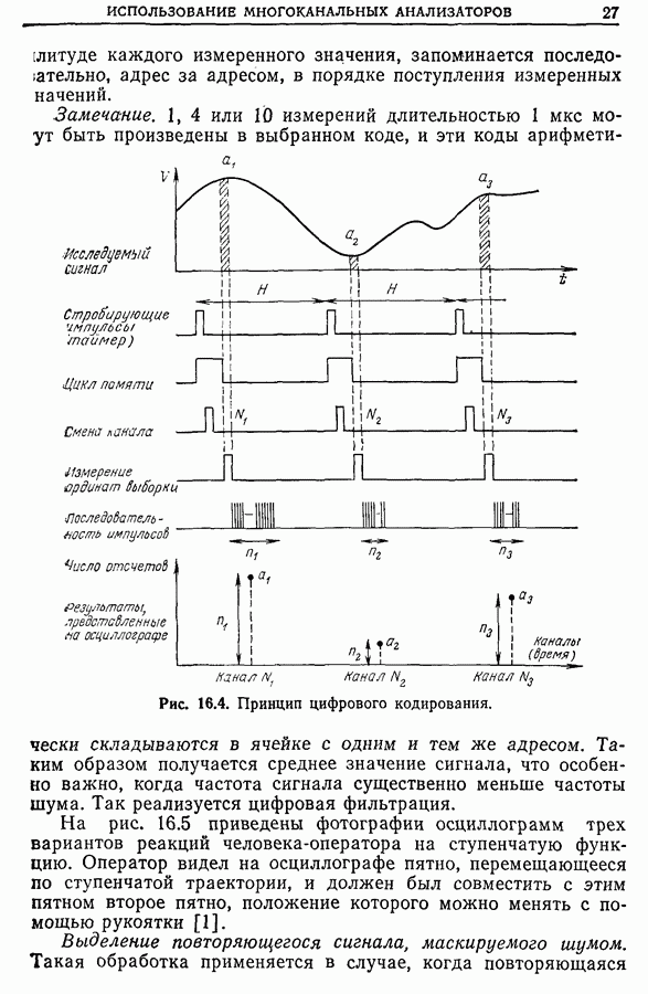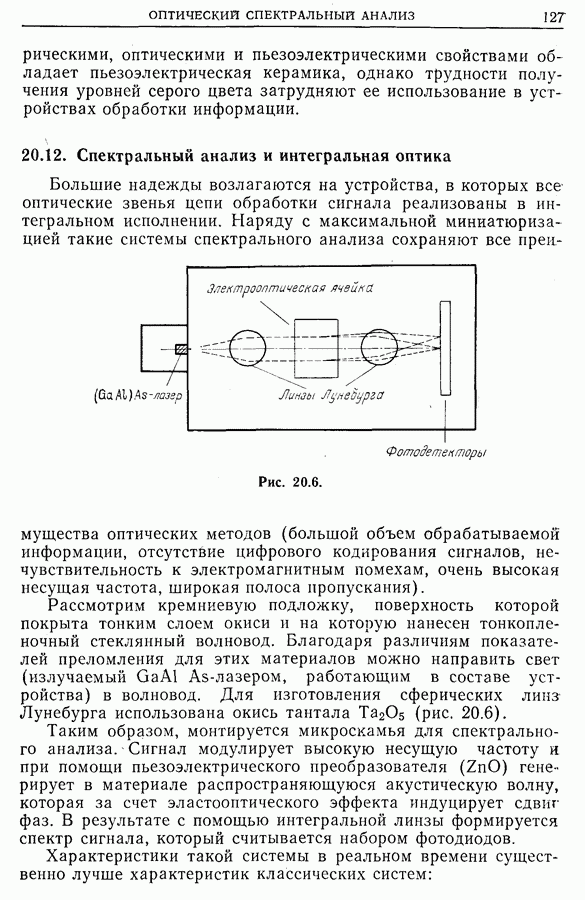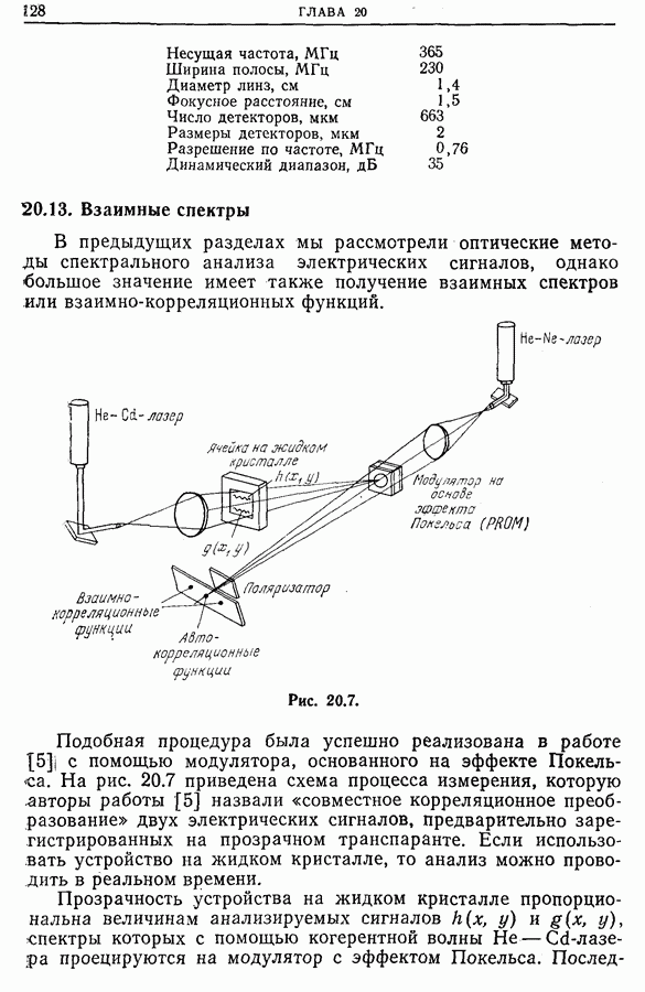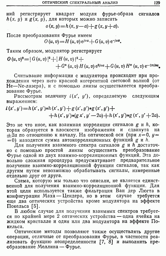Другое ограничение этих устройств состоит в том, что число уровней квантования невелико (4 бит). Однако модельные расчеты показывают, что такое кодирование оказывается достаточным, так как в противоположность цифровому спектральному анализу (дискретному преобразованию Фурье) оптический анализ осуществляет преобразование Фурье в аналоговом виде с отношением сигнал/шум, достаточным для регистрации. Кроме того, все что было сказано в гл. 10 о добавлении вспомогательных шумов при небольшом числе уровней квантования, может быть применено и здесь.