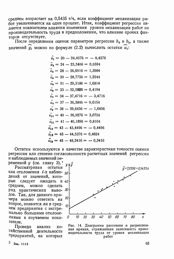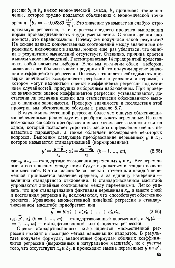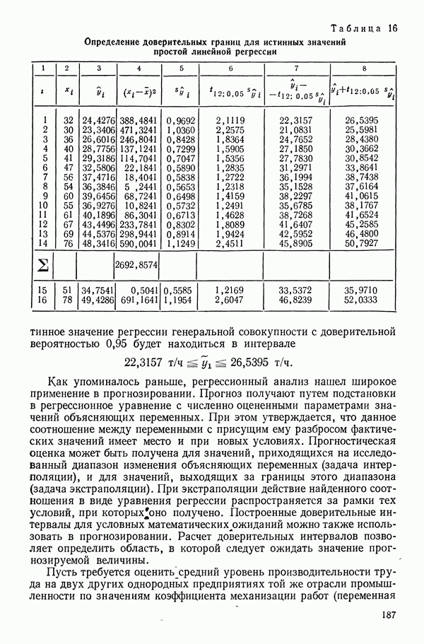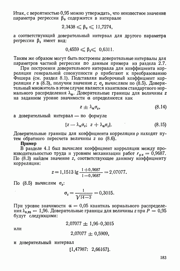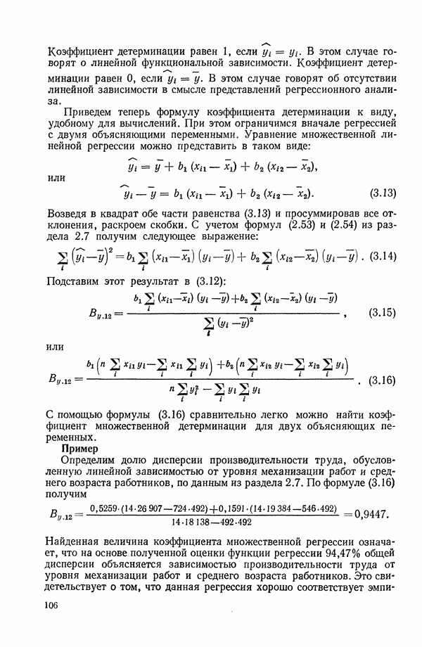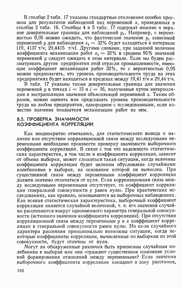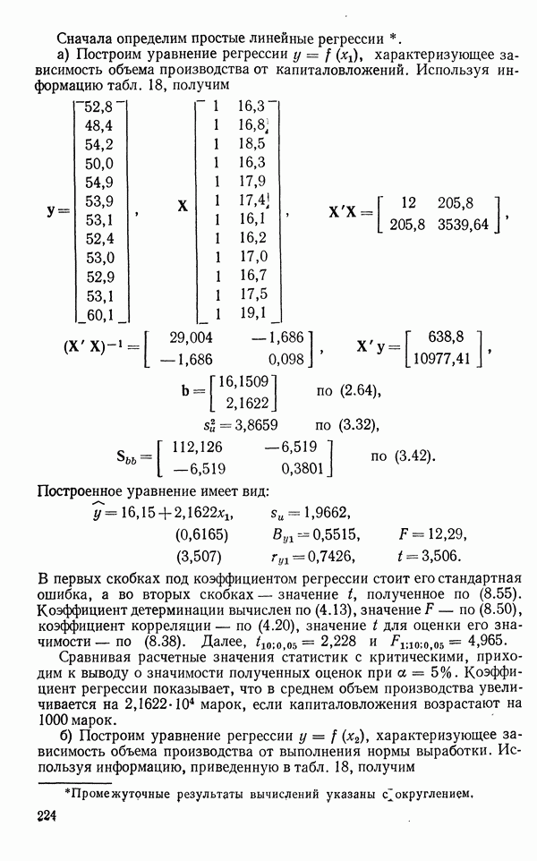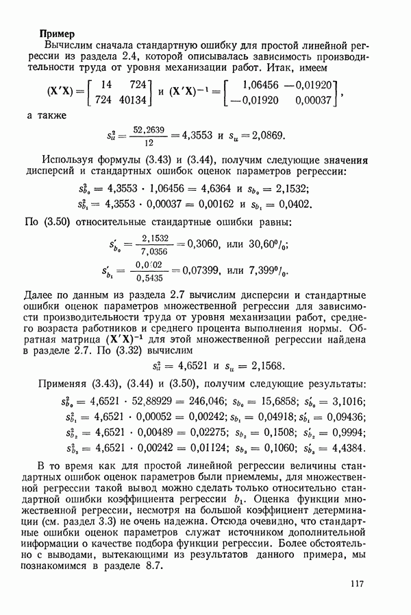 Выражение (8.57) также получается из (8.55) путем подстановки вместо Проверка гипотезы Пример В разделе 2.4 мы вычислили оценку коэффициента регрессии для зависимости производительности труда от уровня механизации работ по