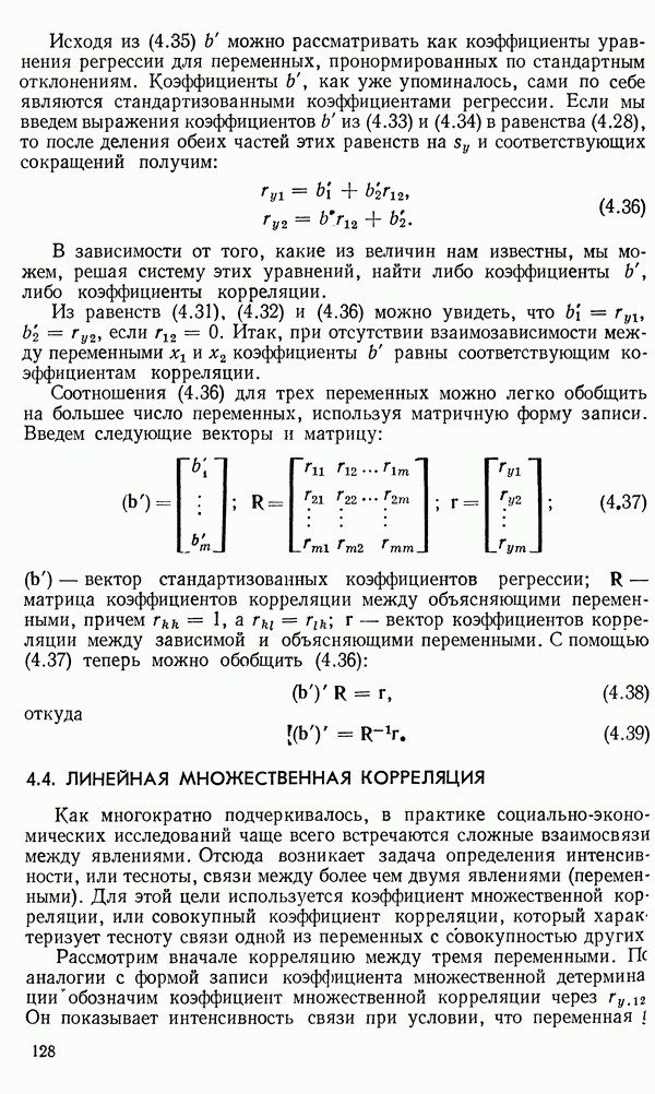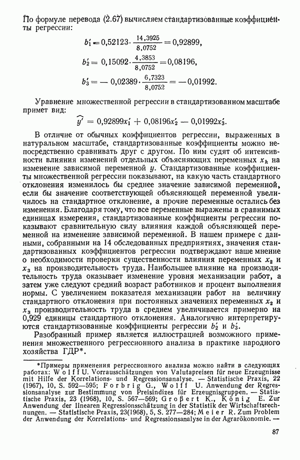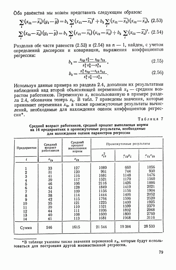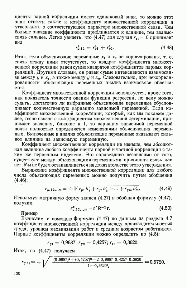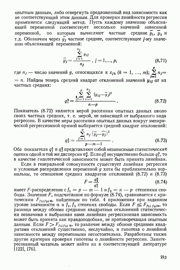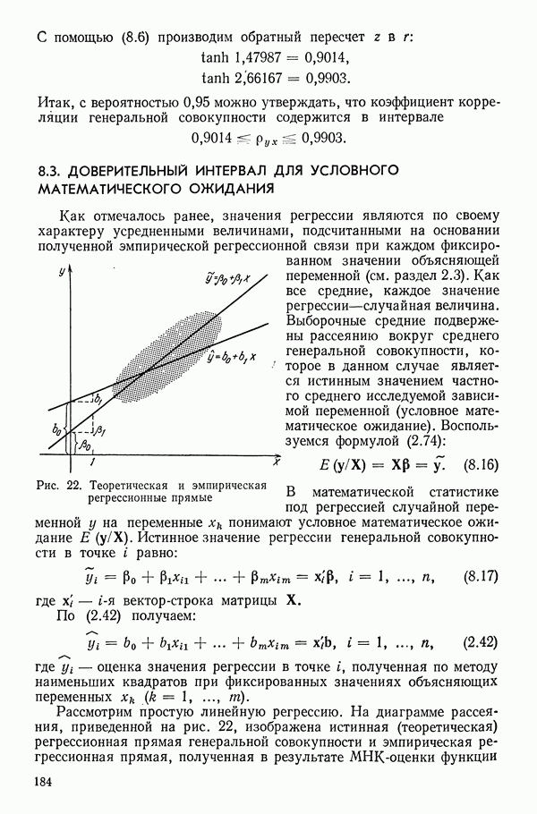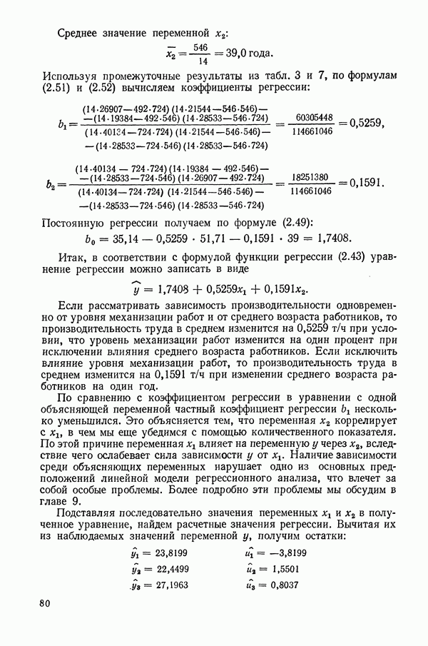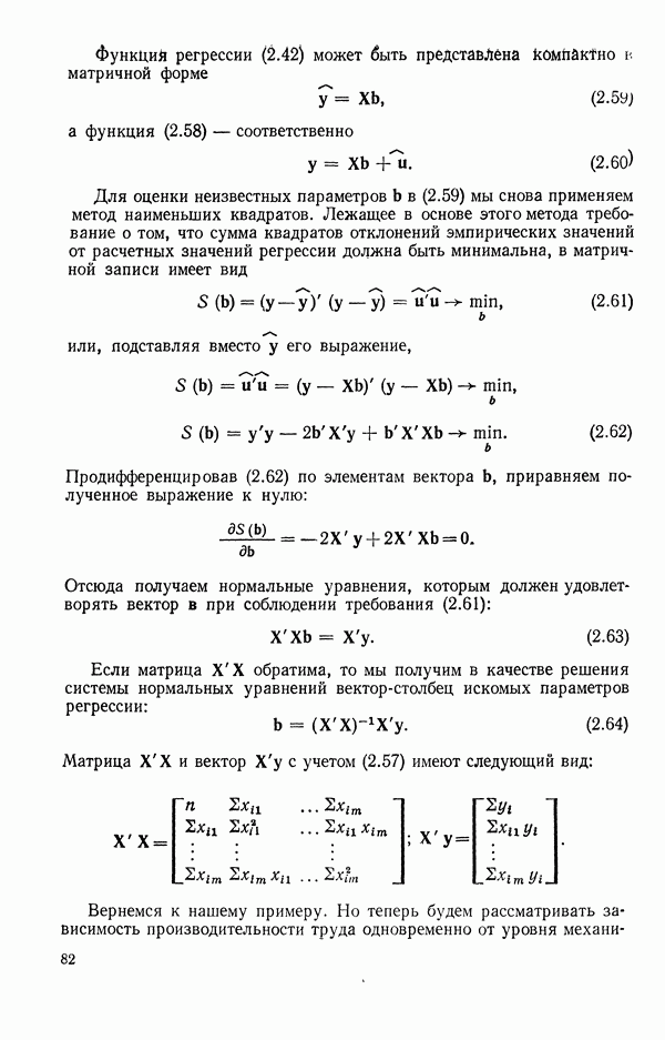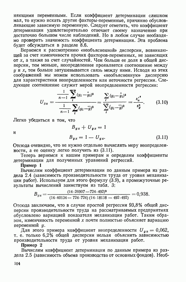 Выражение (8.57) также получается из (8.55) путем подстановки вместо Проверка гипотезы Пример В разделе 2.4 мы вычислили оценку коэффициента регрессии для зависимости производительности труда от уровня механизации работ по