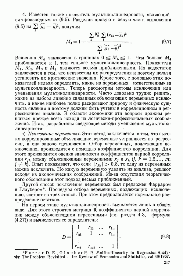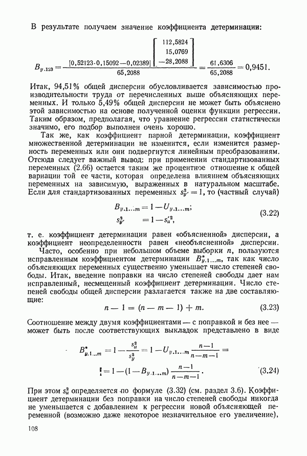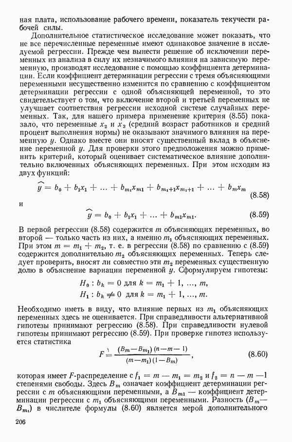 По таблице плата, использование рабочего времени, показатель текучести рабочей силы. Дополнительное статистическое исследование может показать, что не все перечисленные переменные имеют одинаковое значение в исследуемой регрессии. Прежде чем вынести решение об исключении переменных из анализа в силу их незначимого влияния на зависимую переменную, производят исследование с помощью коэффициента детерминации. Если коэффициент детерминации регрессии с тремя объясняющими переменными несущественно изменится по сравнению с коэффициентом детерминации регрессии с одной объясняющей переменной, то это свидетельствует о том, что включение второй и третьей переменных не улучшает соответствия регрессии исходной системе случайных переменных. Так, для нашего примера применение критерия (8.55) показало, что переменные
