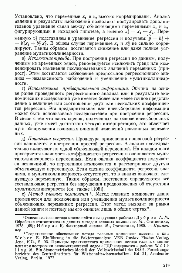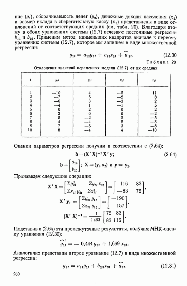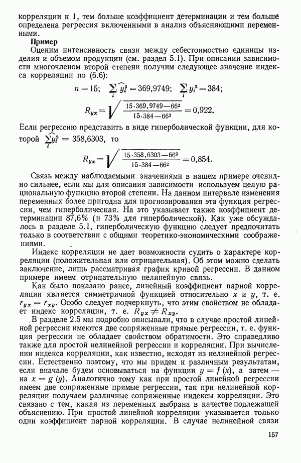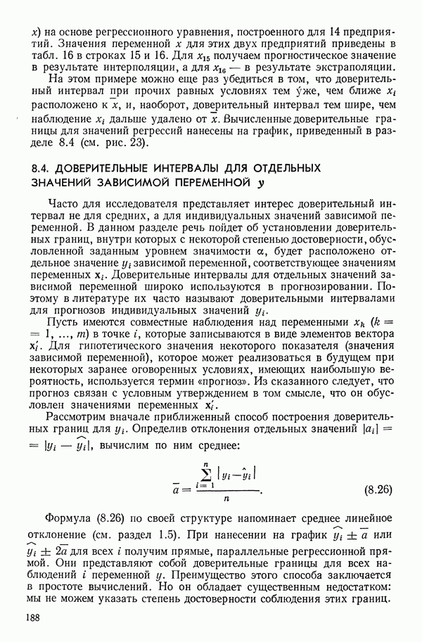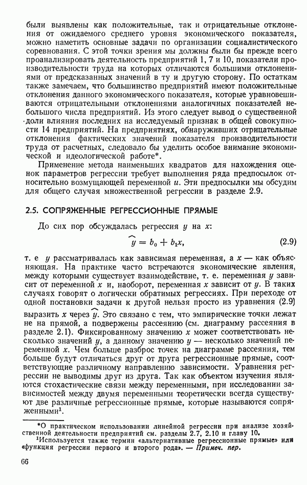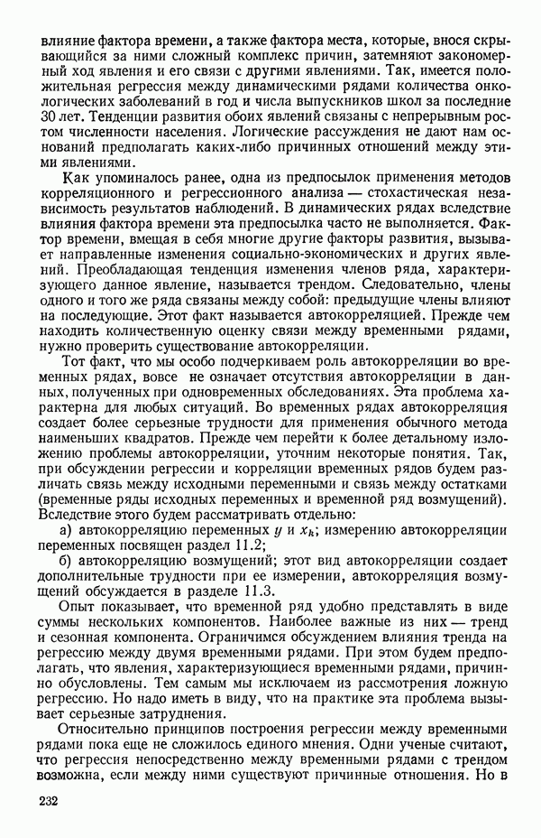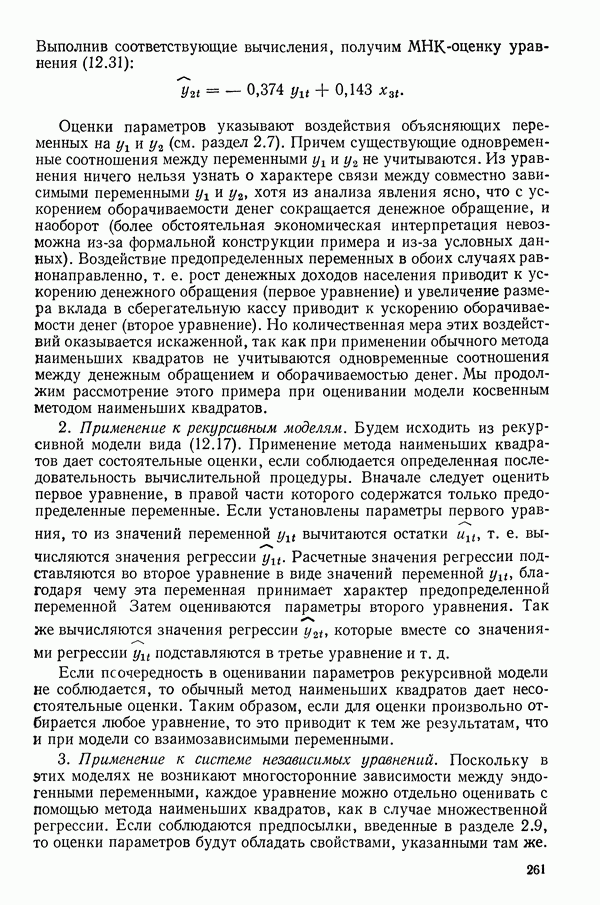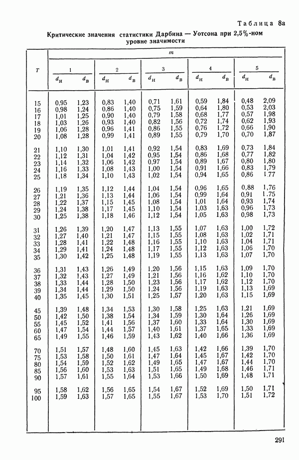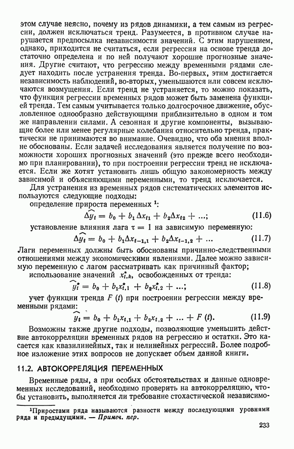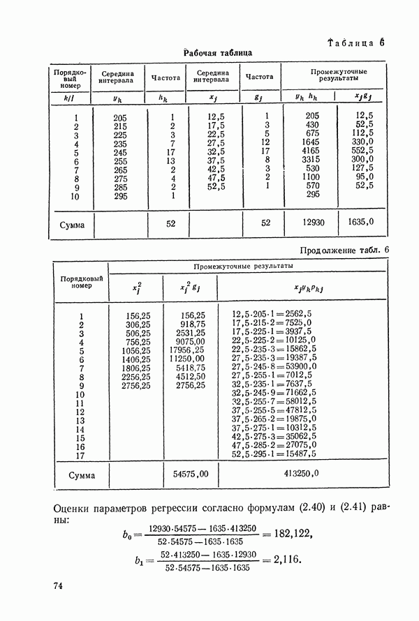 Так как Теперь подытожим результаты нашего исследования. Для обеих отраслей промышленности (генеральных совокупностей) может быть принята одинаковая усредненная зависимость производительности труда от уровня механизации работ. Но уравнения регрессии для обеих отраслей промышленности не идентичны в силу установленного статистического различия в свободных членах этих уравнений. По одной и той же регрессии нельзя оценить средний уровень производительности труда в обеих отраслях промышленности при заданных значениях коэффициента механизации работ. Кроме того, в разделе 8.5 было установлено, что теснота связи между исследуемыми переменными для обеих отраслей промышленности была различна. Аналогичная процедура может быть использована для определения структурных изменений во временных рядах. С этой целью исследуемый промежуток времени делят на два периода, для каждого из которых строят регрессионную зависимость. Затем с помощью приведенных выше критериев проверяется их идентичность. Если в результате проверки статистических гипотез подтверждается идентичность регрессий для обоих периодов, то приходят к выводу, что за исследуемый промежуток времени не произошло никаких нарушений, которые могли бы привести к структурным изменениям. Полученные уравнения регрессии принимаются характерными для исследуемого явления.