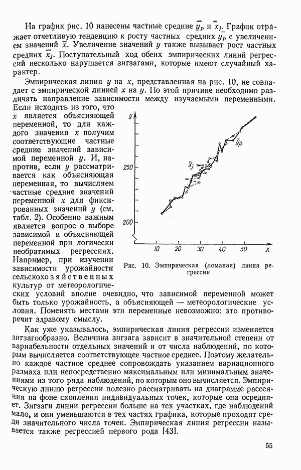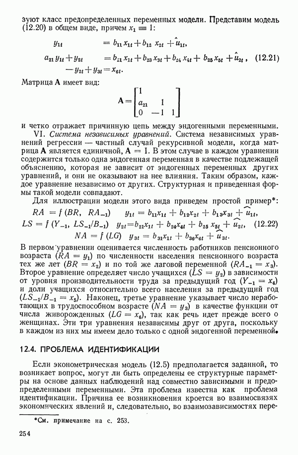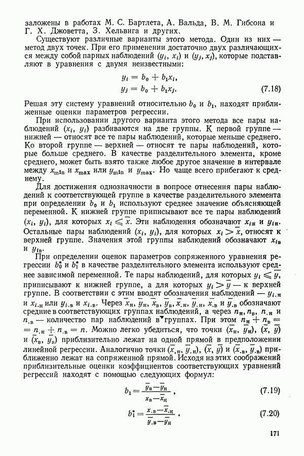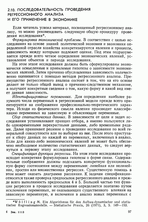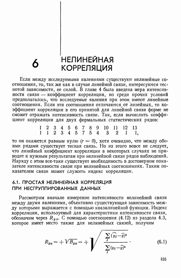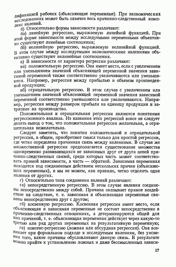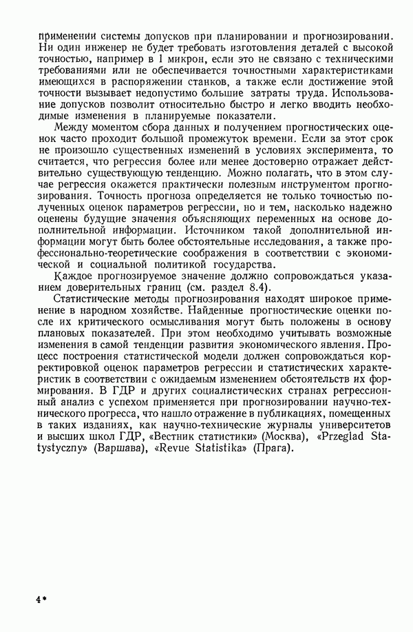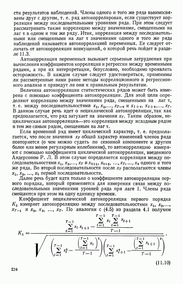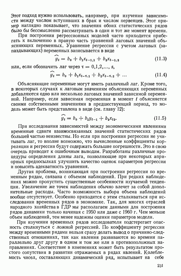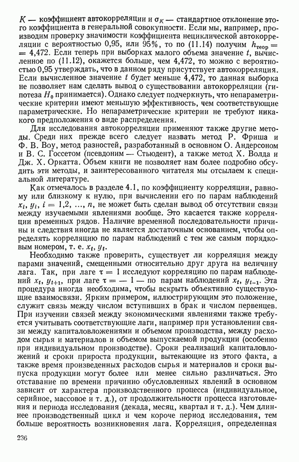 Так как Теперь подытожим результаты нашего исследования. Для обеих отраслей промышленности (генеральных совокупностей) может быть принята одинаковая усредненная зависимость производительности труда от уровня механизации работ. Но уравнения регрессии для обеих отраслей промышленности не идентичны в силу установленного статистического различия в свободных членах этих уравнений. По одной и той же регрессии нельзя оценить средний уровень производительности труда в обеих отраслях промышленности при заданных значениях коэффициента механизации работ. Кроме того, в разделе 8.5 было установлено, что теснота связи между исследуемыми переменными для обеих отраслей промышленности была различна. Аналогичная процедура может быть использована для определения структурных изменений во временных рядах. С этой целью исследуемый промежуток времени делят на два периода, для каждого из которых строят регрессионную зависимость. Затем с помощью приведенных выше критериев проверяется их идентичность. Если в результате проверки статистических гипотез подтверждается идентичность регрессий для обоих периодов, то приходят к выводу, что за исследуемый промежуток времени не произошло никаких нарушений, которые могли бы привести к структурным изменениям. Полученные уравнения регрессии принимаются характерными для исследуемого явления.