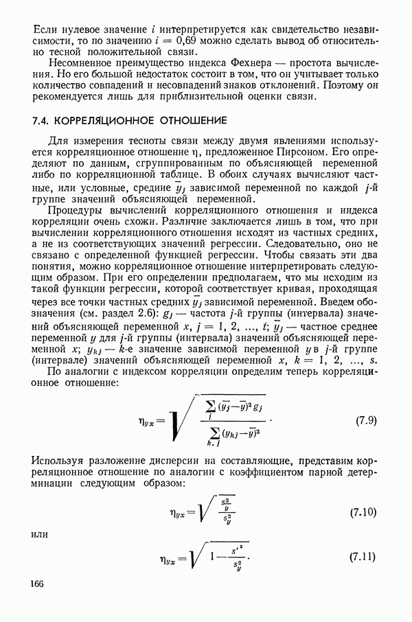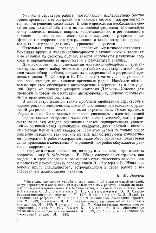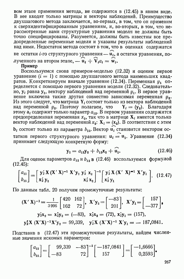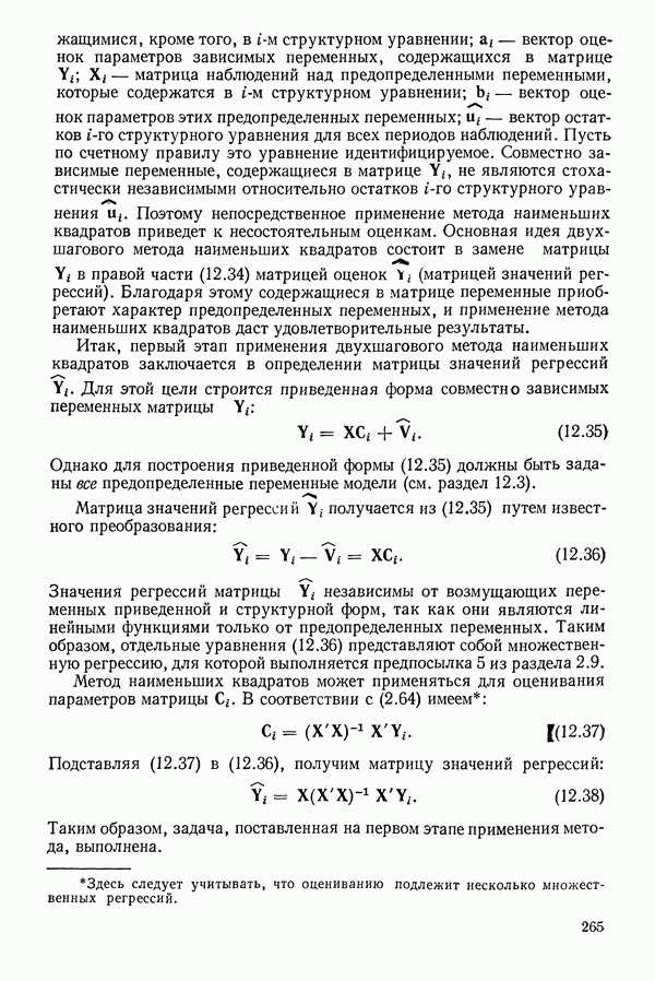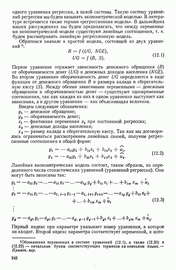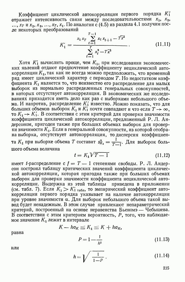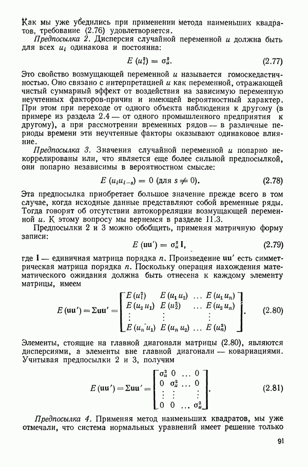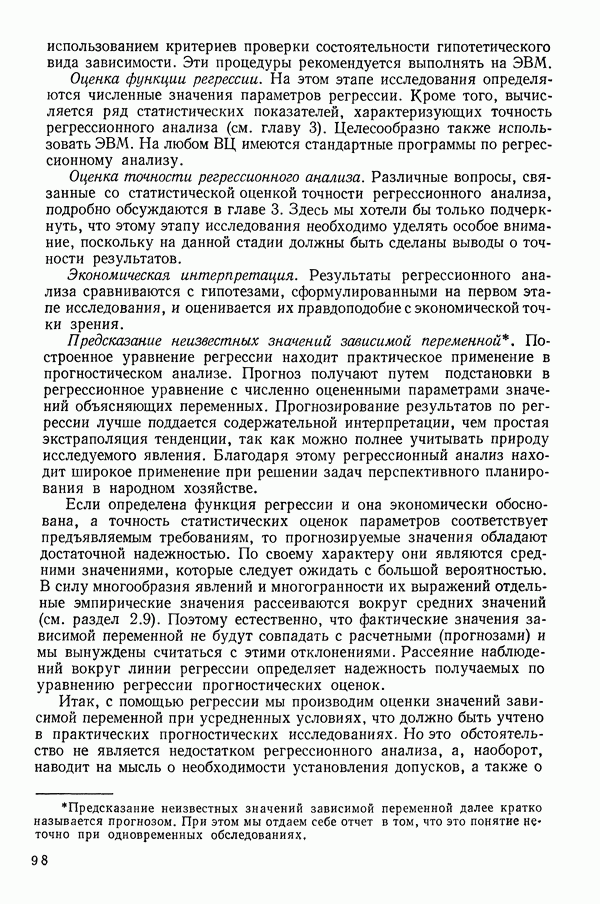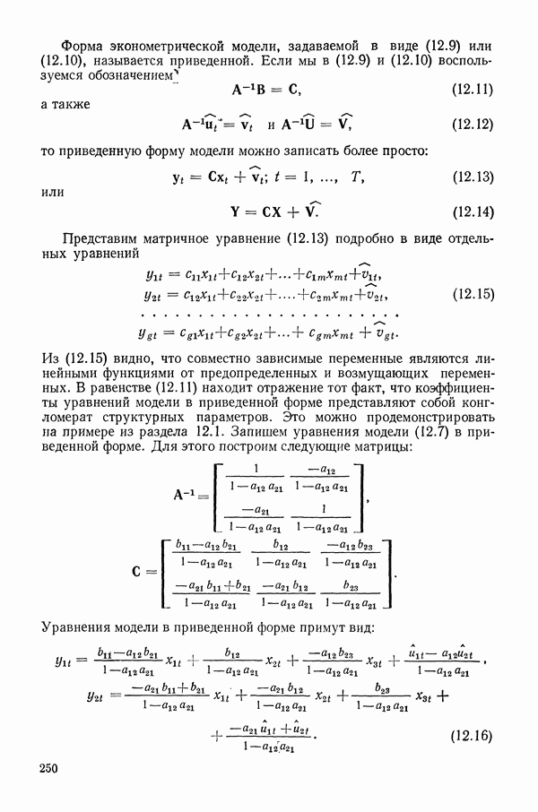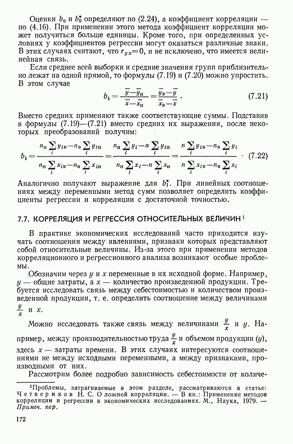 Так как Теперь подытожим результаты нашего исследования. Для обеих отраслей промышленности (генеральных совокупностей) может быть принята одинаковая усредненная зависимость производительности труда от уровня механизации работ. Но уравнения регрессии для обеих отраслей промышленности не идентичны в силу установленного статистического различия в свободных членах этих уравнений. По одной и той же регрессии нельзя оценить средний уровень производительности труда в обеих отраслях промышленности при заданных значениях коэффициента механизации работ. Кроме того, в разделе 8.5 было установлено, что теснота связи между исследуемыми переменными для обеих отраслей промышленности была различна. Аналогичная процедура может быть использована для определения структурных изменений во временных рядах. С этой целью исследуемый промежуток времени делят на два периода, для каждого из которых строят регрессионную зависимость. Затем с помощью приведенных выше критериев проверяется их идентичность. Если в результате проверки статистических гипотез подтверждается идентичность регрессий для обоих периодов, то приходят к выводу, что за исследуемый промежуток времени не произошло никаких нарушений, которые могли бы привести к структурным изменениям. Полученные уравнения регрессии принимаются характерными для исследуемого явления.