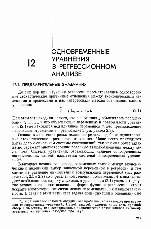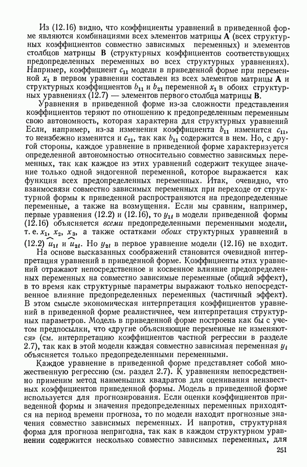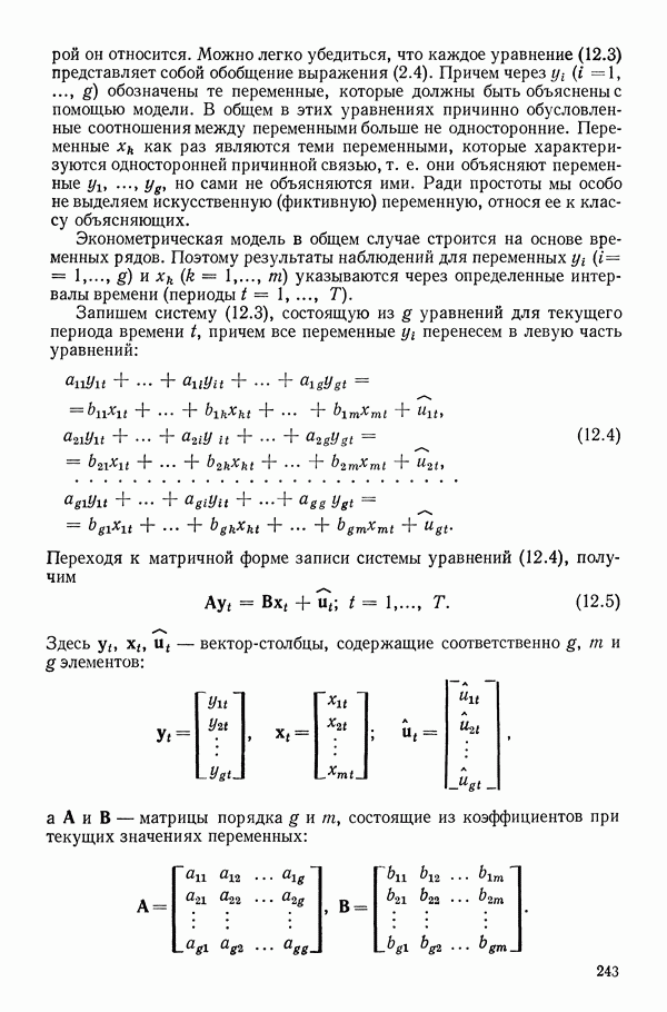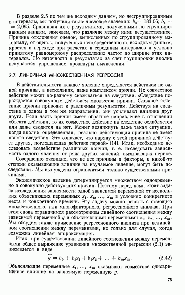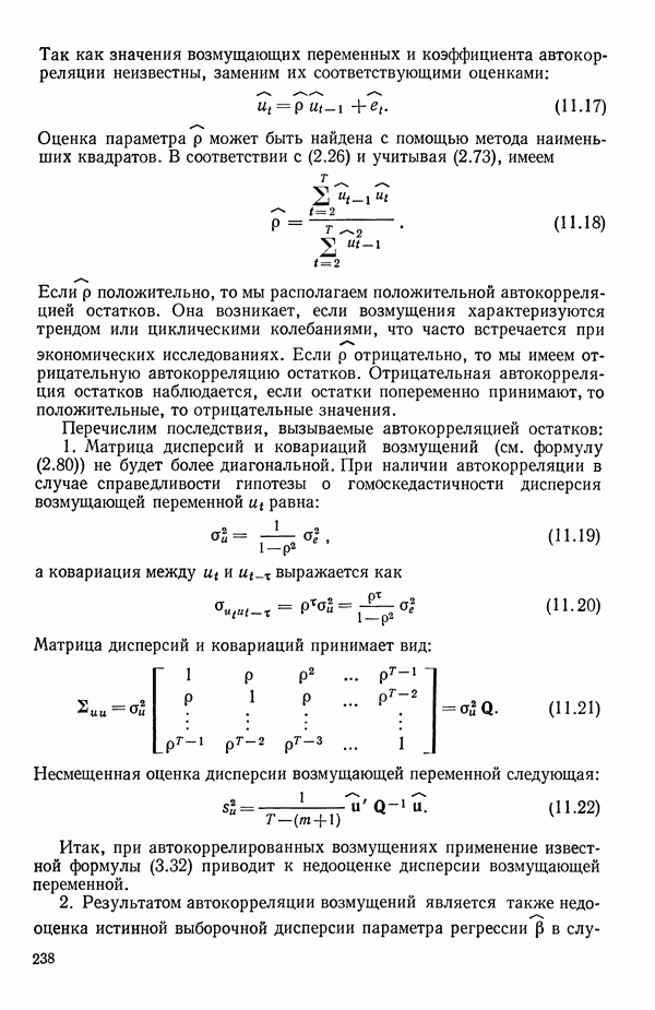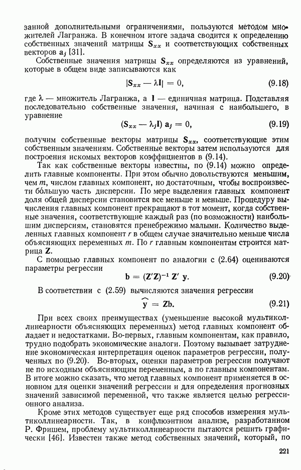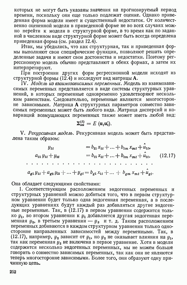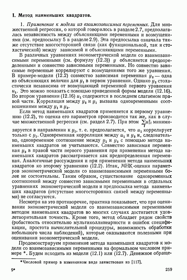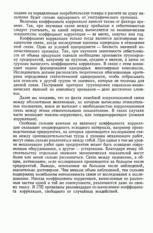 Так как Теперь подытожим результаты нашего исследования. Для обеих отраслей промышленности (генеральных совокупностей) может быть принята одинаковая усредненная зависимость производительности труда от уровня механизации работ. Но уравнения регрессии для обеих отраслей промышленности не идентичны в силу установленного статистического различия в свободных членах этих уравнений. По одной и той же регрессии нельзя оценить средний уровень производительности труда в обеих отраслях промышленности при заданных значениях коэффициента механизации работ. Кроме того, в разделе 8.5 было установлено, что теснота связи между исследуемыми переменными для обеих отраслей промышленности была различна. Аналогичная процедура может быть использована для определения структурных изменений во временных рядах. С этой целью исследуемый промежуток времени делят на два периода, для каждого из которых строят регрессионную зависимость. Затем с помощью приведенных выше критериев проверяется их идентичность. Если в результате проверки статистических гипотез подтверждается идентичность регрессий для обоих периодов, то приходят к выводу, что за исследуемый промежуток времени не произошло никаких нарушений, которые могли бы привести к структурным изменениям. Полученные уравнения регрессии принимаются характерными для исследуемого явления.
