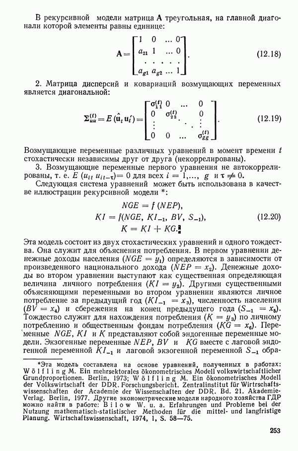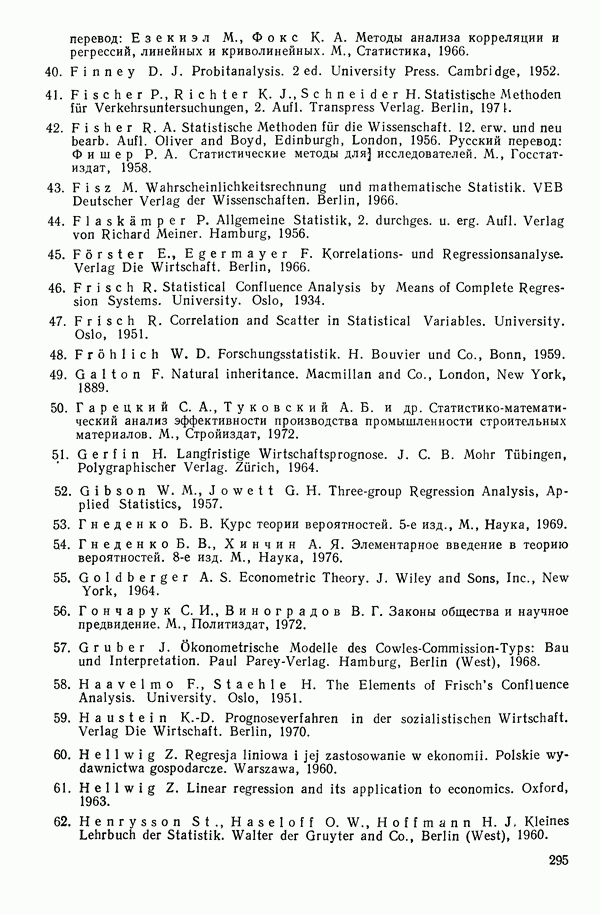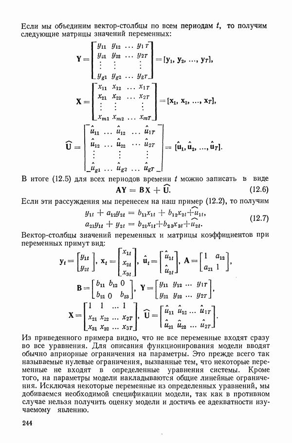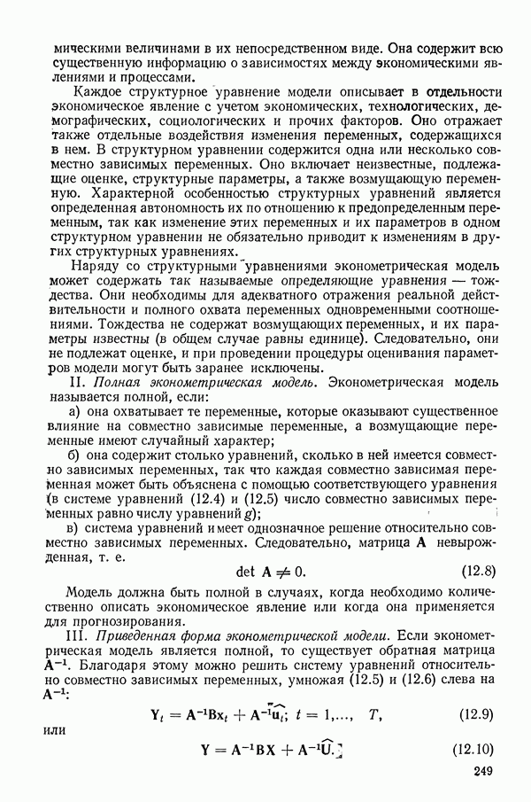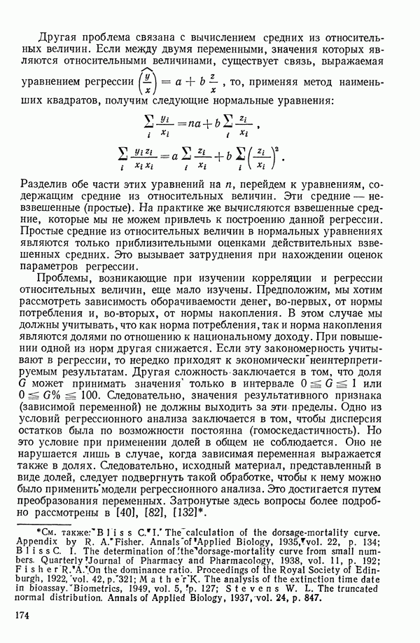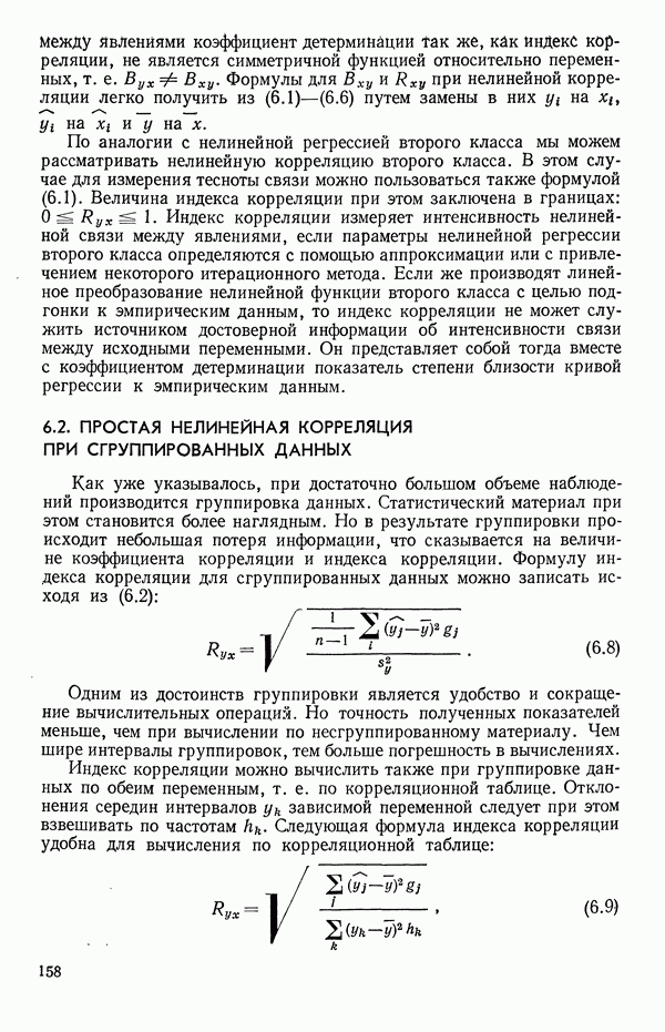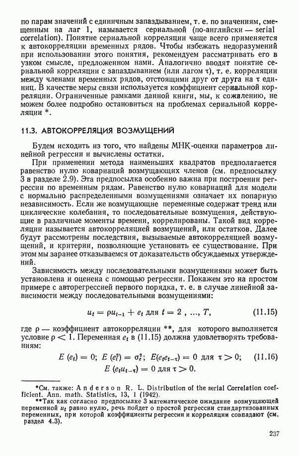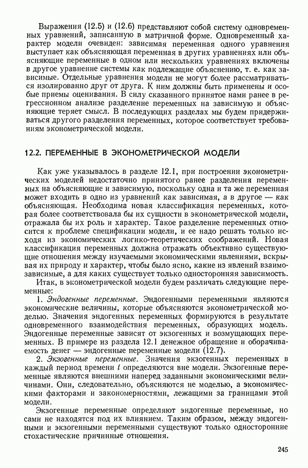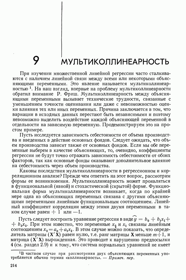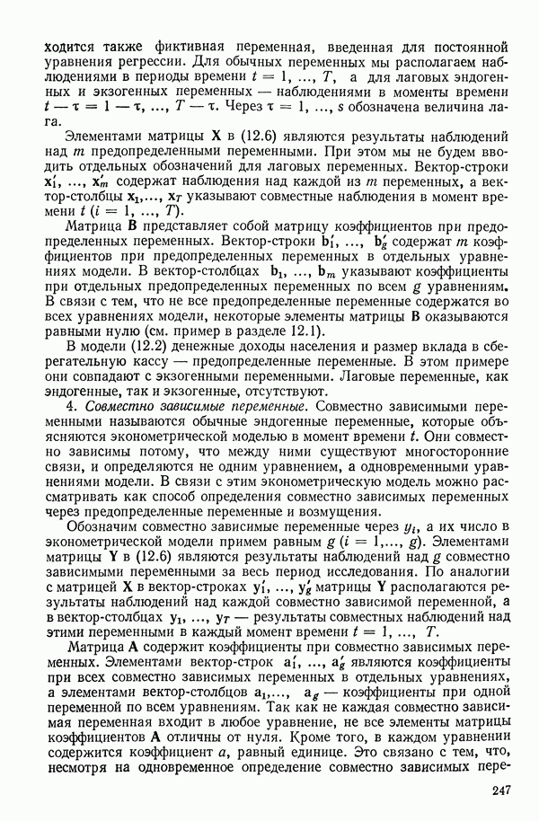 Так как Теперь подытожим результаты нашего исследования. Для обеих отраслей промышленности (генеральных совокупностей) может быть принята одинаковая усредненная зависимость производительности труда от уровня механизации работ. Но уравнения регрессии для обеих отраслей промышленности не идентичны в силу установленного статистического различия в свободных членах этих уравнений. По одной и той же регрессии нельзя оценить средний уровень производительности труда в обеих отраслях промышленности при заданных значениях коэффициента механизации работ. Кроме того, в разделе 8.5 было установлено, что теснота связи между исследуемыми переменными для обеих отраслей промышленности была различна. Аналогичная процедура может быть использована для определения структурных изменений во временных рядах. С этой целью исследуемый промежуток времени делят на два периода, для каждого из которых строят регрессионную зависимость. Затем с помощью приведенных выше критериев проверяется их идентичность. Если в результате проверки статистических гипотез подтверждается идентичность регрессий для обоих периодов, то приходят к выводу, что за исследуемый промежуток времени не произошло никаких нарушений, которые могли бы привести к структурным изменениям. Полученные уравнения регрессии принимаются характерными для исследуемого явления.