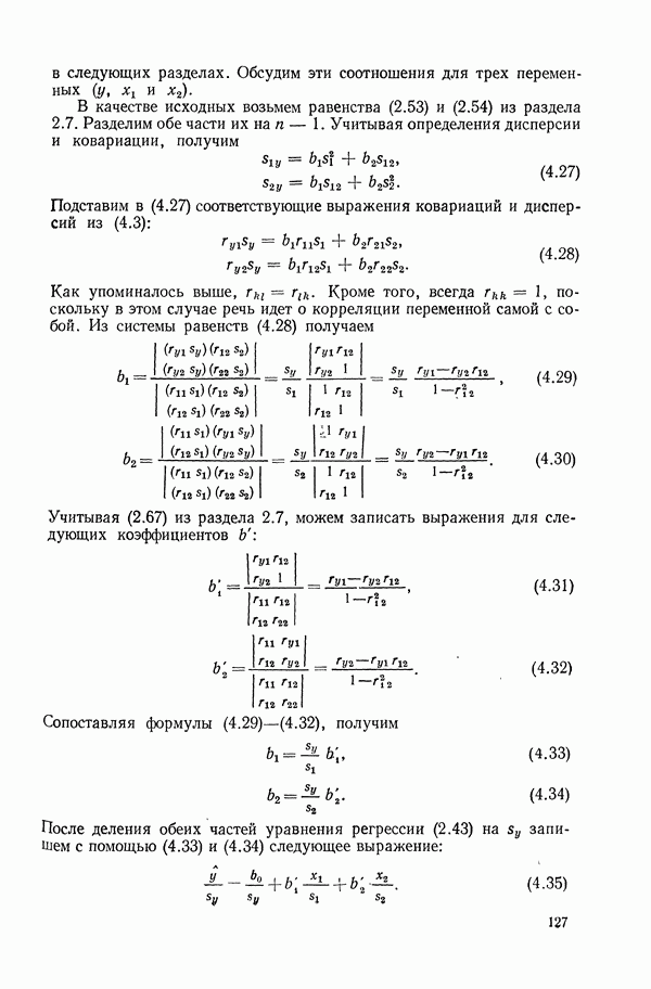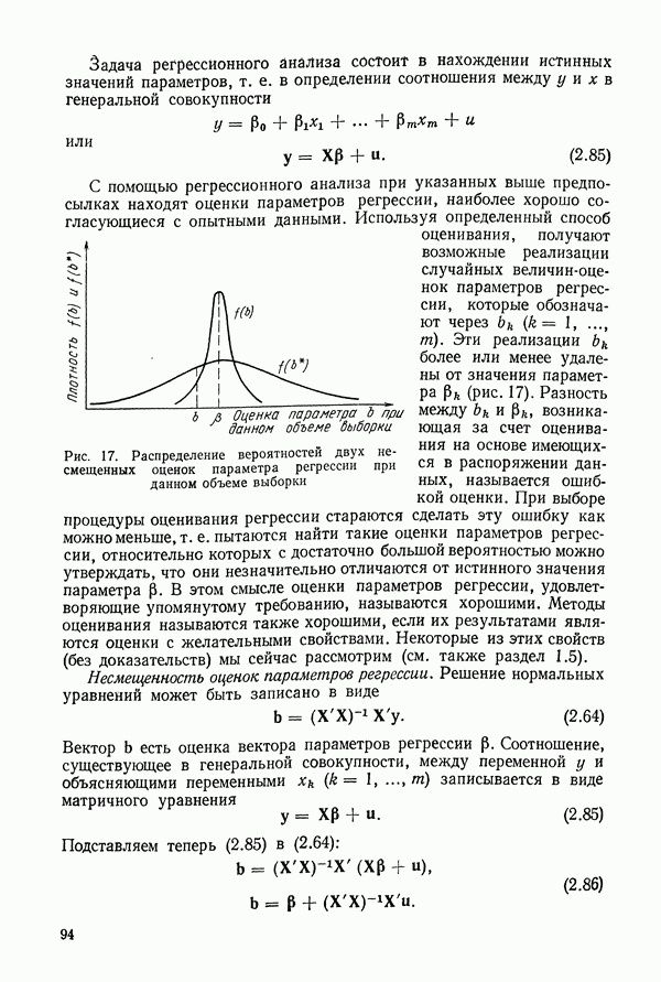 По таблице На примере простой линейной регрессии продемонстрируем сравнение оценок параметров регрессии двух функций. Используемый при этом критерий можно обобщить на коэффициенты частной регрессии и более чем на две функции. При этом исходим из следующих предположений: в обеих генеральных совокупностях исследуется содержательно одинаковая зависимость переменной у от переменной пары наблюдений по результатам каждой выборки строится простая линейная регрессия и находится дисперсия остатков: