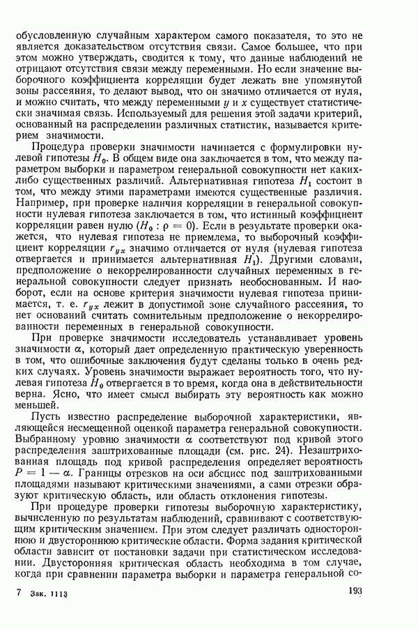 Ф 0, т. е. переменная При данной альтернативной гипотезе используется двусторонняя критическая область. Альтернативная гипотеза может быть также сформулирована следующим образом: В то время как при двусторонней критической области не требуется никакой информации о направлении зависимости у от При проверке гипотезы