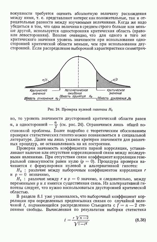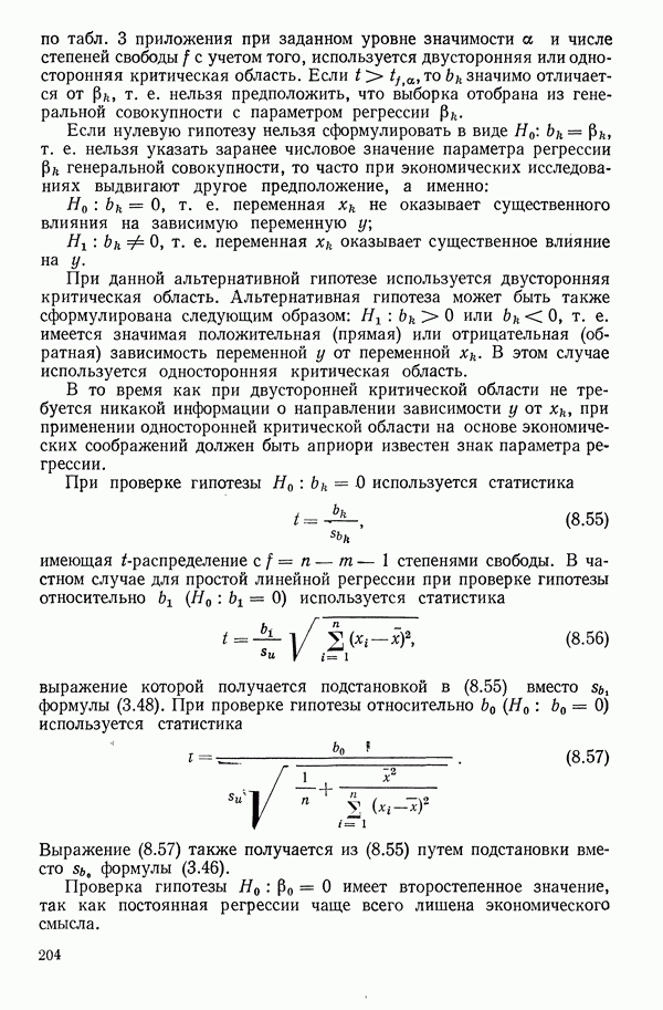 При данной альтернативной гипотезе используется двусторонняя критическая область. Альтернативная гипотеза может быть сформулирована также следующим образом: В разделе 8.1 обсуждались предпосылки, при которых оценки параметров имеют