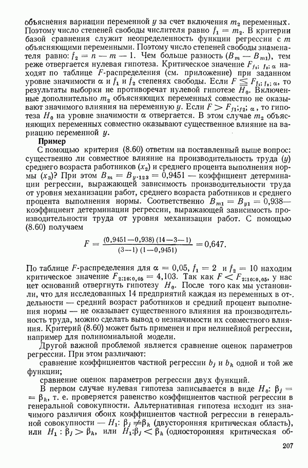 которая имеет объяснения вариации переменной у за счет включения Пример С помощью критерия (8.60) ответим на поставленный выше вопрос: существенно ли совместное влияние на производительность труда