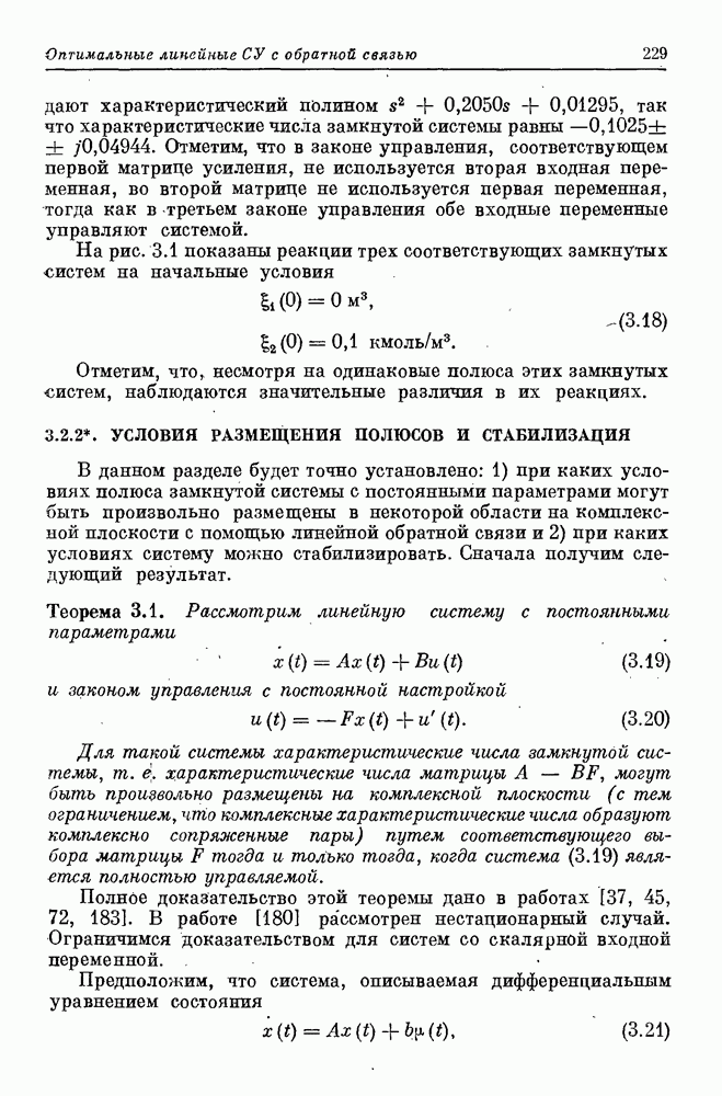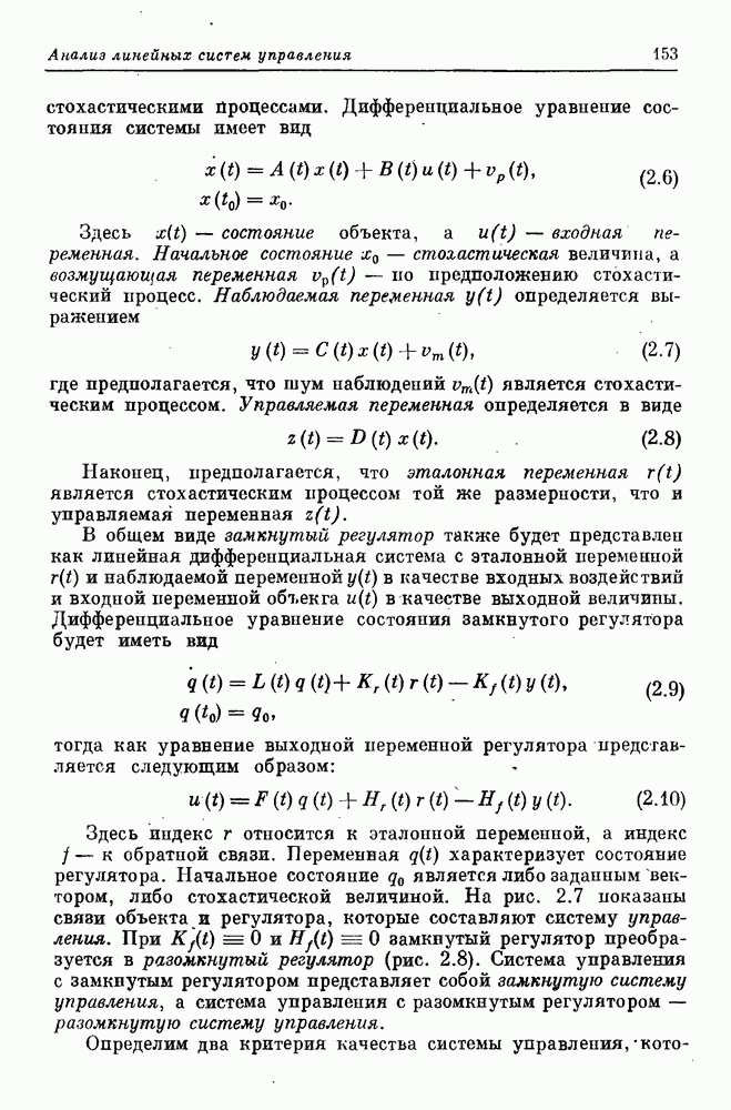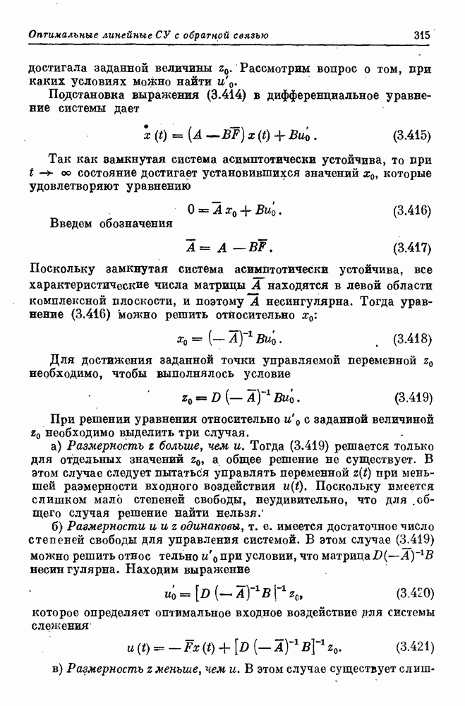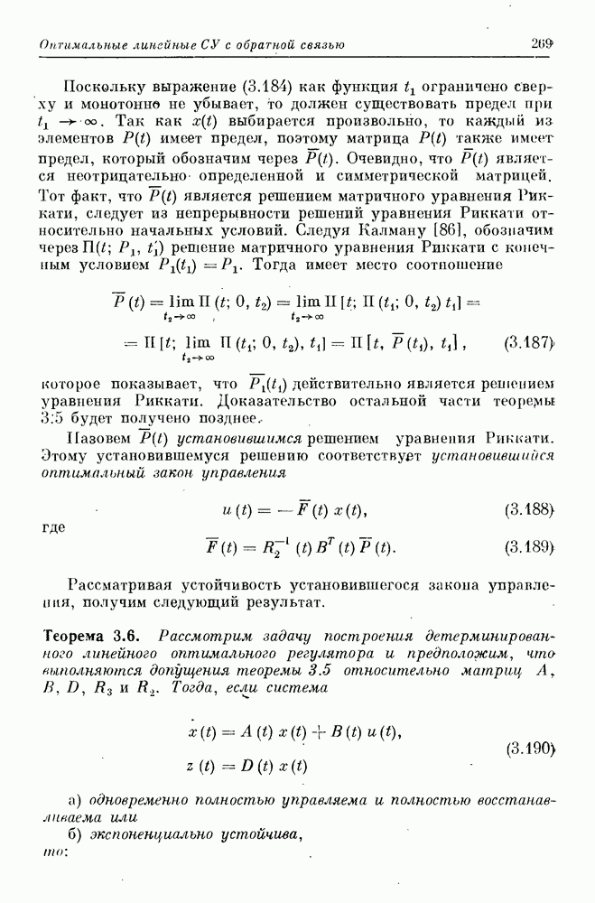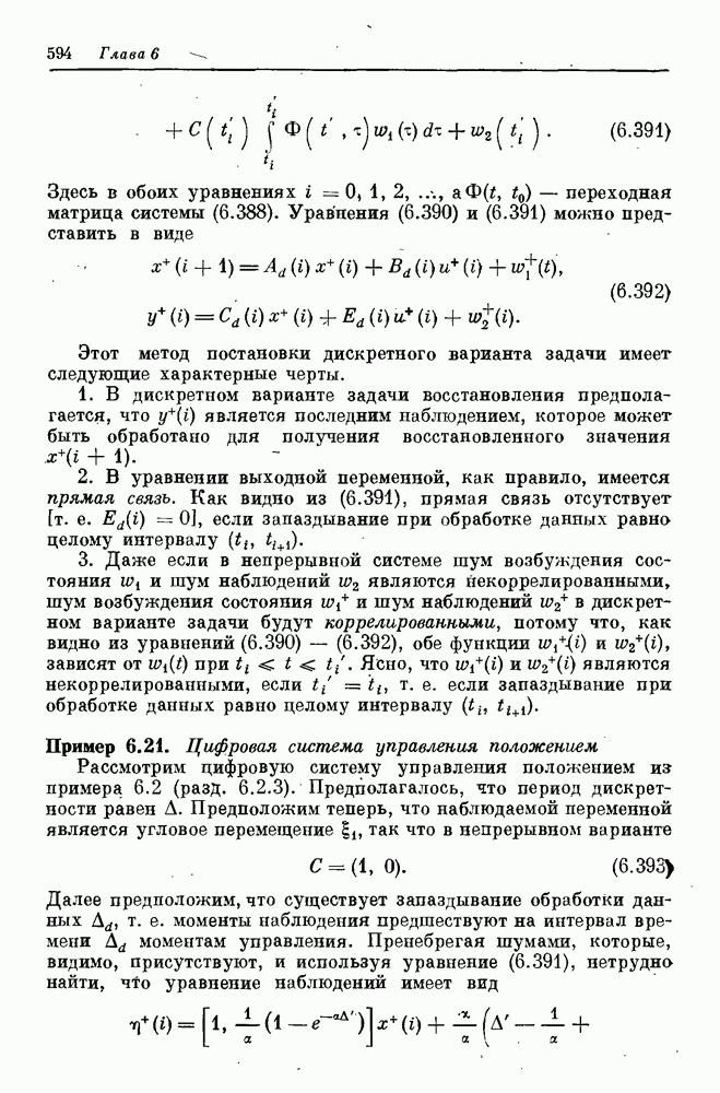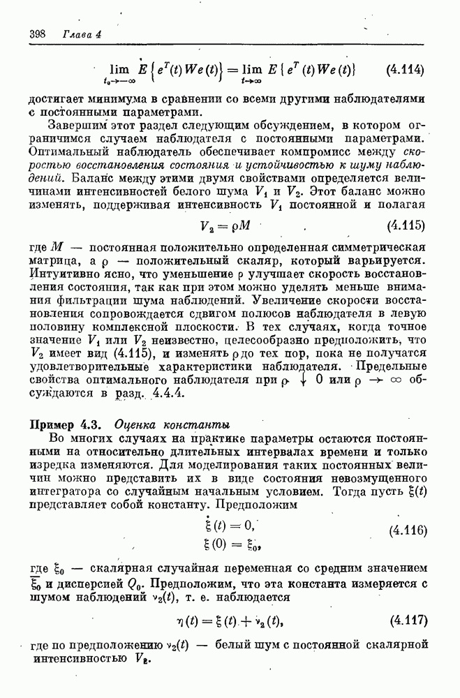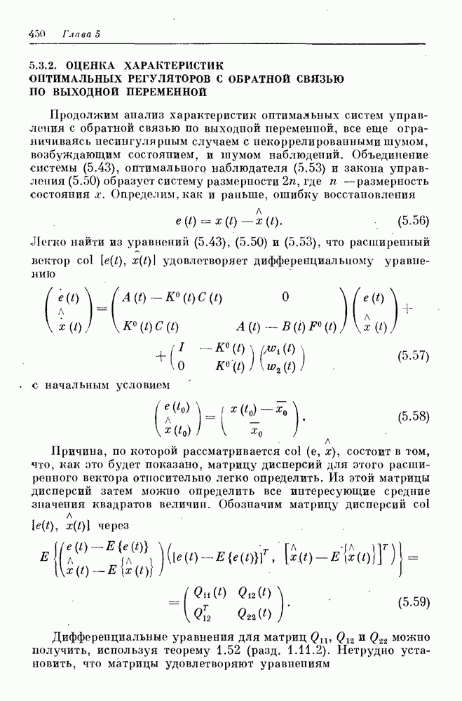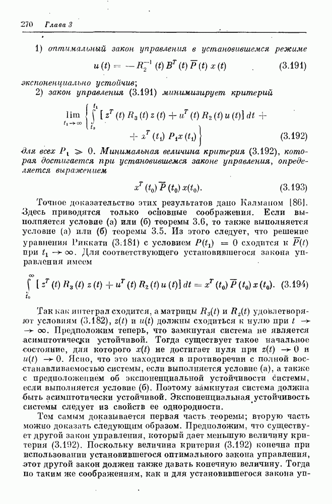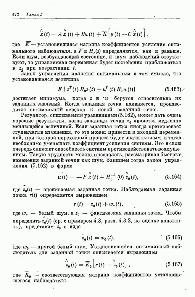 по будущим значениям выходной переменной. В задачах управления и фильтрации, однако, имеются обычно только прошлые значения выходной переменной. Поэтому более естественно рассматривать восстанавливаемость, которая ставит задачу определения настоящего состояния по прошлым наблюдениям. Нетрудно обнаружить, что для систем с постоянными параметрами из полной посстанавливаемости следует полная наблюдаемость и наоборот.