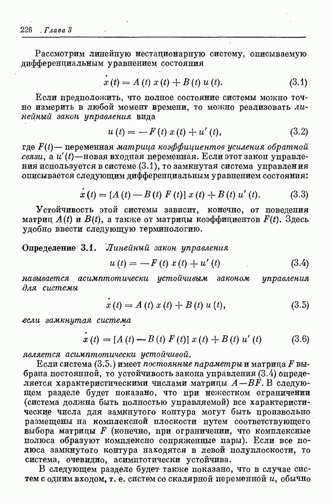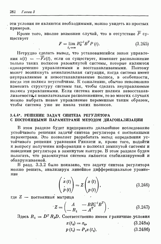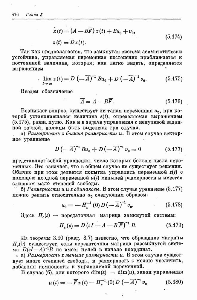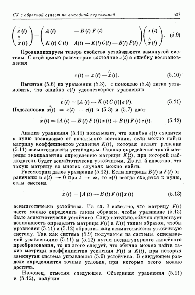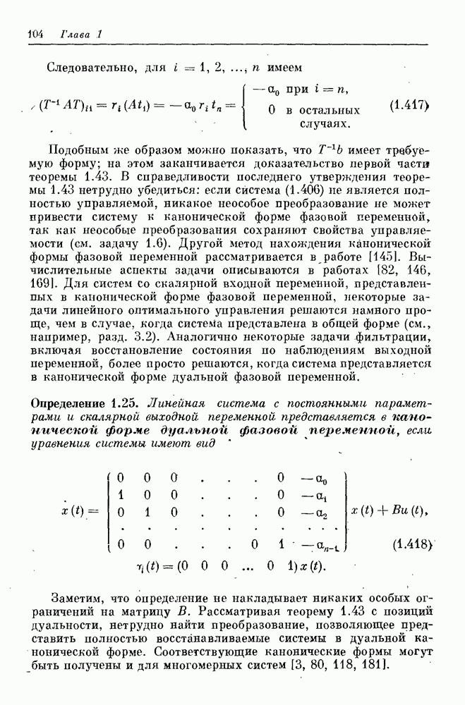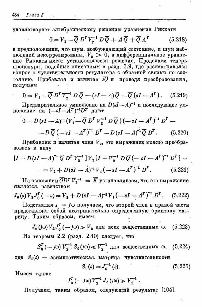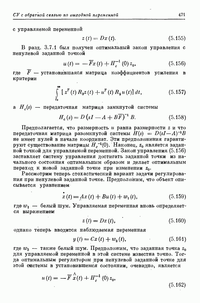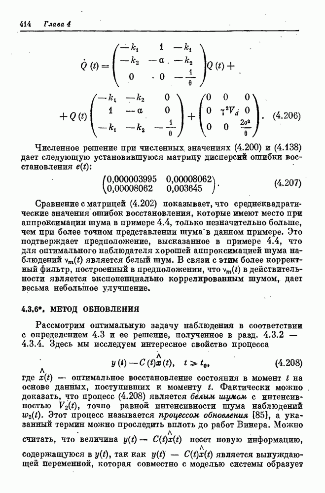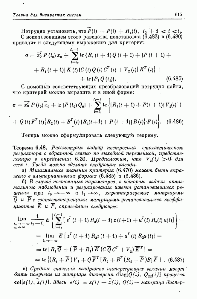 по будущим значениям выходной переменной. В задачах управления и фильтрации, однако, имеются обычно только прошлые значения выходной переменной. Поэтому более естественно рассматривать восстанавливаемость, которая ставит задачу определения настоящего состояния по прошлым наблюдениям. Нетрудно обнаружить, что для систем с постоянными параметрами из полной посстанавливаемости следует полная наблюдаемость и наоборот.