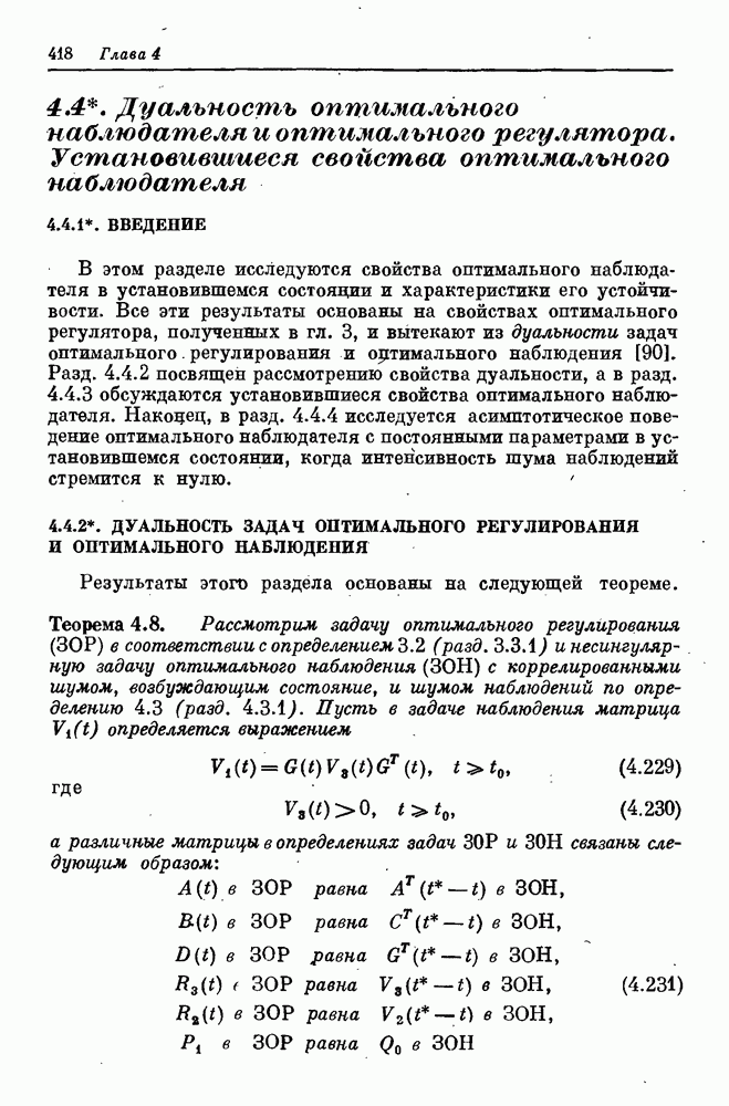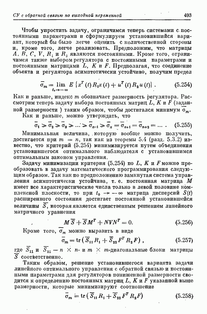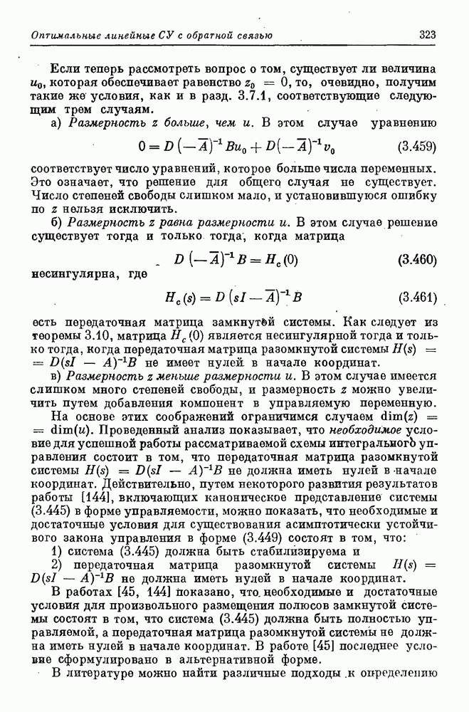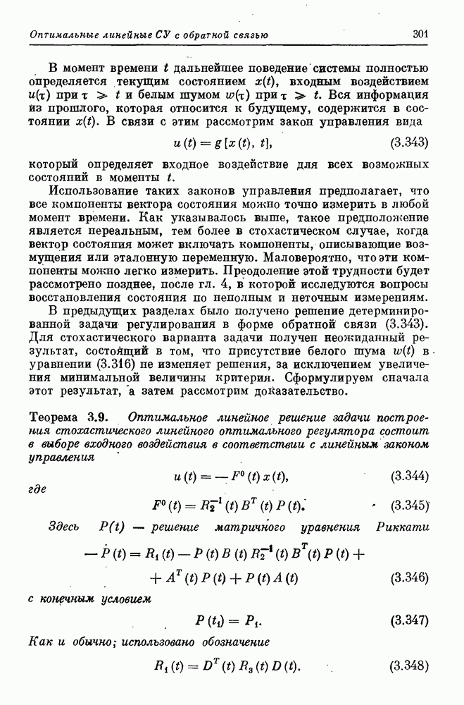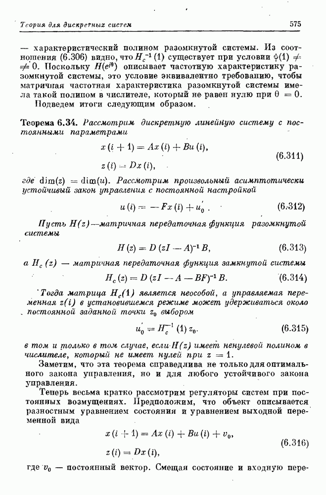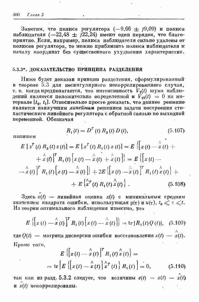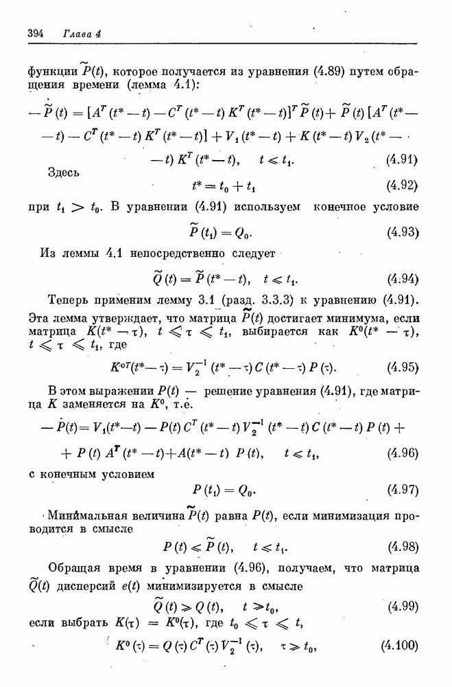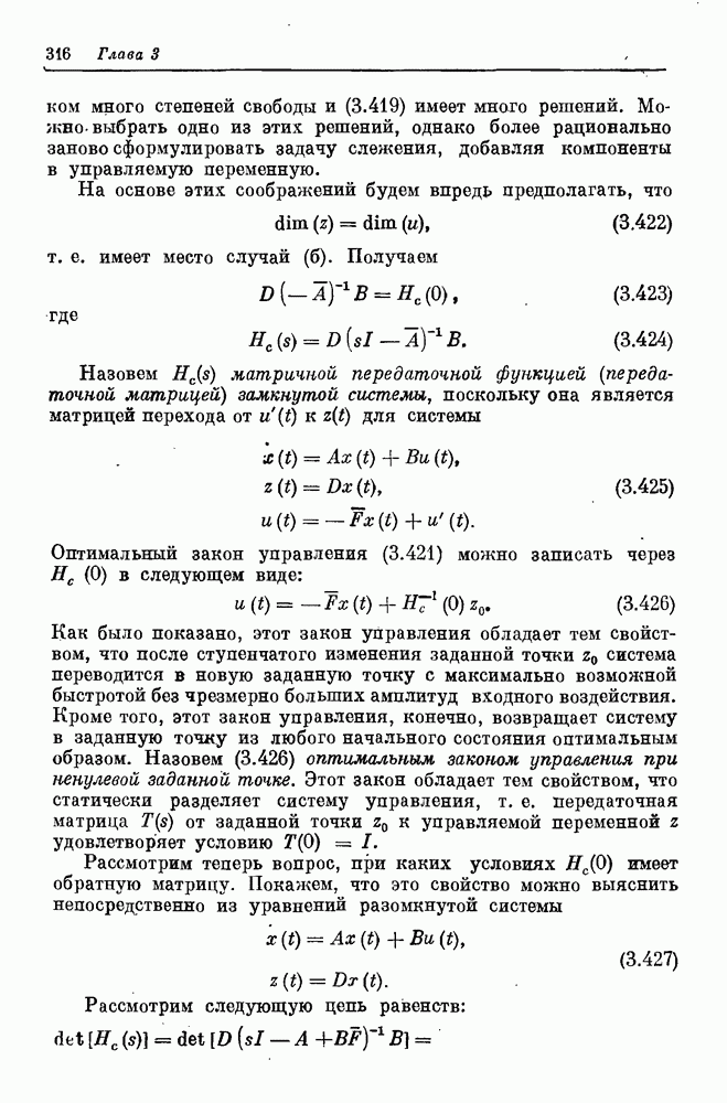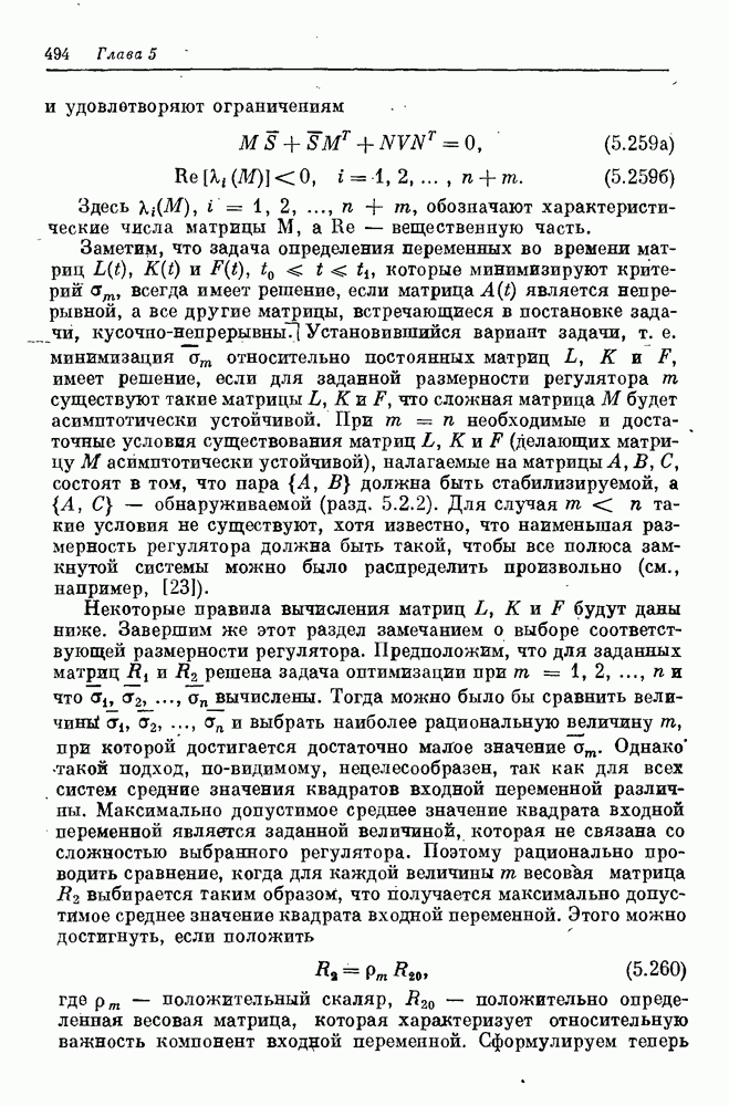 по будущим значениям выходной переменной. В задачах управления и фильтрации, однако, имеются обычно только прошлые значения выходной переменной. Поэтому более естественно рассматривать восстанавливаемость, которая ставит задачу определения настоящего состояния по прошлым наблюдениям. Нетрудно обнаружить, что для систем с постоянными параметрами из полной посстанавливаемости следует полная наблюдаемость и наоборот.
