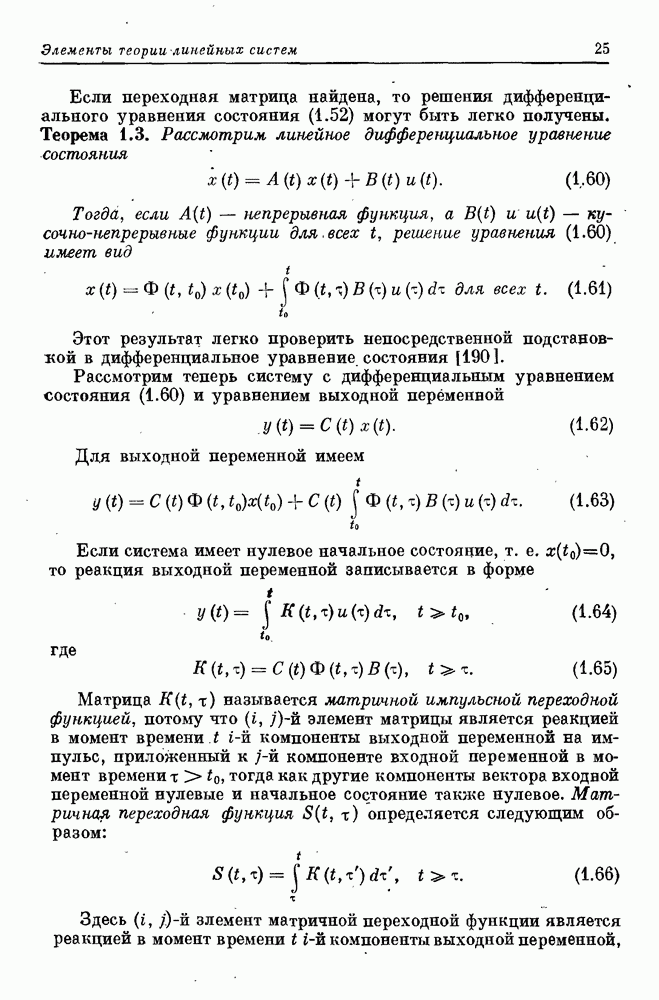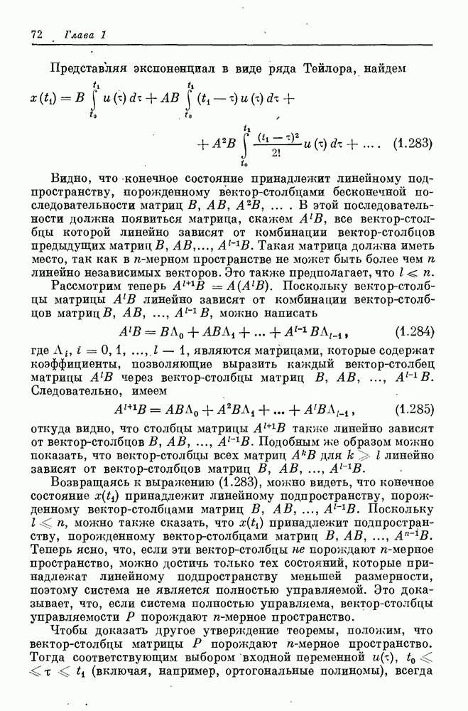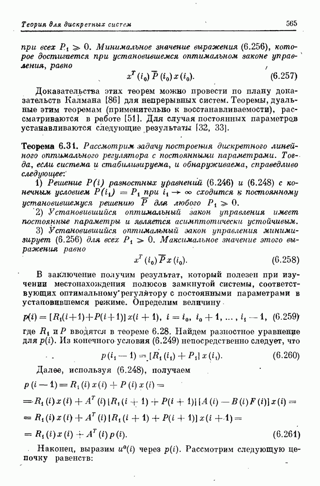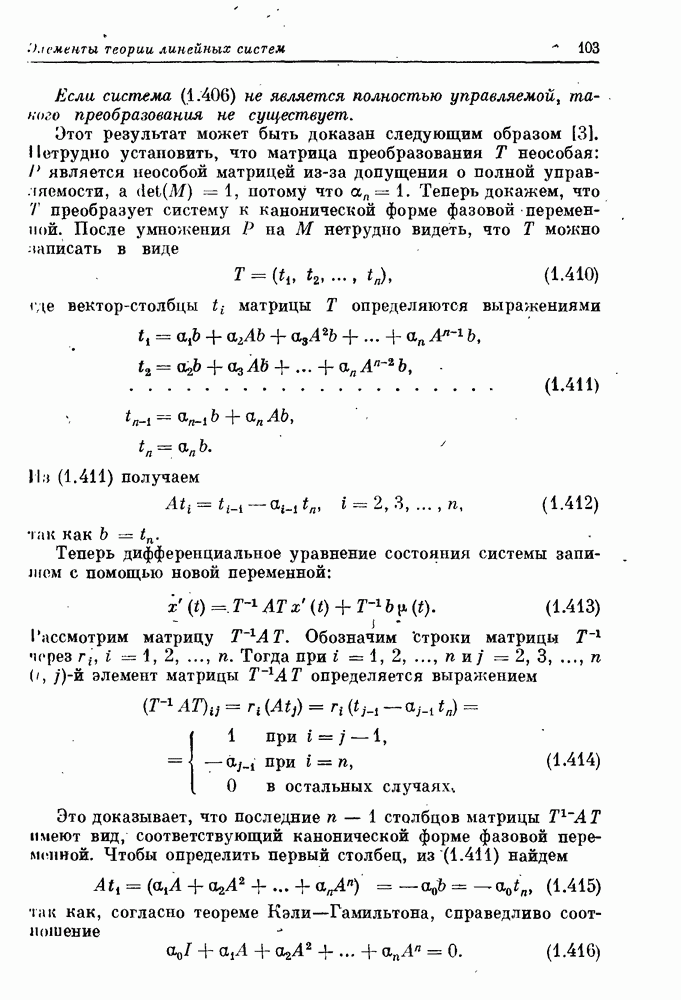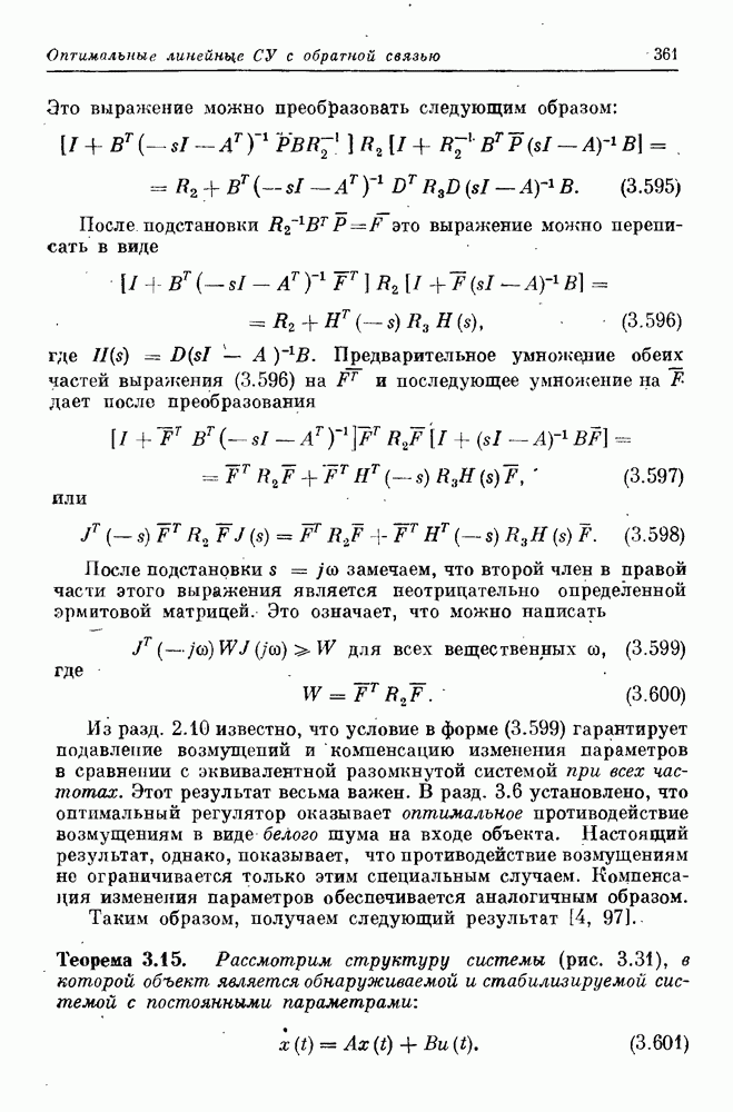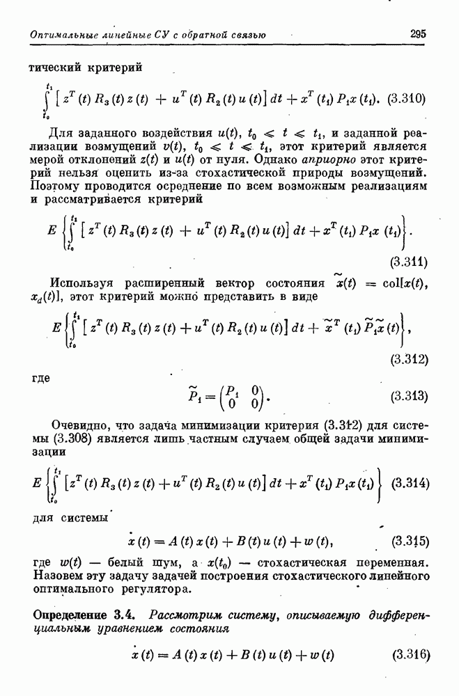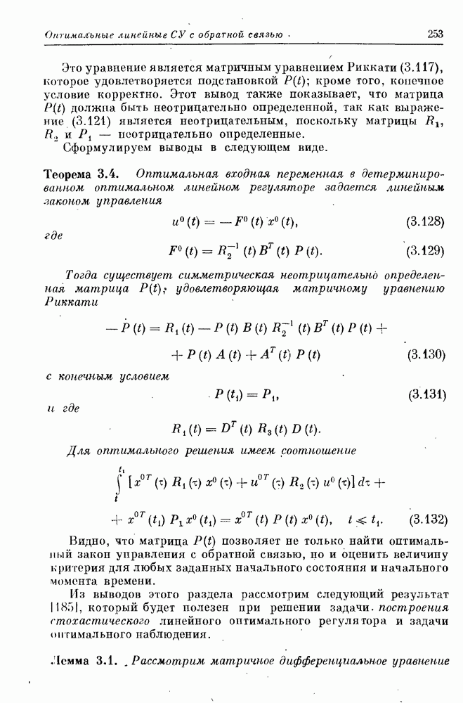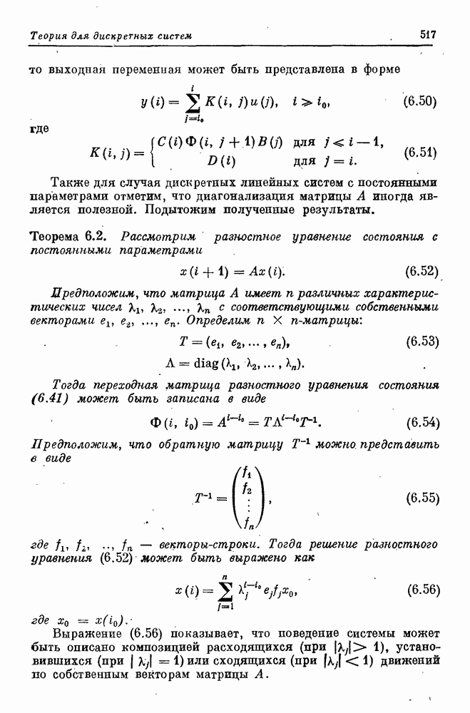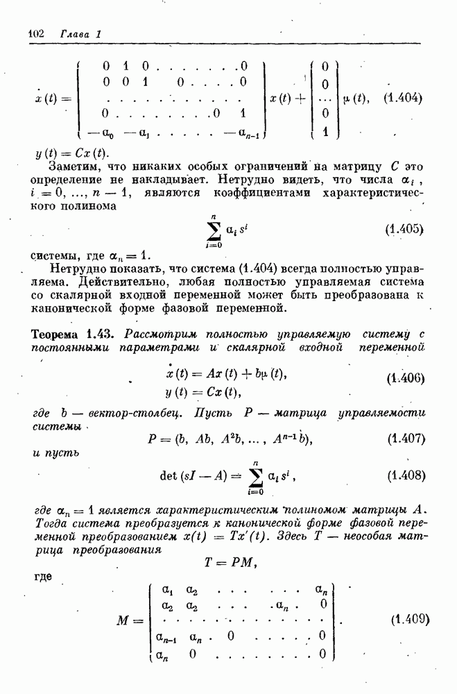по будущим значениям выходной переменной. В задачах управления и фильтрации, однако, имеются обычно только прошлые значения выходной переменной. Поэтому более естественно рассматривать восстанавливаемость, которая ставит задачу определения настоящего состояния по прошлым наблюдениям. Нетрудно обнаружить, что для систем с постоянными параметрами из полной посстанавливаемости следует полная наблюдаемость и наоборот.