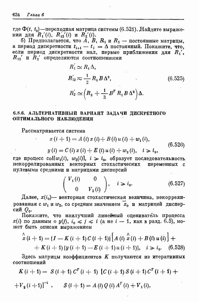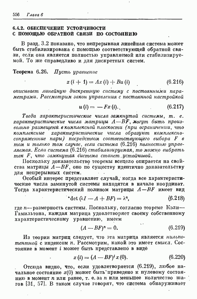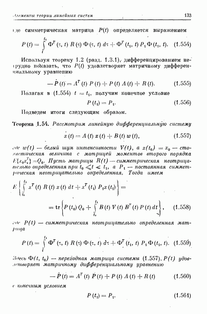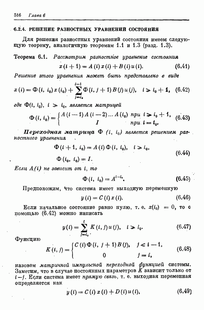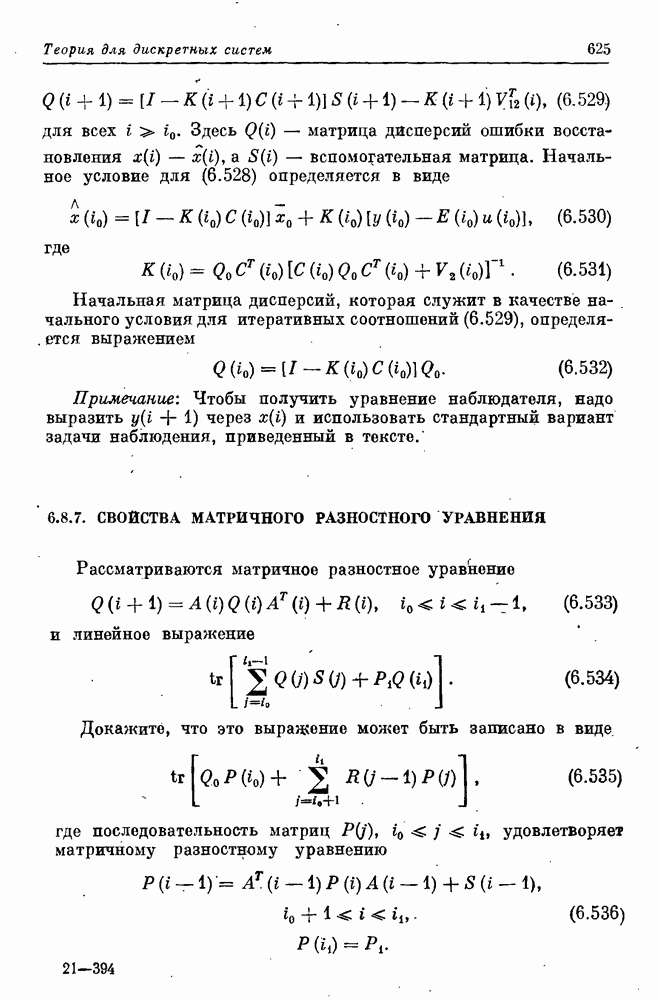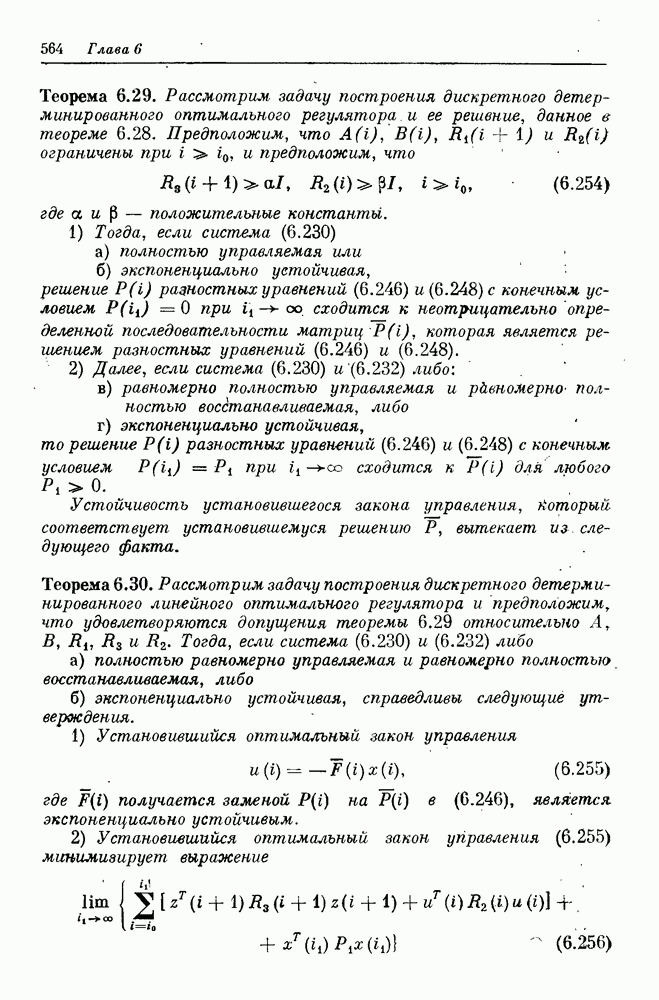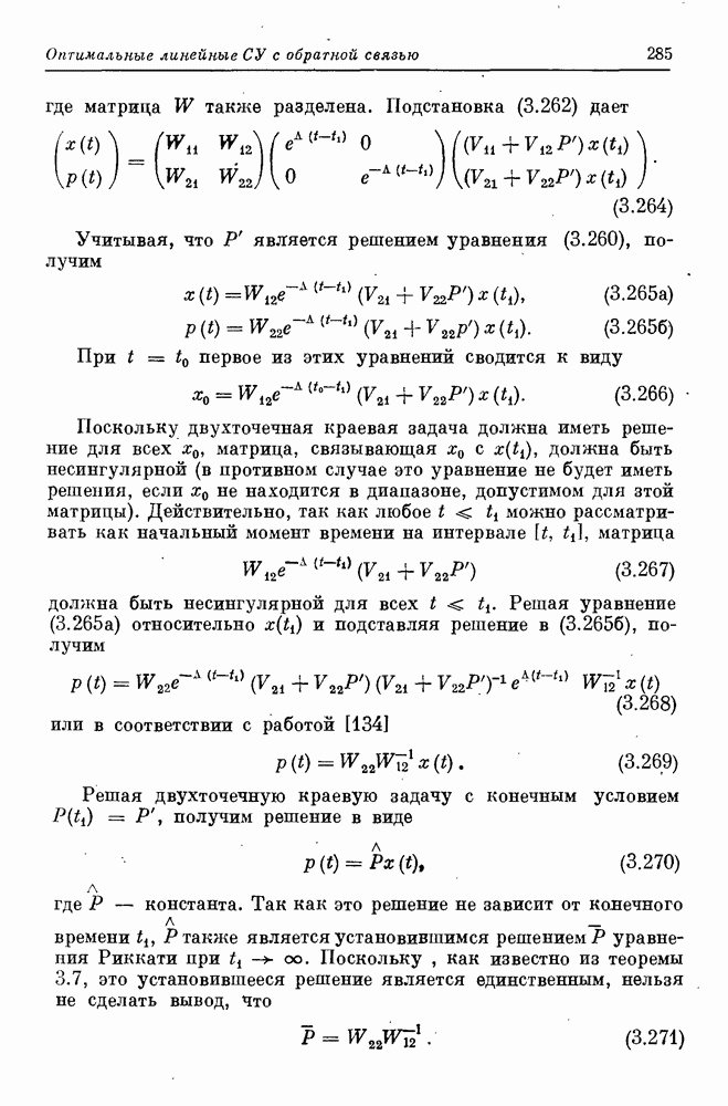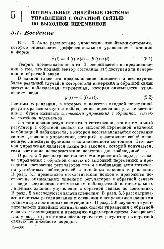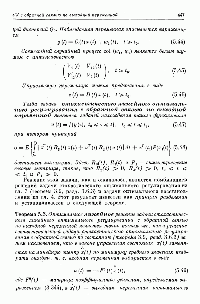 по будущим значениям выходной переменной. В задачах управления и фильтрации, однако, имеются обычно только прошлые значения выходной переменной. Поэтому более естественно рассматривать восстанавливаемость, которая ставит задачу определения настоящего состояния по прошлым наблюдениям. Нетрудно обнаружить, что для систем с постоянными параметрами из полной посстанавливаемости следует полная наблюдаемость и наоборот.