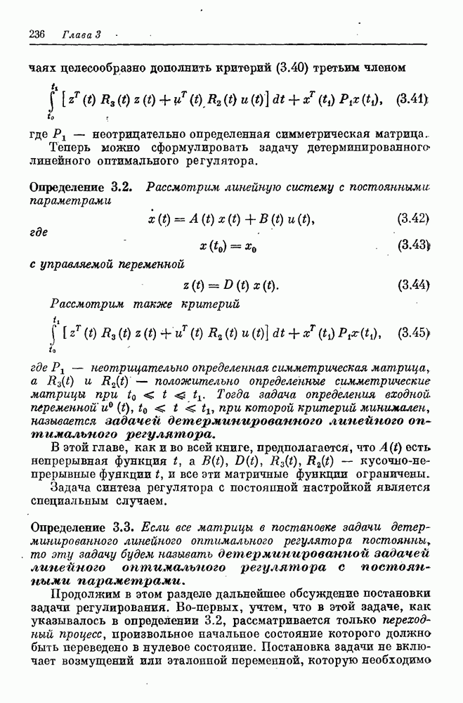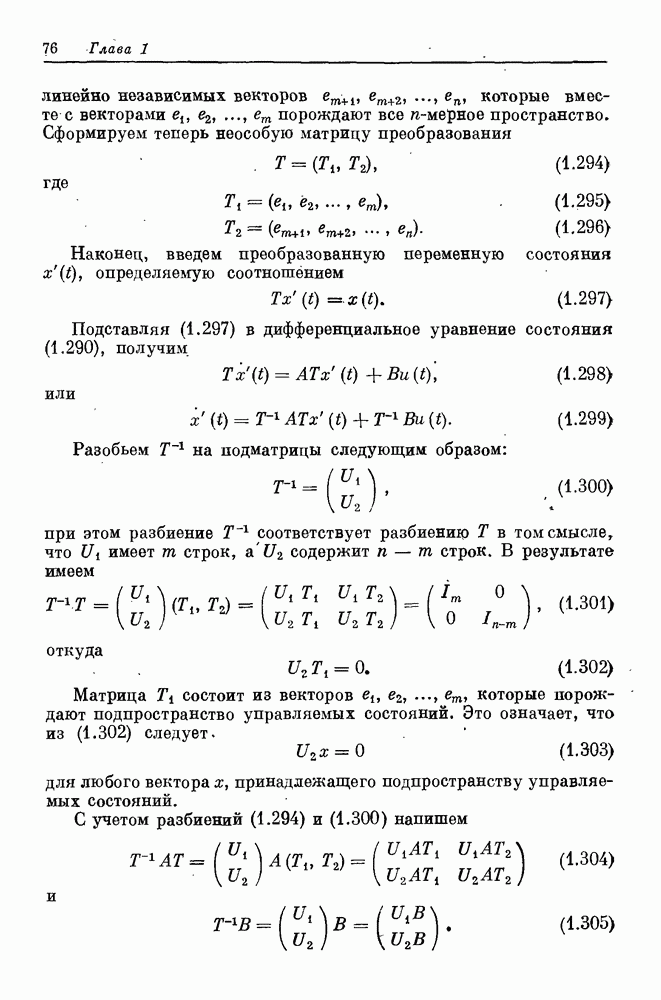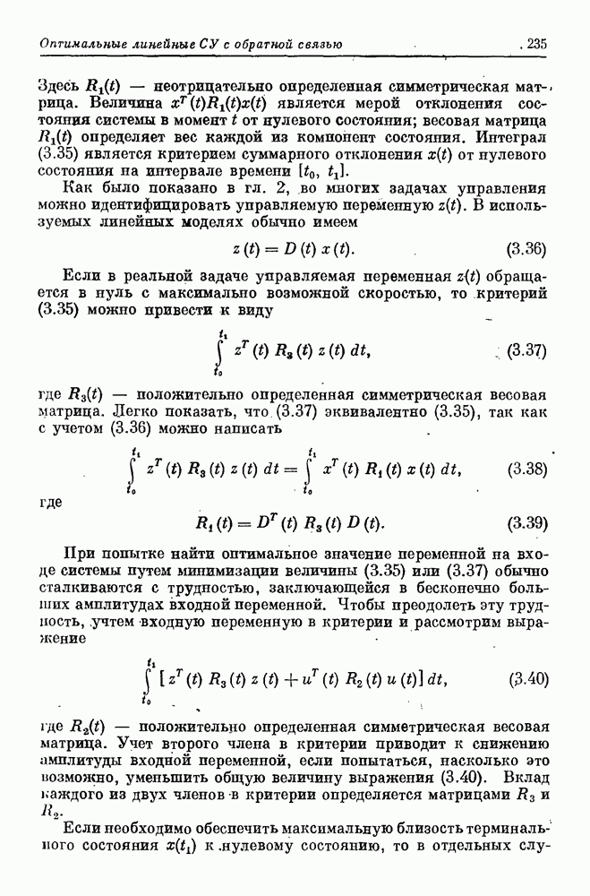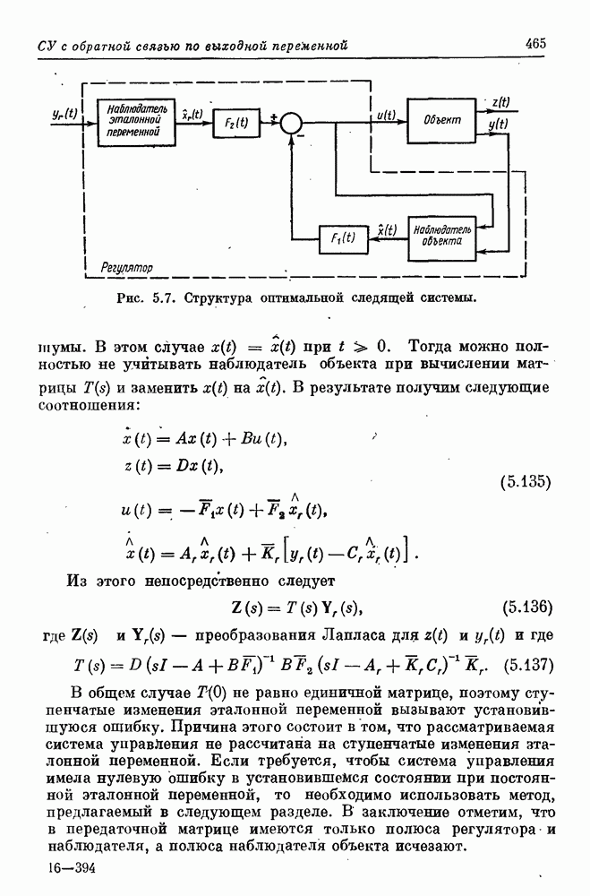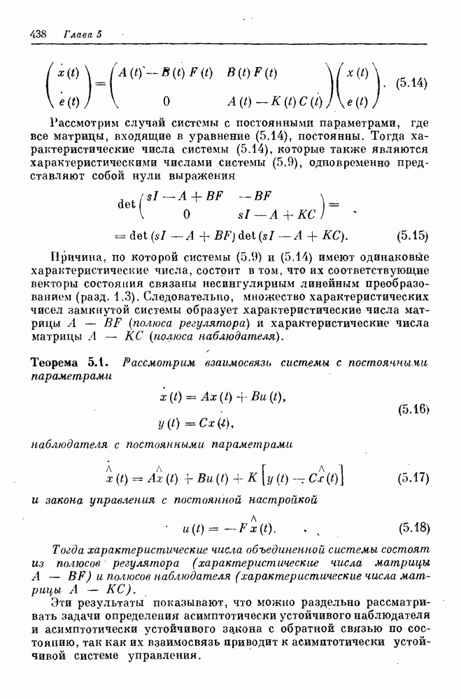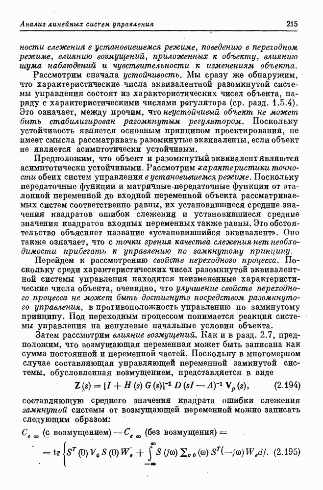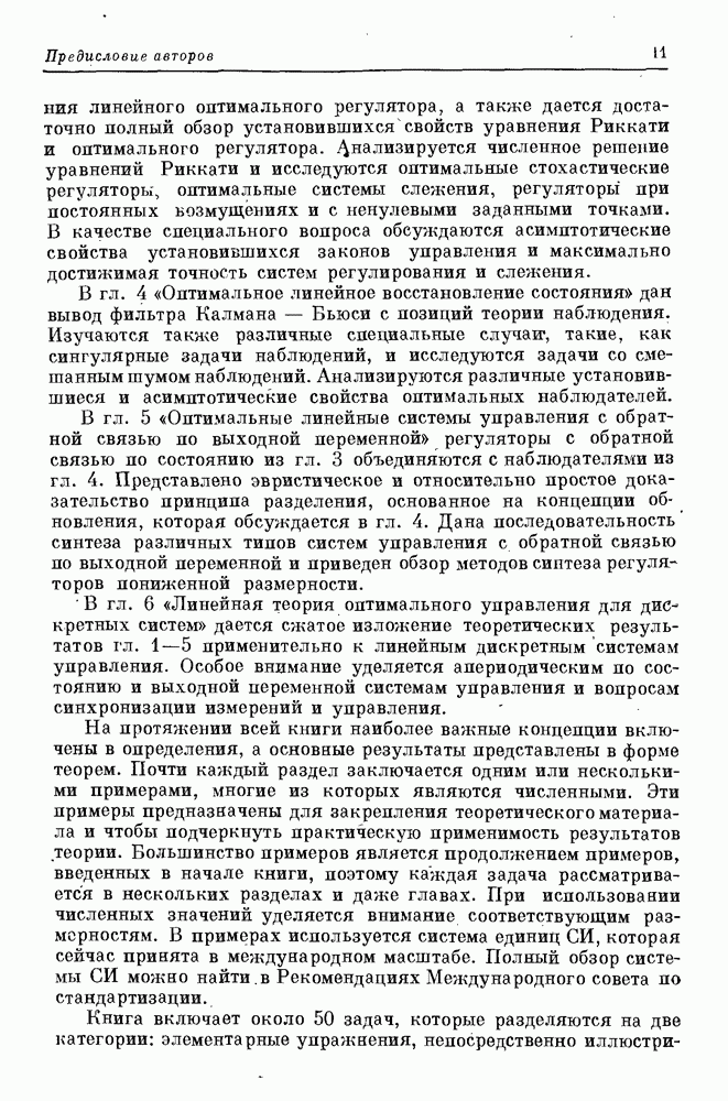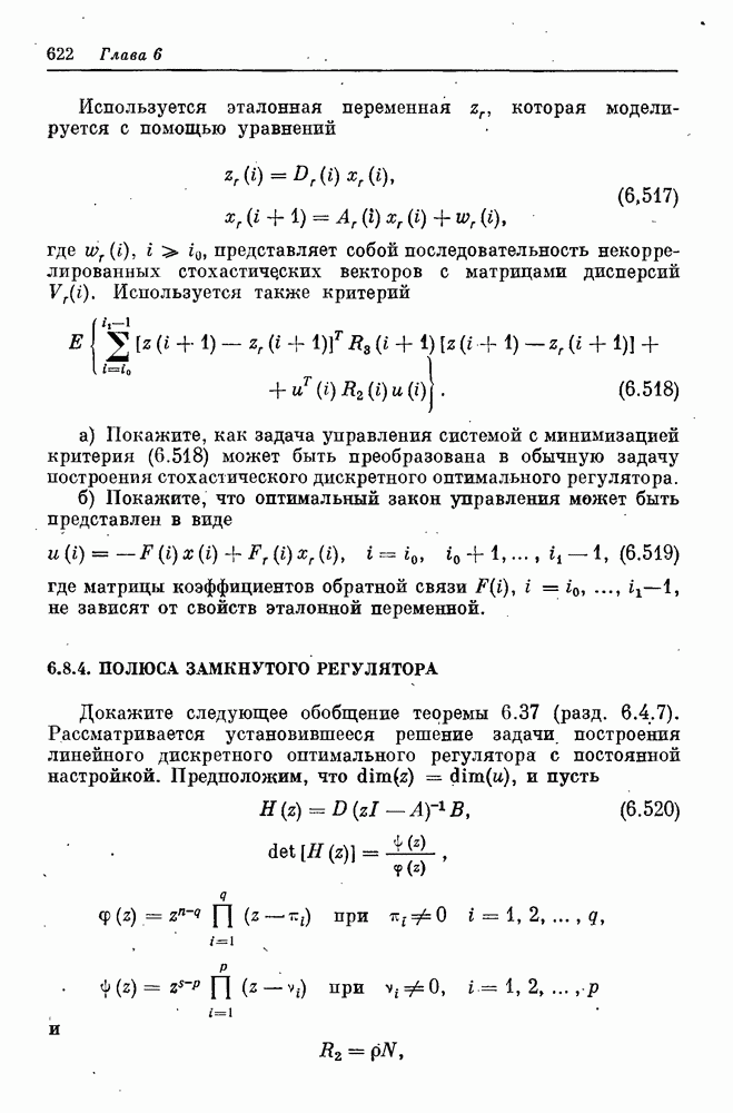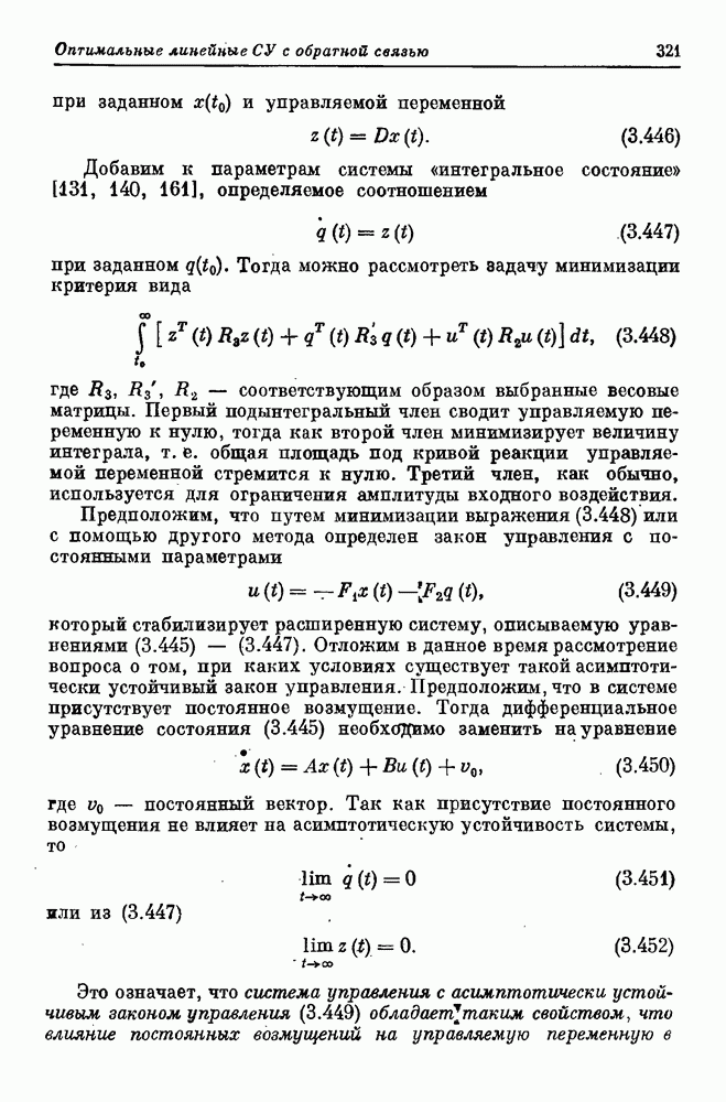 по будущим значениям выходной переменной. В задачах управления и фильтрации, однако, имеются обычно только прошлые значения выходной переменной. Поэтому более естественно рассматривать восстанавливаемость, которая ставит задачу определения настоящего состояния по прошлым наблюдениям. Нетрудно обнаружить, что для систем с постоянными параметрами из полной посстанавливаемости следует полная наблюдаемость и наоборот.