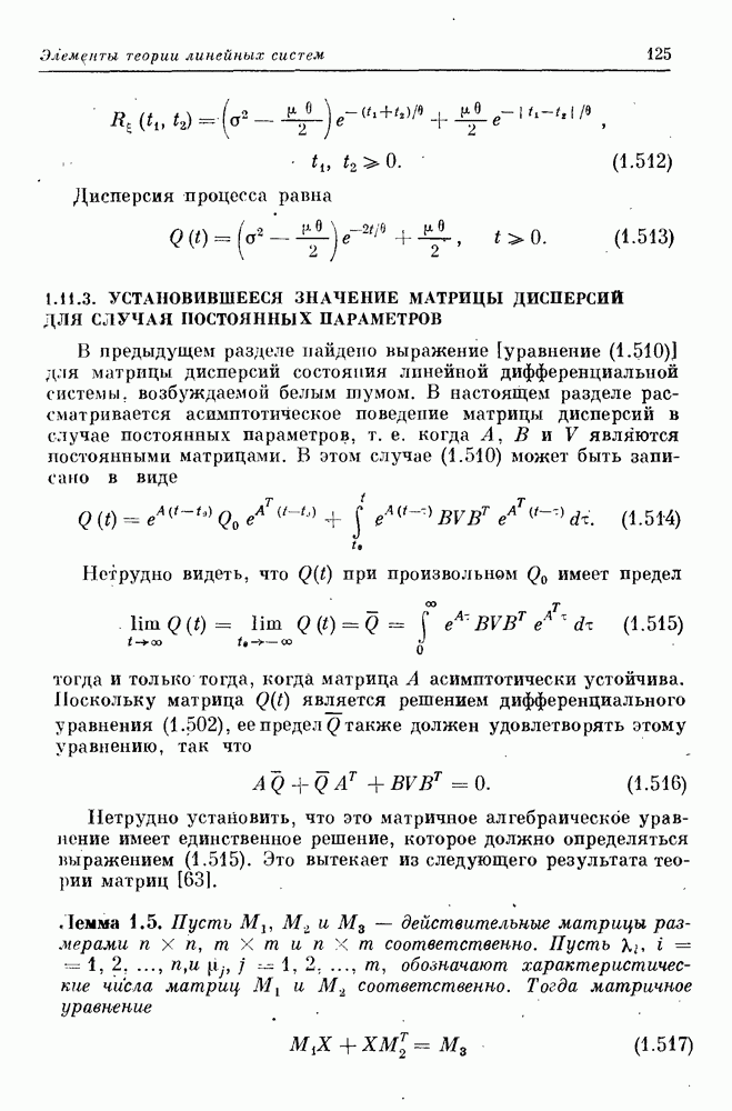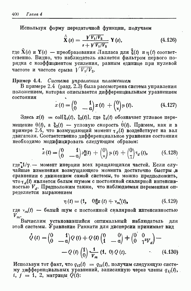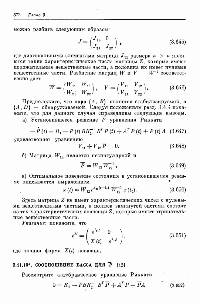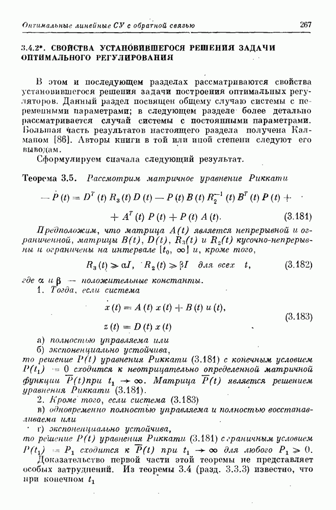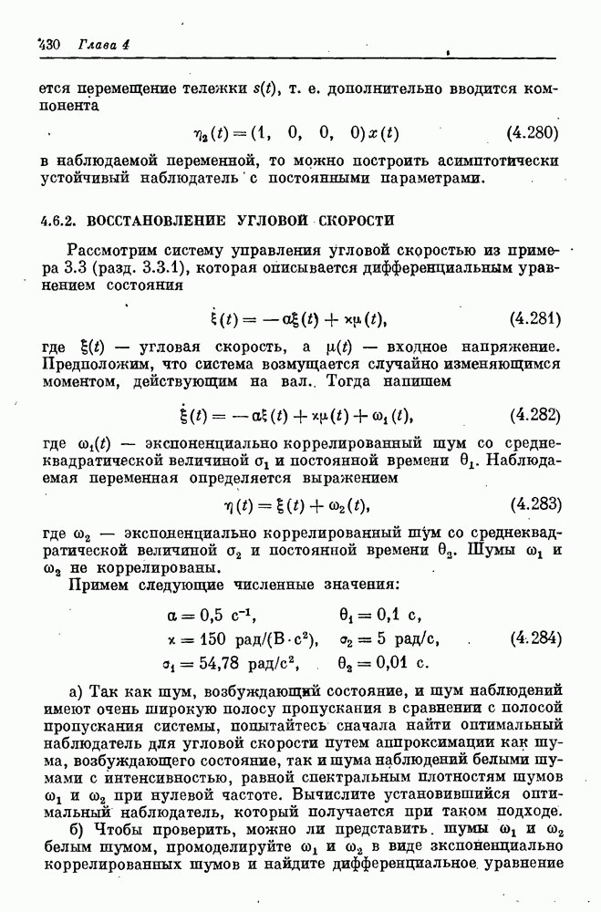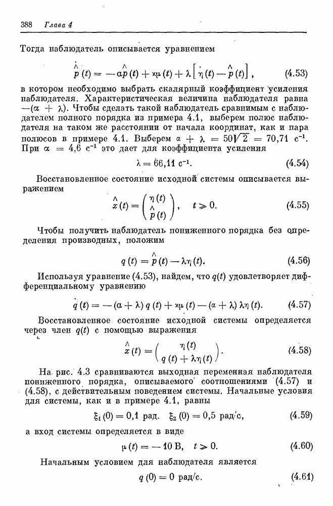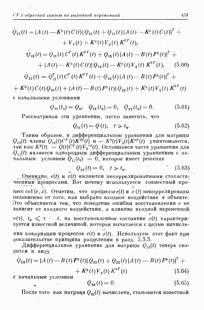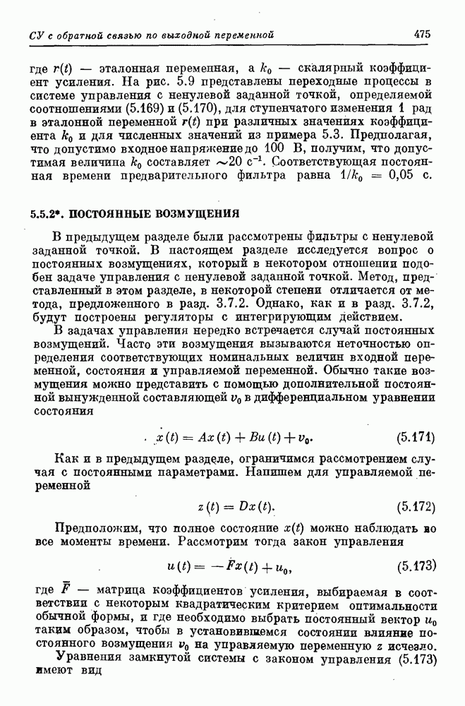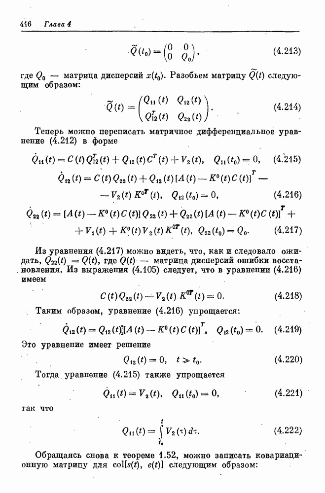 по будущим значениям выходной переменной. В задачах управления и фильтрации, однако, имеются обычно только прошлые значения выходной переменной. Поэтому более естественно рассматривать восстанавливаемость, которая ставит задачу определения настоящего состояния по прошлым наблюдениям. Нетрудно обнаружить, что для систем с постоянными параметрами из полной посстанавливаемости следует полная наблюдаемость и наоборот.