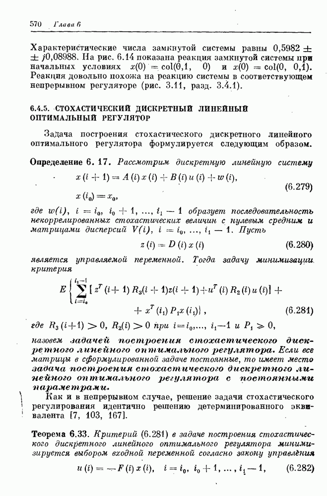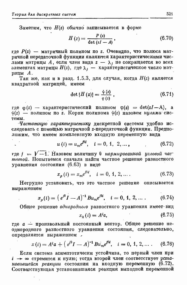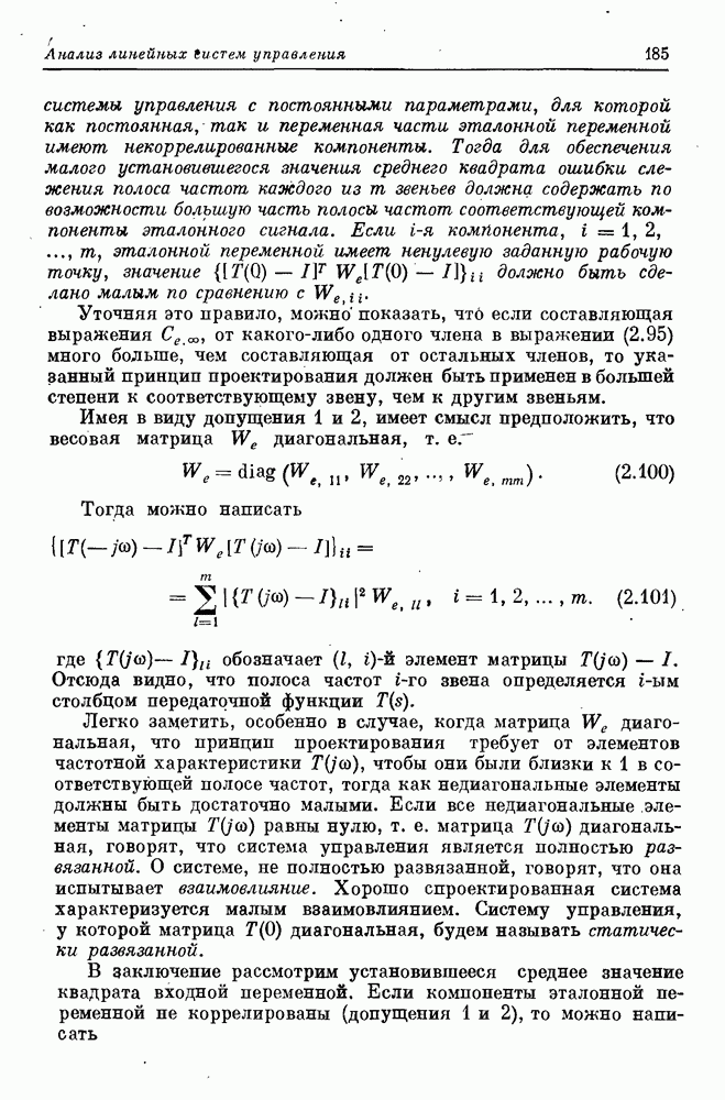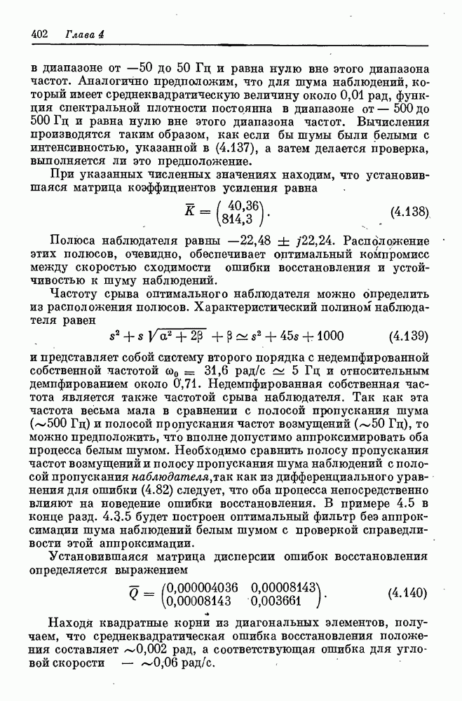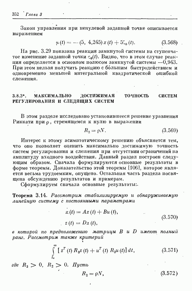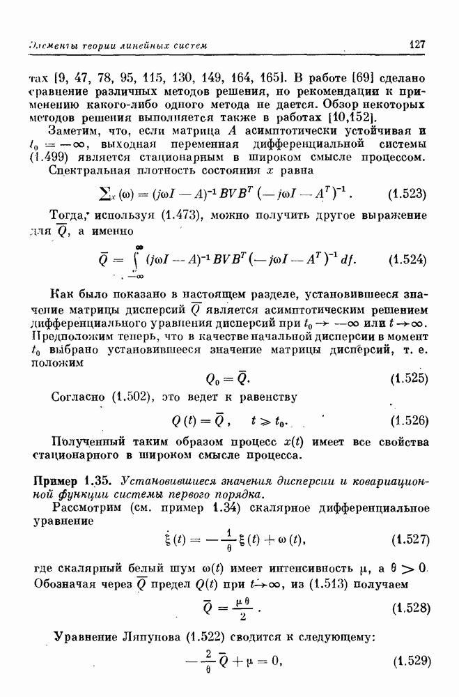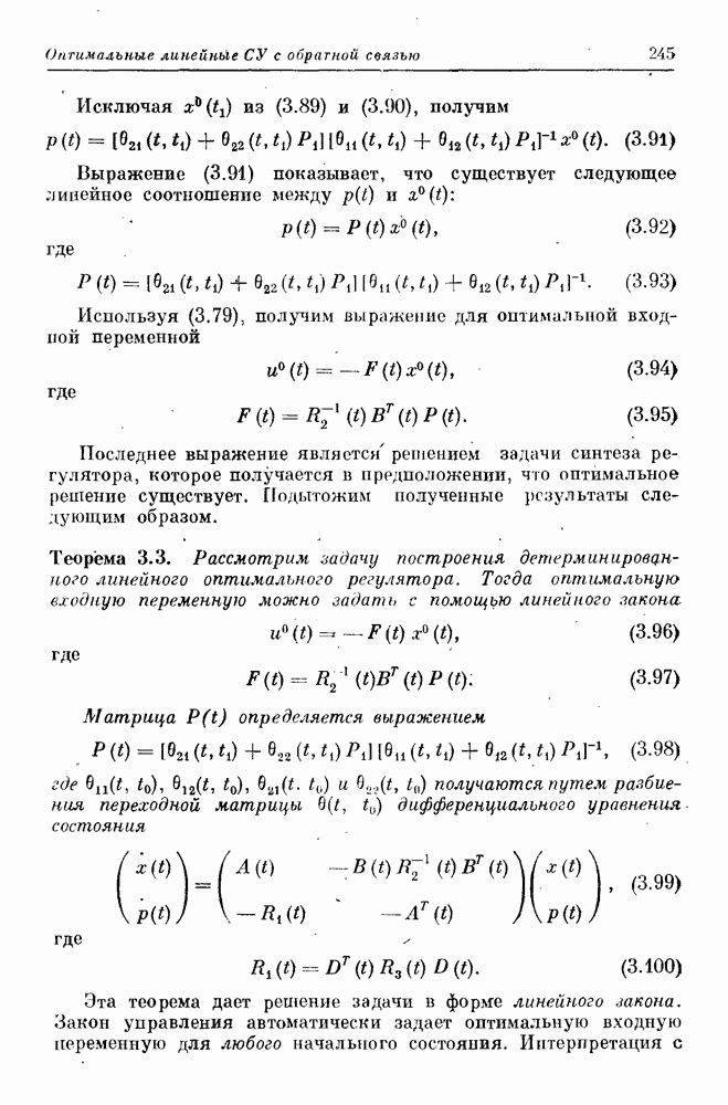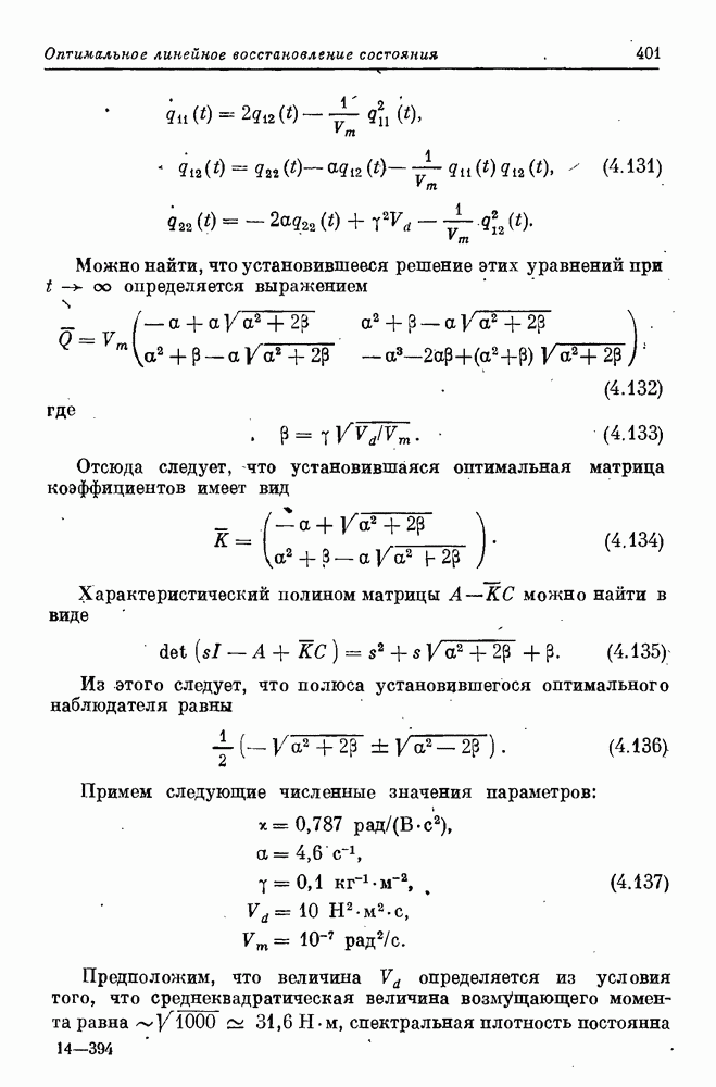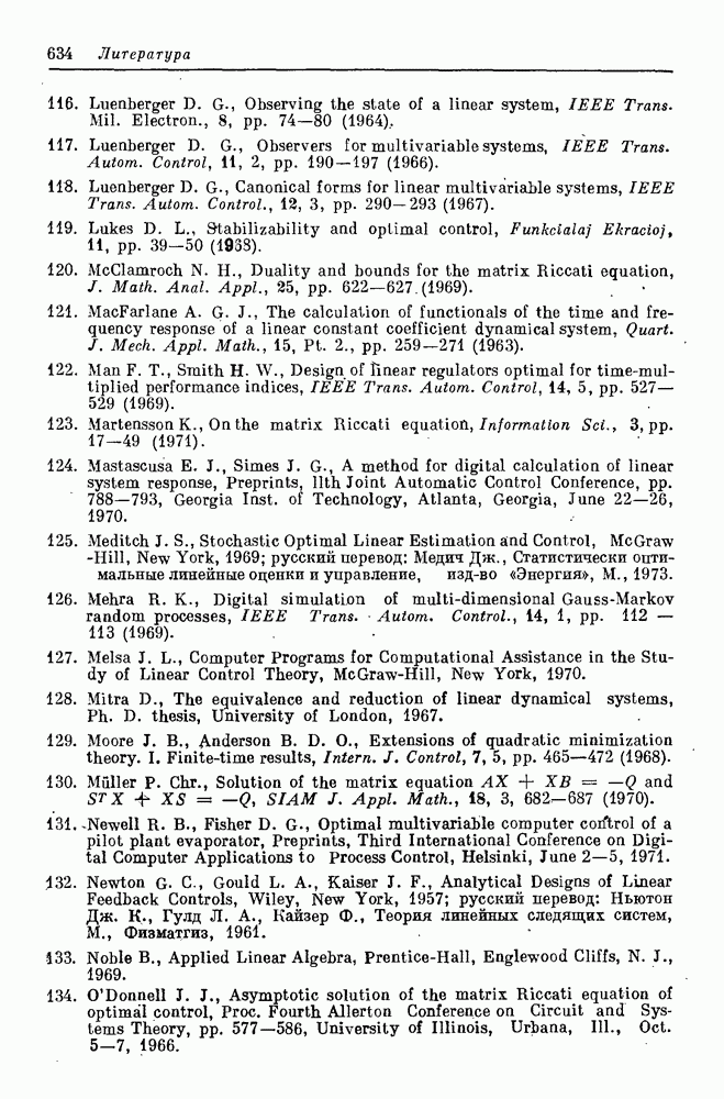 по будущим значениям выходной переменной. В задачах управления и фильтрации, однако, имеются обычно только прошлые значения выходной переменной. Поэтому более естественно рассматривать восстанавливаемость, которая ставит задачу определения настоящего состояния по прошлым наблюдениям. Нетрудно обнаружить, что для систем с постоянными параметрами из полной посстанавливаемости следует полная наблюдаемость и наоборот.