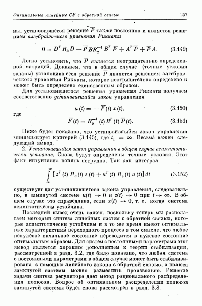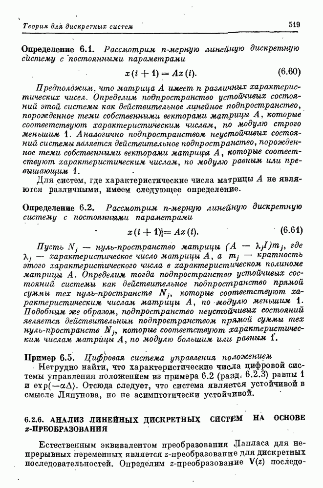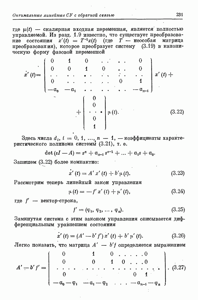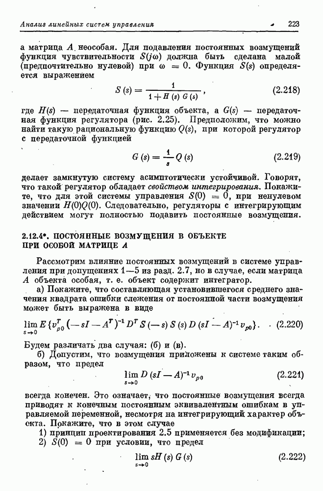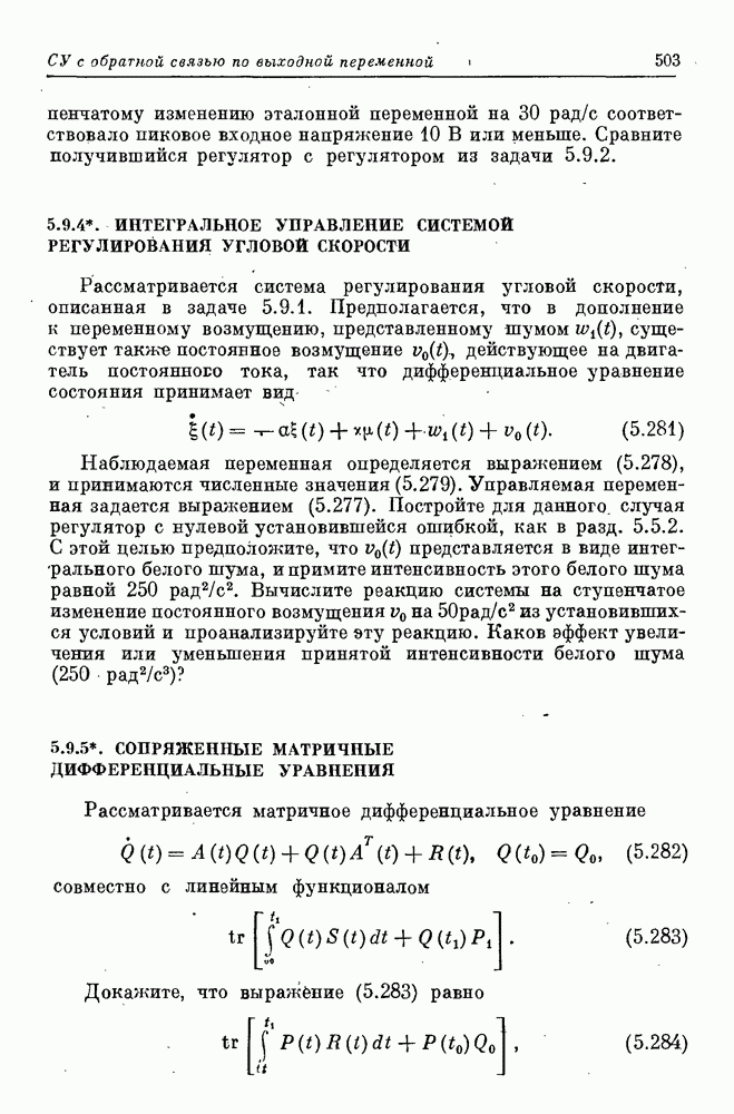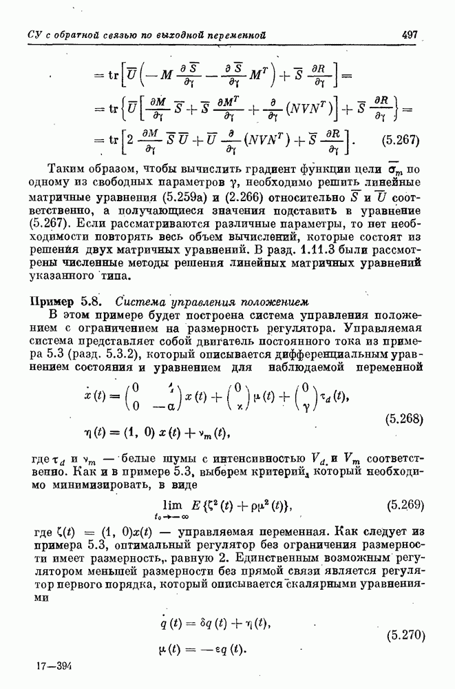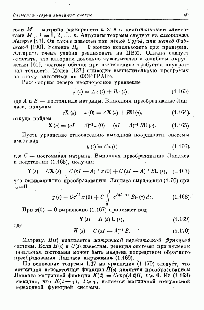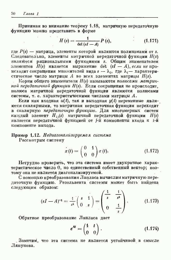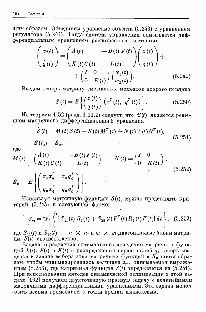 по будущим значениям выходной переменной. В задачах управления и фильтрации, однако, имеются обычно только прошлые значения выходной переменной. Поэтому более естественно рассматривать восстанавливаемость, которая ставит задачу определения настоящего состояния по прошлым наблюдениям. Нетрудно обнаружить, что для систем с постоянными параметрами из полной посстанавливаемости следует полная наблюдаемость и наоборот.