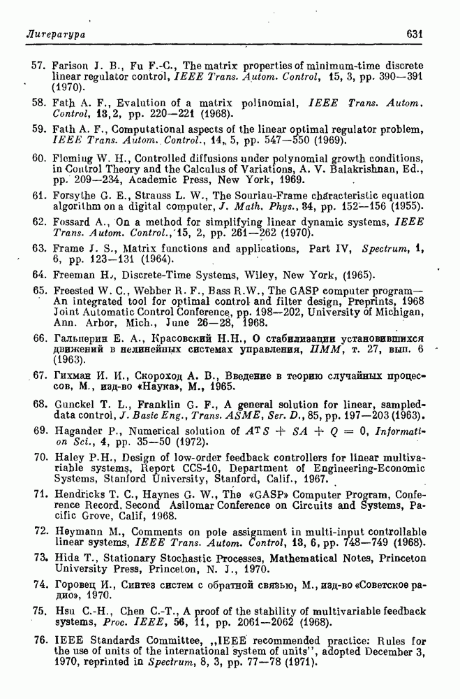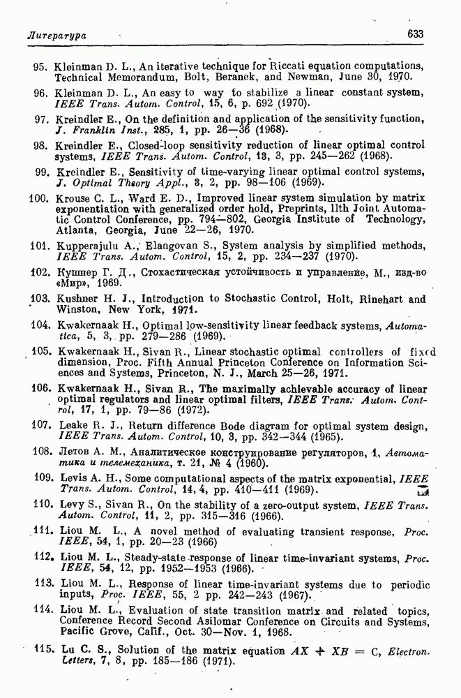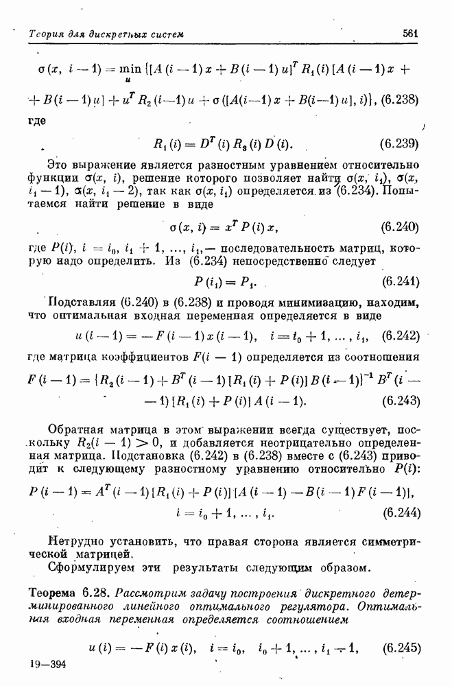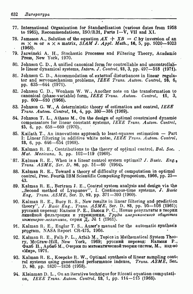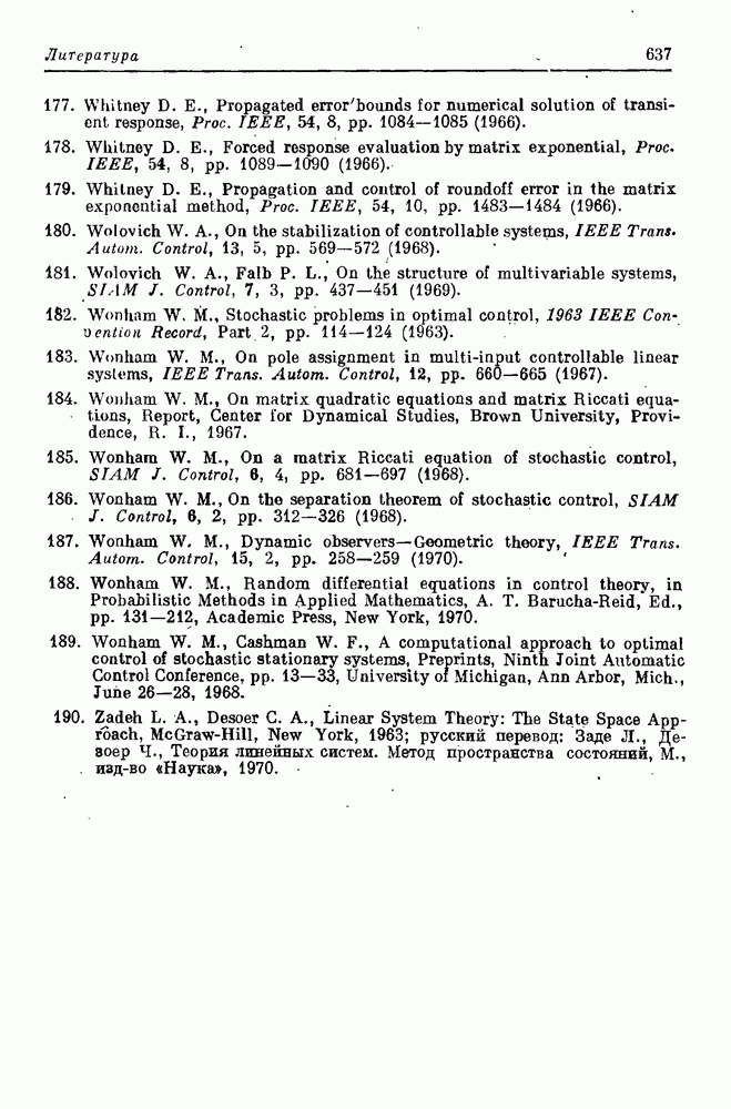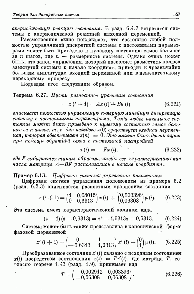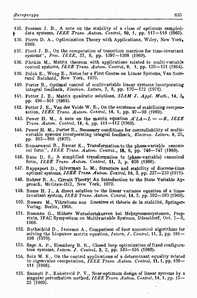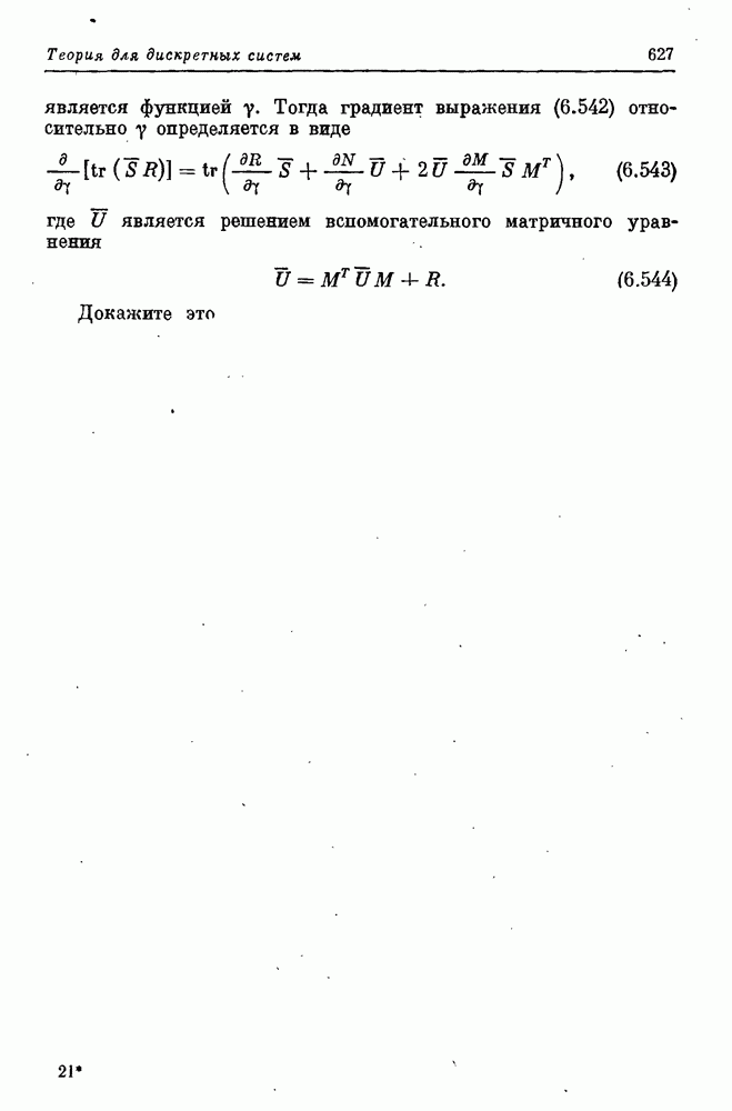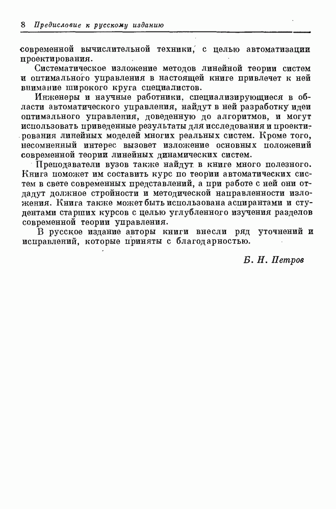 по будущим значениям выходной переменной. В задачах управления и фильтрации, однако, имеются обычно только прошлые значения выходной переменной. Поэтому более естественно рассматривать восстанавливаемость, которая ставит задачу определения настоящего состояния по прошлым наблюдениям. Нетрудно обнаружить, что для систем с постоянными параметрами из полной посстанавливаемости следует полная наблюдаемость и наоборот.