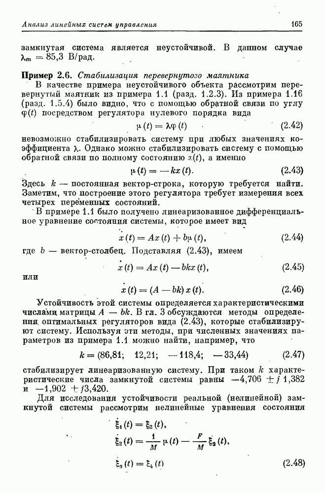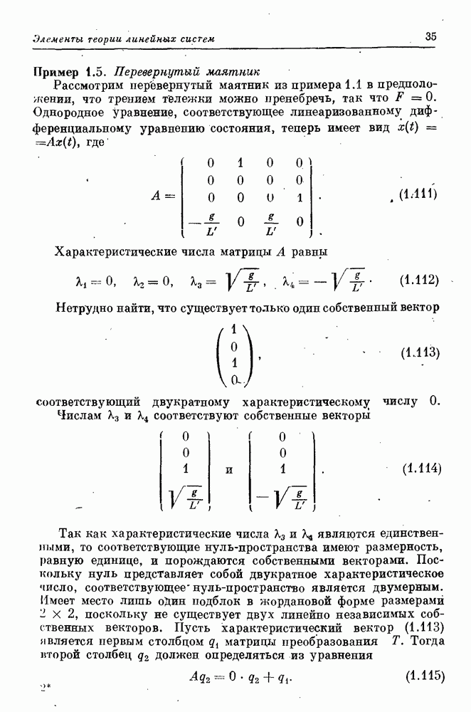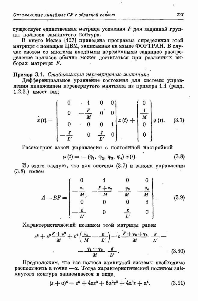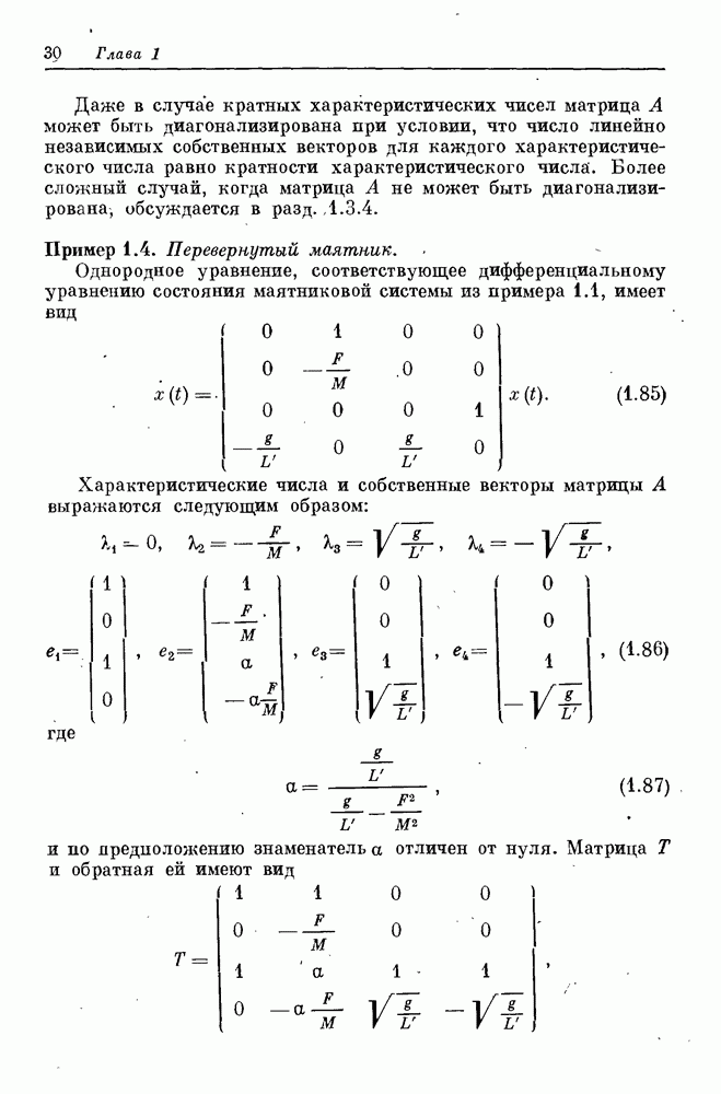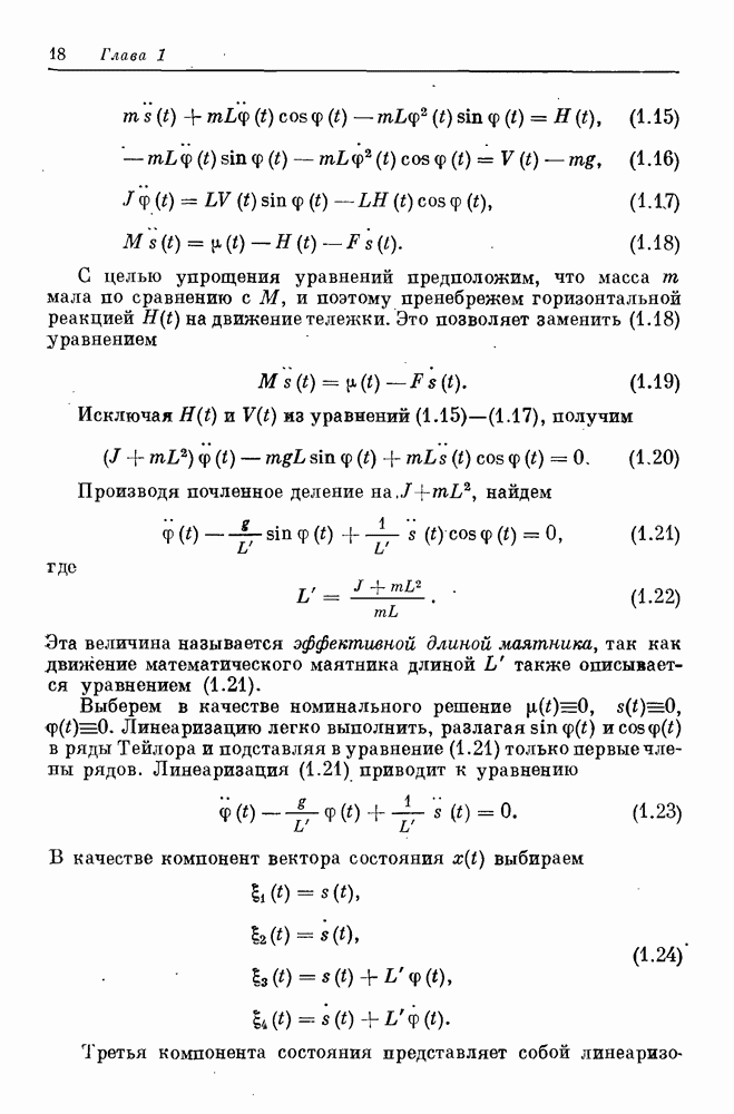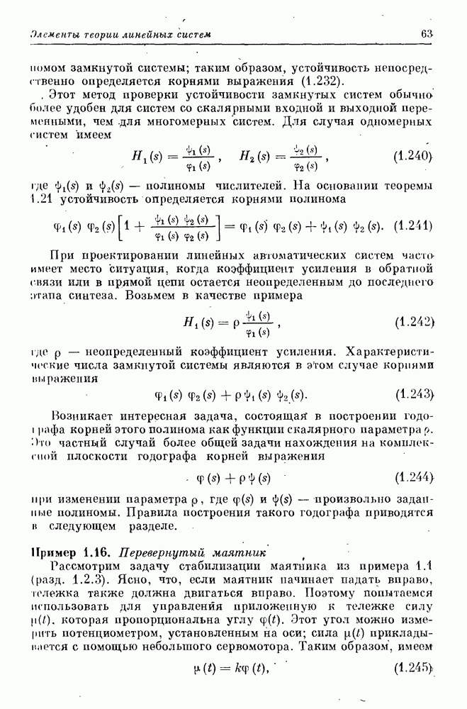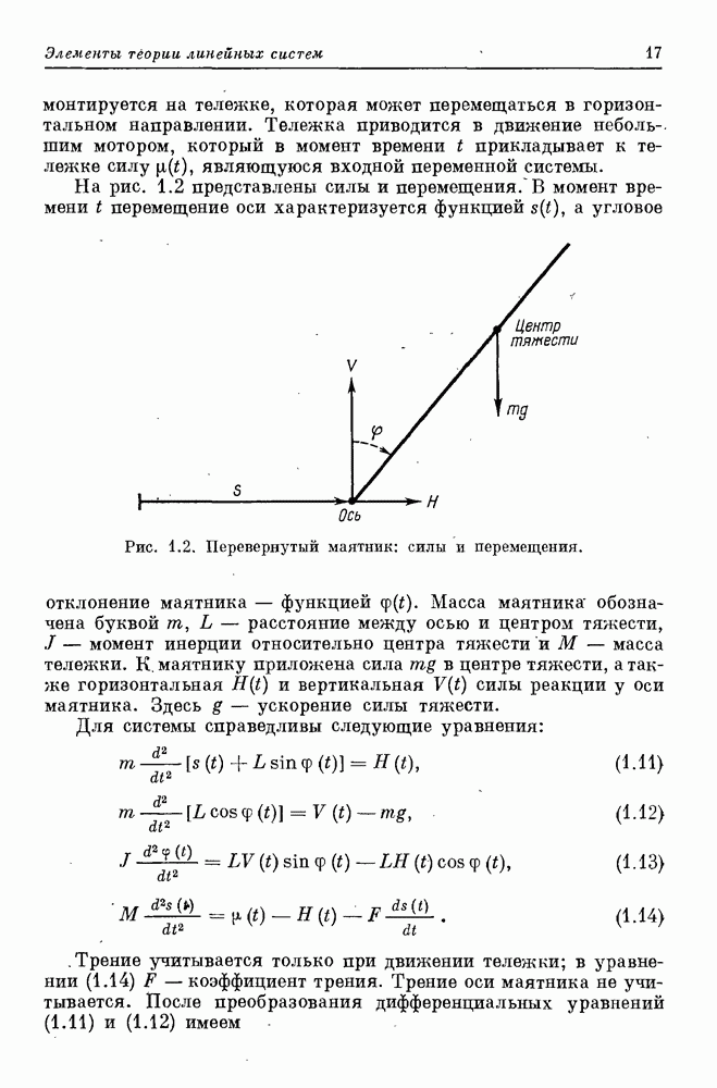 Рассмотрим перевернутый маятник из примера 1.1 (разд. 1.2.3) и примем в качестве выходной переменной угол