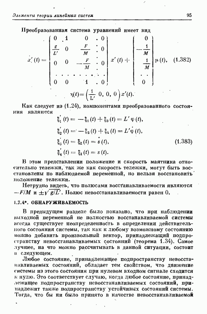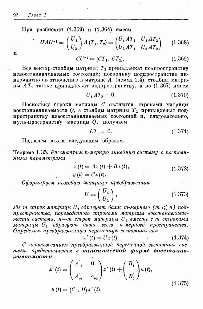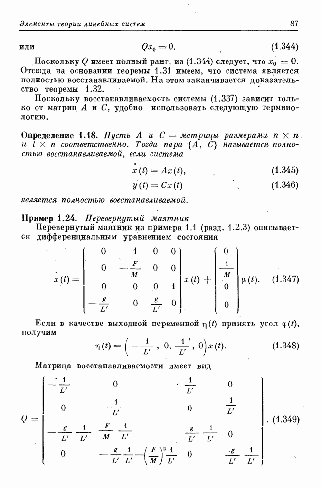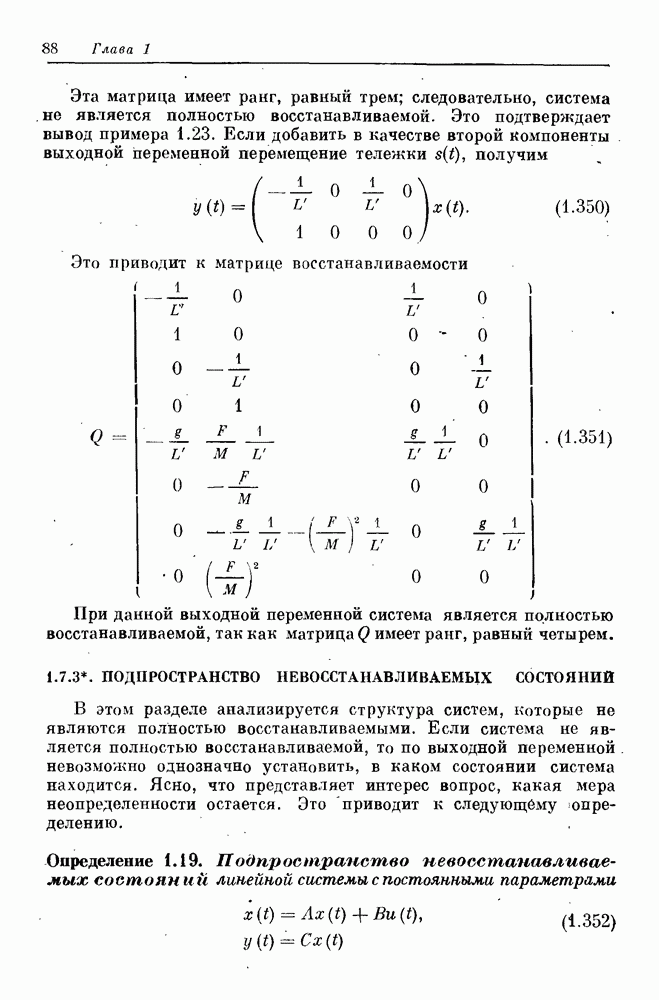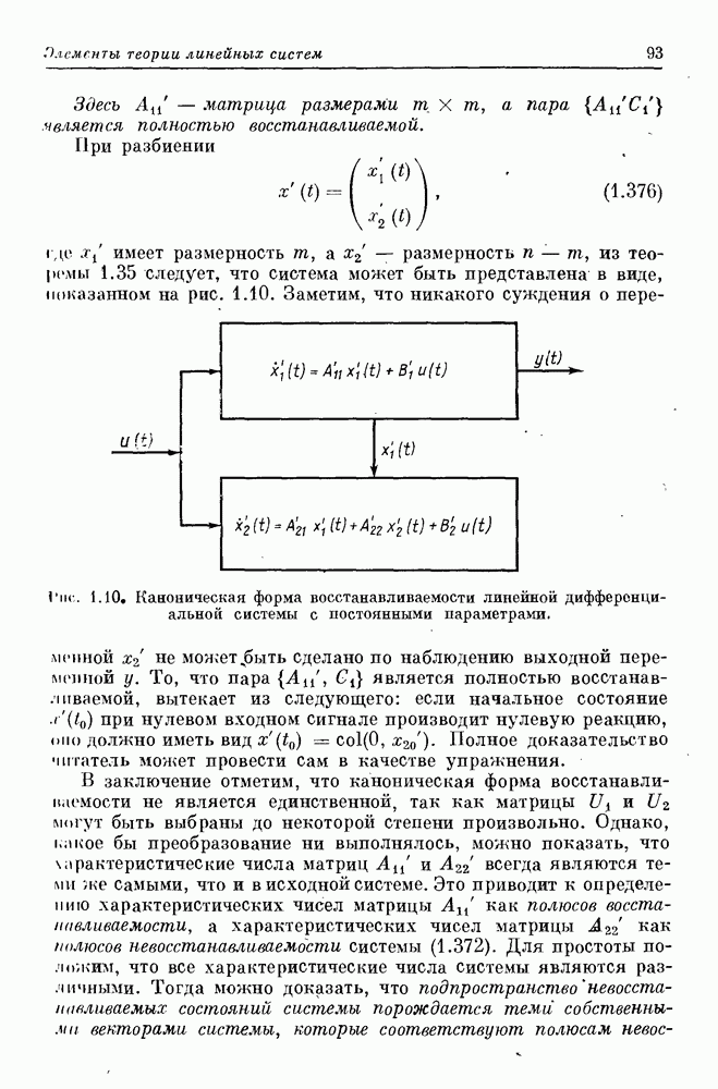 Определение восстанавливаемости введено Калманом [92]. Следует отметить, что восстанавливаемость дополняет понятие наблюдаемости. Говорят, что система вида (1.328) полностью