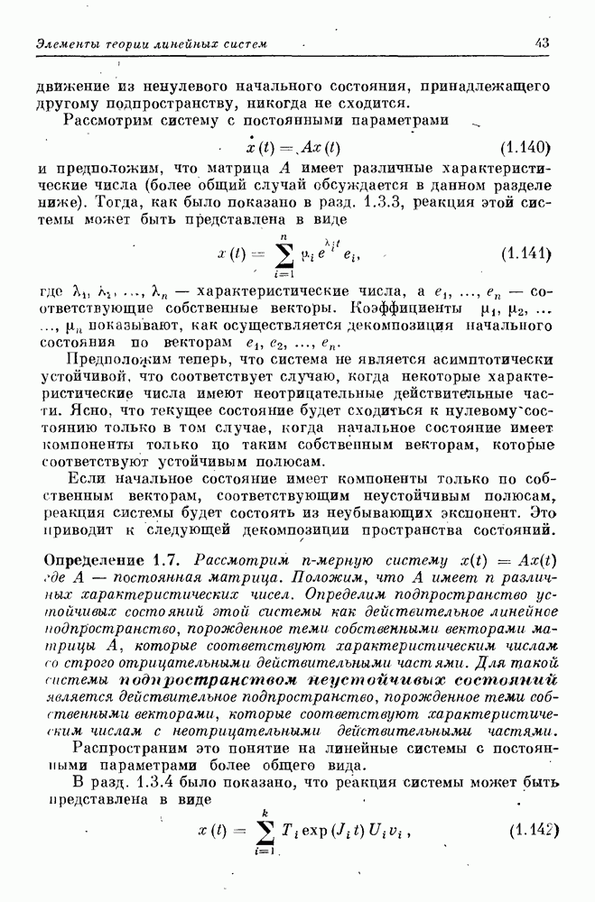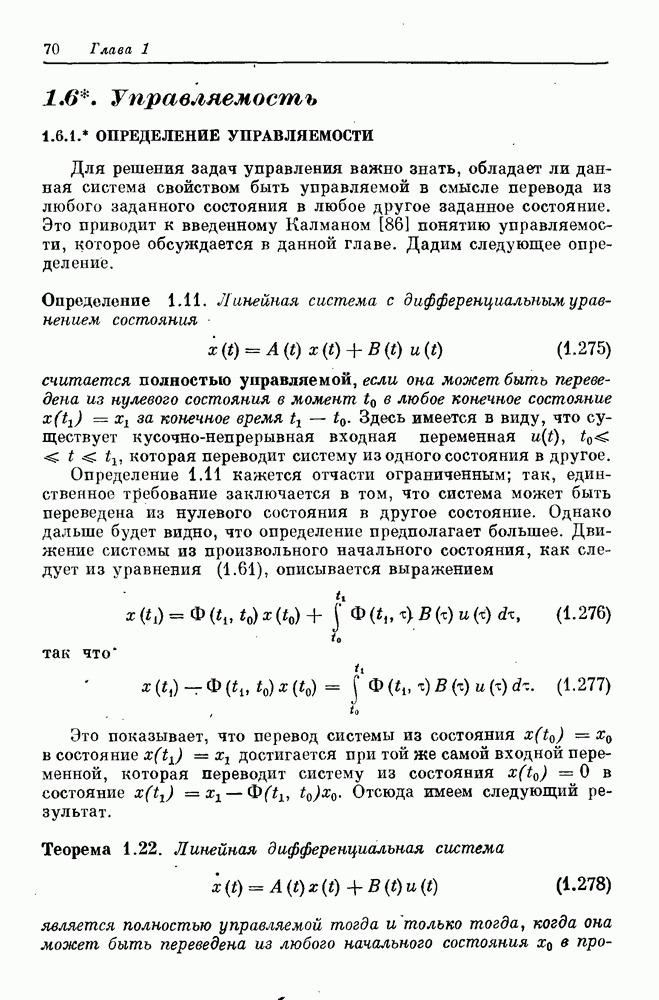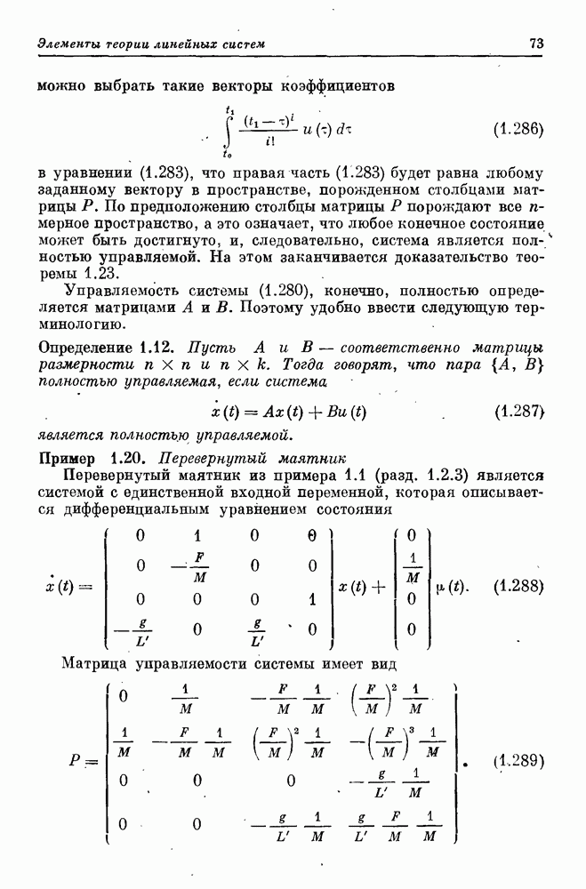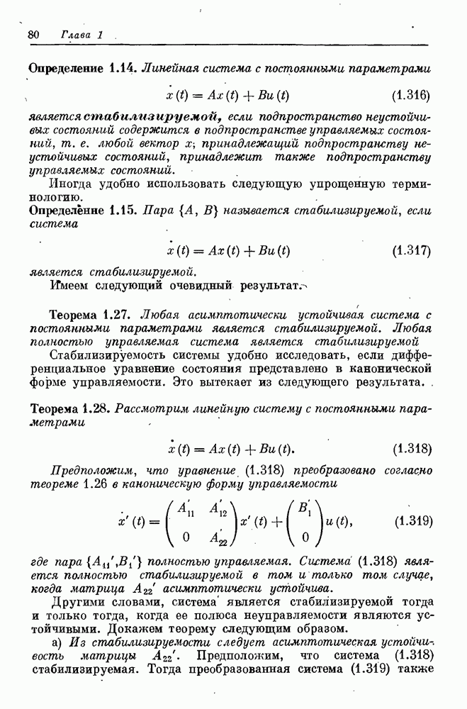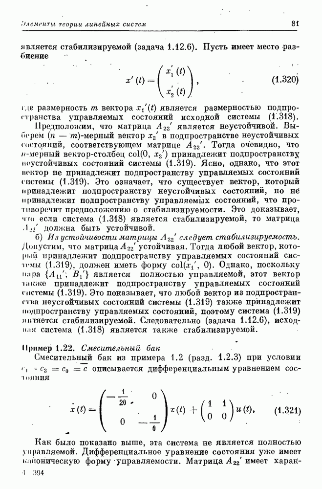 Определение восстанавливаемости введено Калманом [92]. Следует отметить, что восстанавливаемость дополняет понятие наблюдаемости. Говорят, что система вида (1.328) полностью