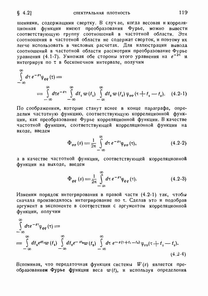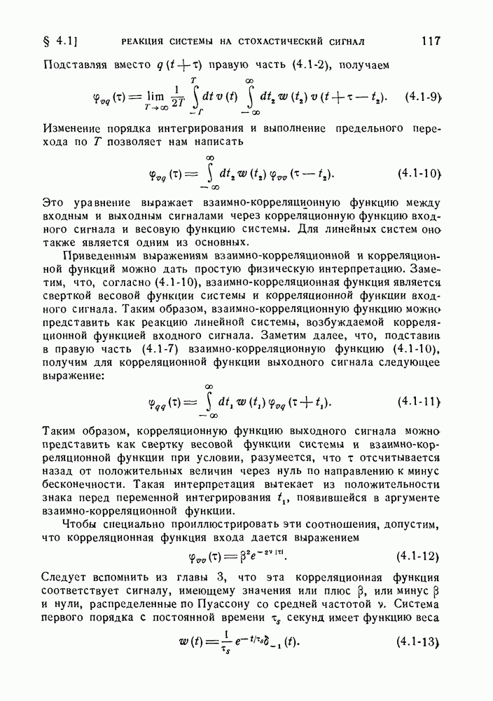 поскольку мы можем переменить порядок интегрирования и индексы переменных интегрирования в левой части. В результате этого разница между обеими частями будет заключаться только в знаках переменных корреляционной функции. Полагая