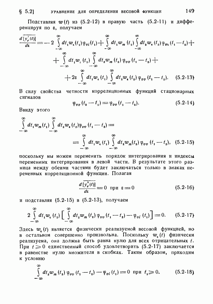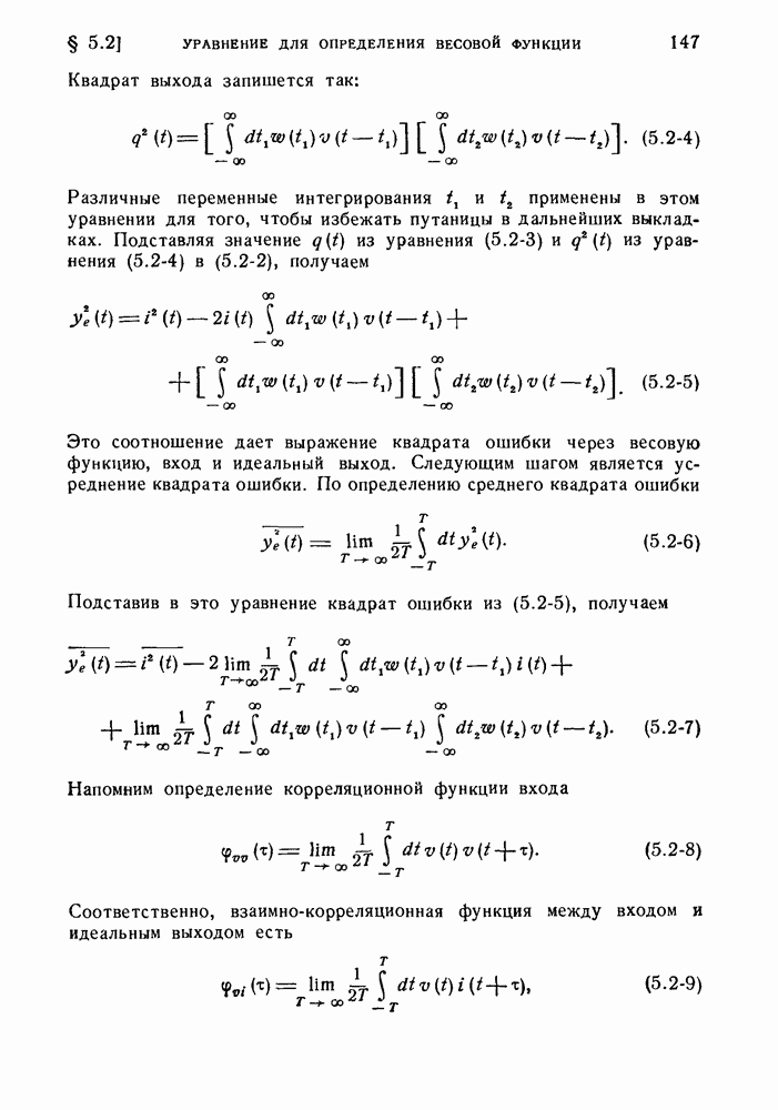 § 5.2. Интегральное уравнение для определения весовой функцииВ этом параграфе дается определение Проследим шаг за шагом указанный выше путь. В соответствии с рис. 5.1-1 ошибка определяется соотношением
